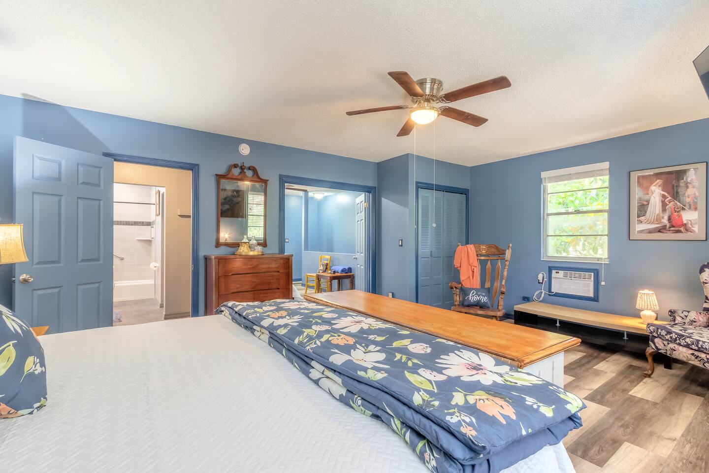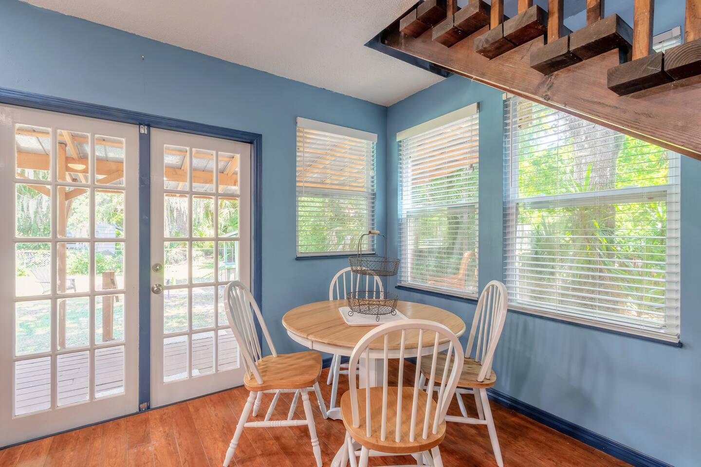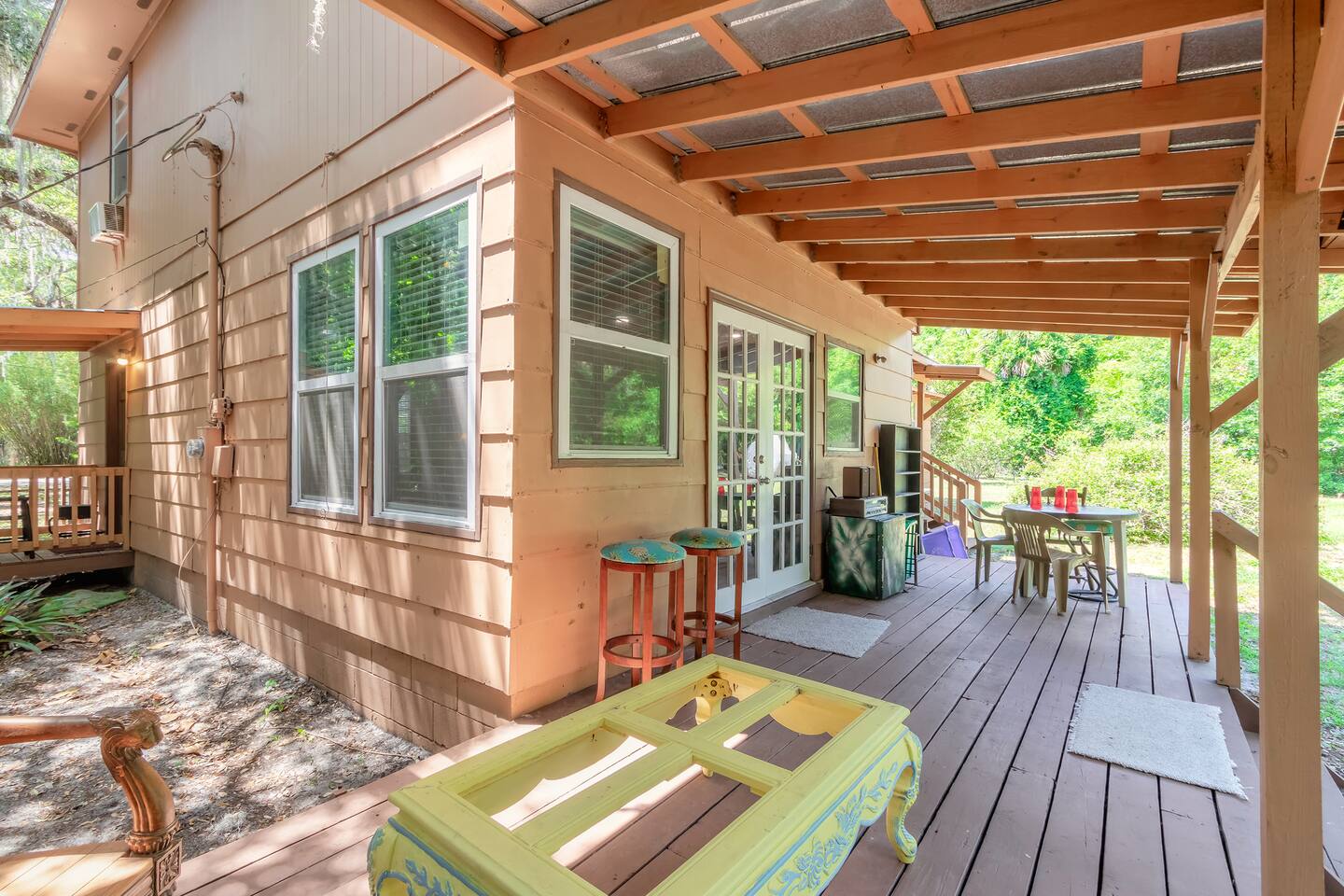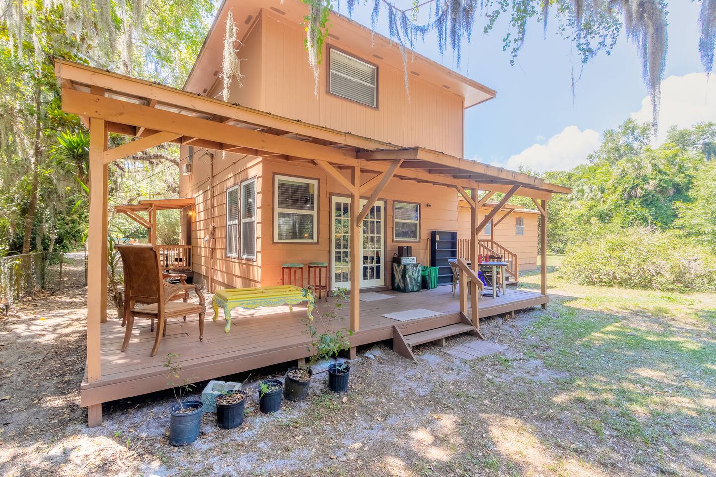Forget your worries in this spacious and serene space only 3.9 Miles to beach, 1.2 Miles to AdventHealth and close to everything else in New Smyrna Beach and Edgewater. Plus, you will have access to a big pool and hot tub directly across the small road! The home sleeps five with a king bed in the main bedroom, a day-bed in the landing and a queen sleeper sofa in the living room. The ensuite bathroom and laundry room are located upstairs and are accessed thru the main bedroom.