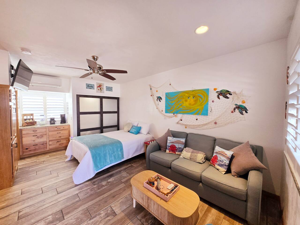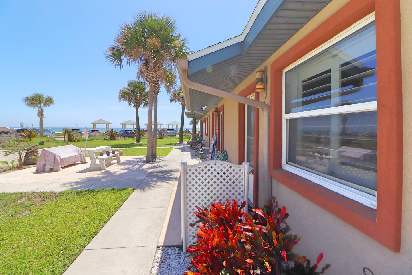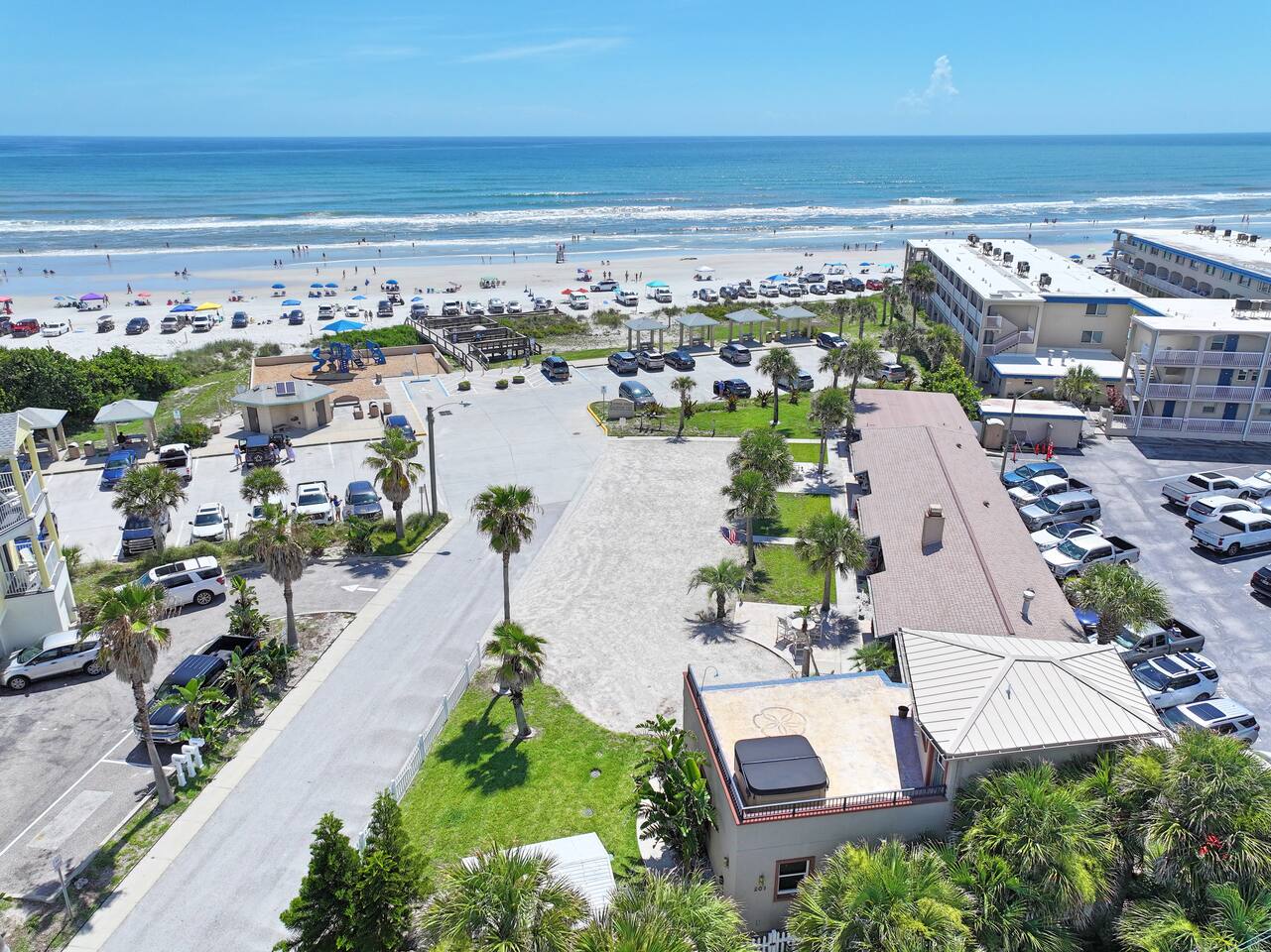 Enjoy the perfect blend of relaxation and seaside adventure in this comfortable and thoughtfully designed studio. Featuring a queen-sized bed and a queen sleeper sofa, it comfortably accommodates up to 4 guests. The clean, modern bathroom and fully equipped kitchen (minus dishwasher) make it easy to settle in and feel at home. Stay connected with high-speed WiFi and unwind with your favorite shows on the flat-screen TV. Step outside or enjoy the views from the studio to take in the turquoise waters of the Atlantic. Amenities You’ll Love: Free, coveted parking on premises Air conditioning & heating for year-round comfort Washer and dryer in-unit for convenience Located just steps from the beach and a short stroll to shops, restaurants, and local nightlife, this studio offers the ideal New Smyrna Beach getaway. Book your stay today and make the most of sun, sand, and coastal charm!