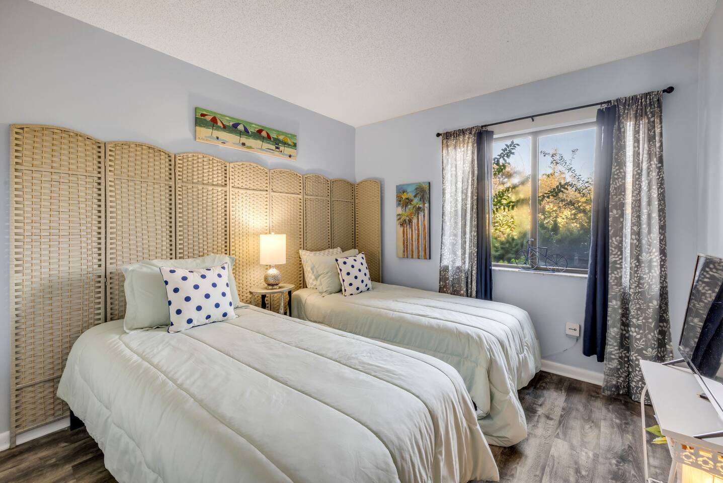 Stay steps from the beach in this stylish 2BR/2BA condo with a private balcony and bright open living space. Enjoy two community pools (one heated), tennis & pickleball courts, and easy beach access right across the street. Fully stocked kitchen, Smart TVs, Wi-Fi, washer/dryer, and free parking. Just minutes to Flagler Ave’s restaurants, shops, and nightlife!