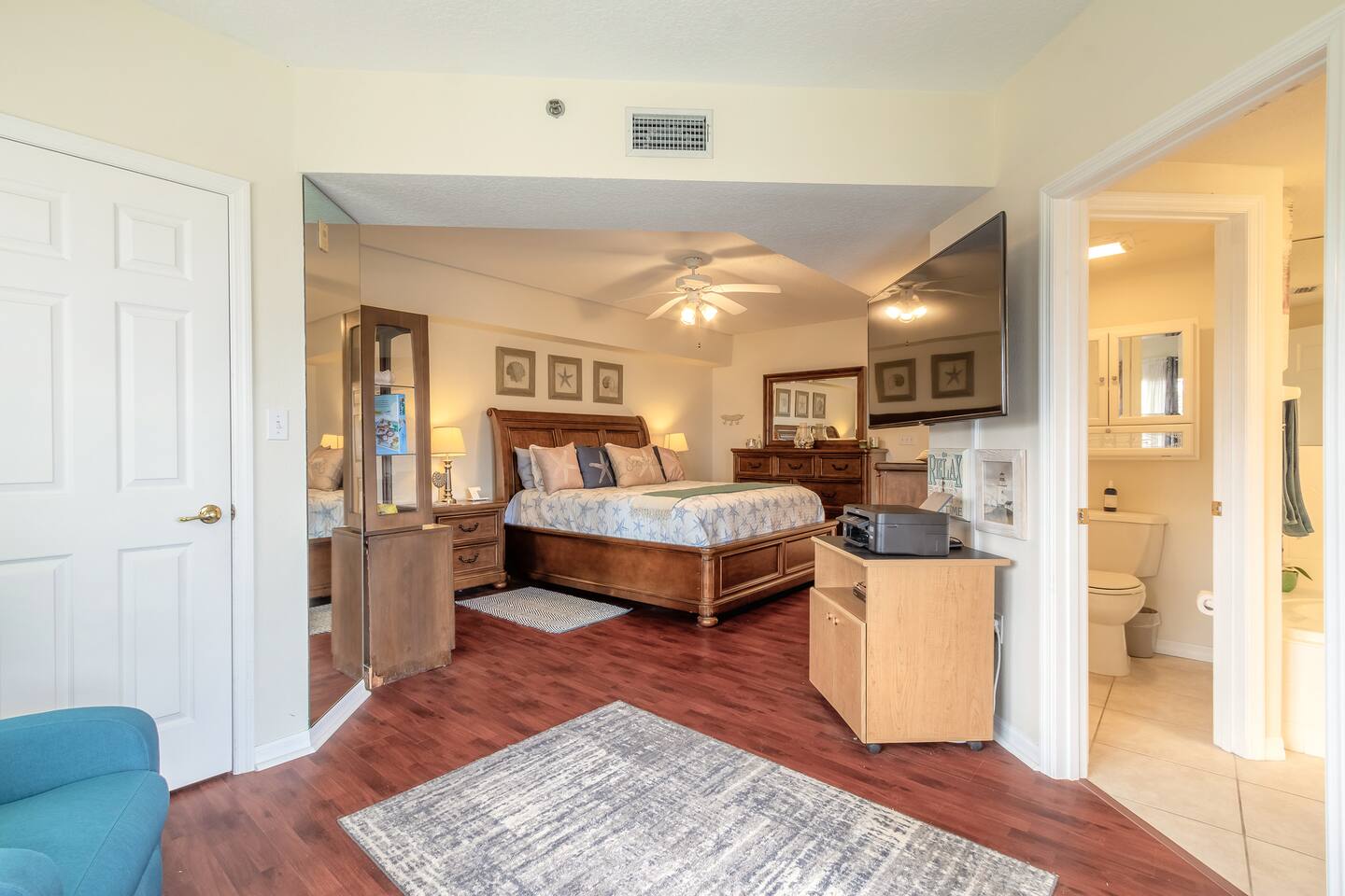 Inside, you'll find everything you need for a hassle-free stay. The condo is fully stocked with all your beach essentials, from towels and chairs to umbrellas and boogie boards. And for those who love to cook, the kitchen comes equipped with all the necessary appliances, cookware, and utensils, so you can whip up delicious meals with ease. But the amenities don't stop there! As part of the resort, you'll have access to a range of fantastic facilities, including a sparkling pool, fitness center, and more. Whether you're looking to unwind by the water or stay active during your stay, there's something for everyone to enjoy. Don't miss out on the chance to experience beachfront living at its finest. Book your stay today and start making memories that will last a lifetime!
