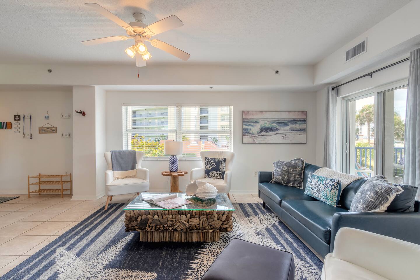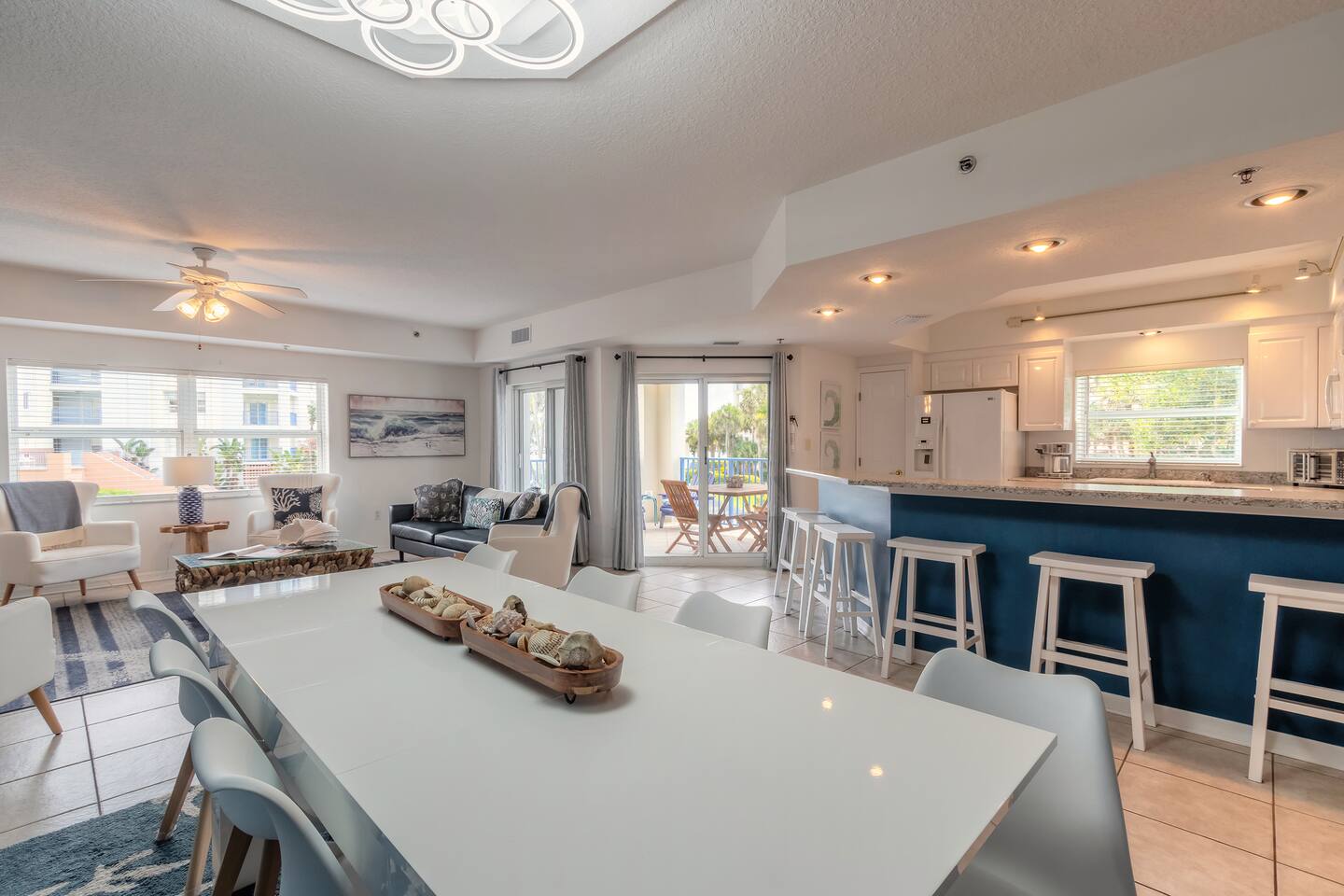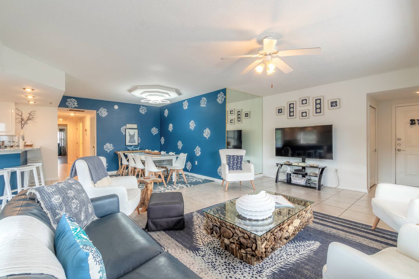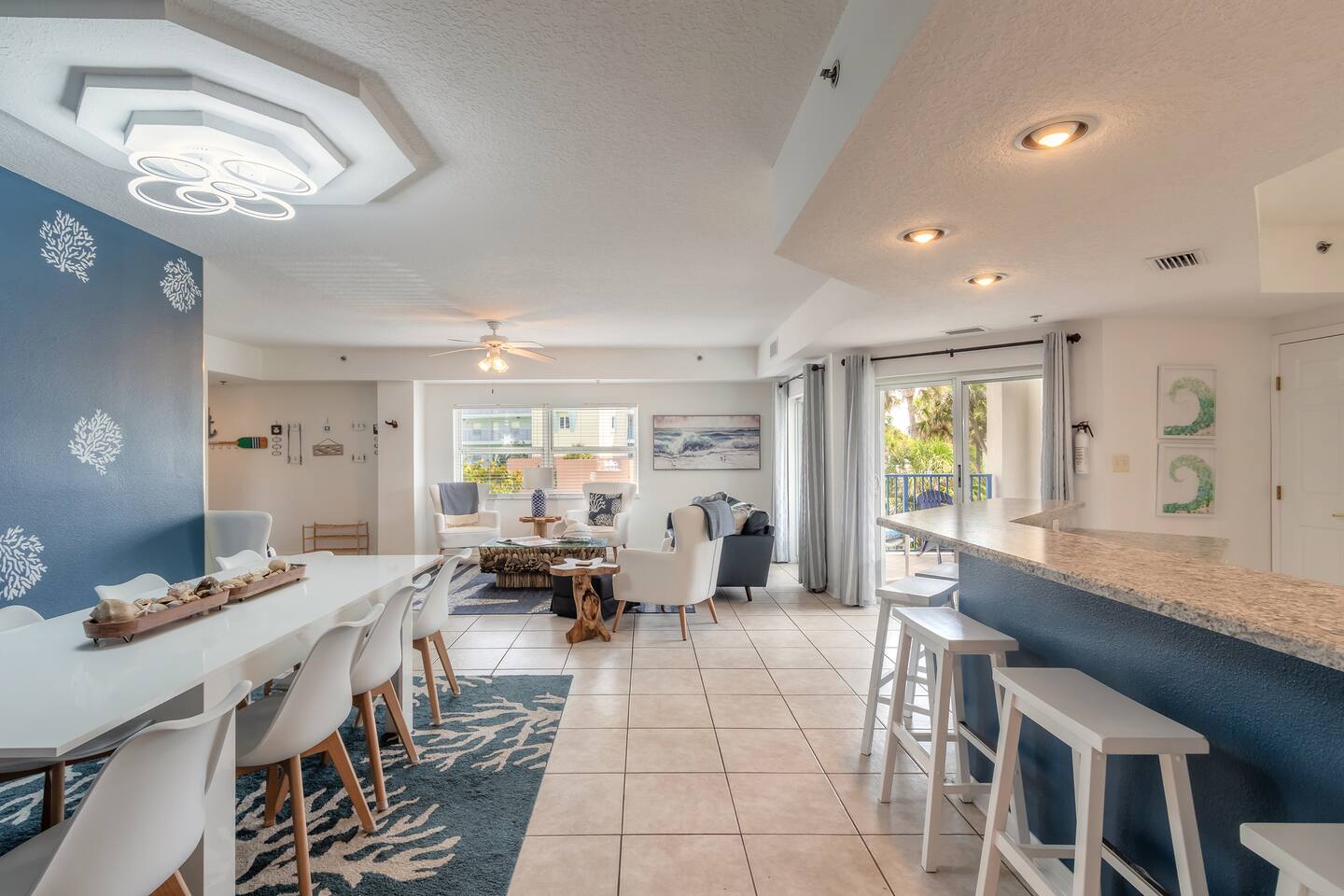Welcome to your beach resort sanctuary! Nestled along the coastline, this spacious condo boasts 1800 sq ft of comfort and style, perfect for your next getaway. With its awesome beachy décor and design, you'll feel like you've stepped into a coastal paradise. Whether you're soaking in one of the heated pools or the blue ocean waters, your stresses will melt away. The pool is just steps away, and the beach is a resort access walk which takes less than 10 minutes to have your toes in the sand.