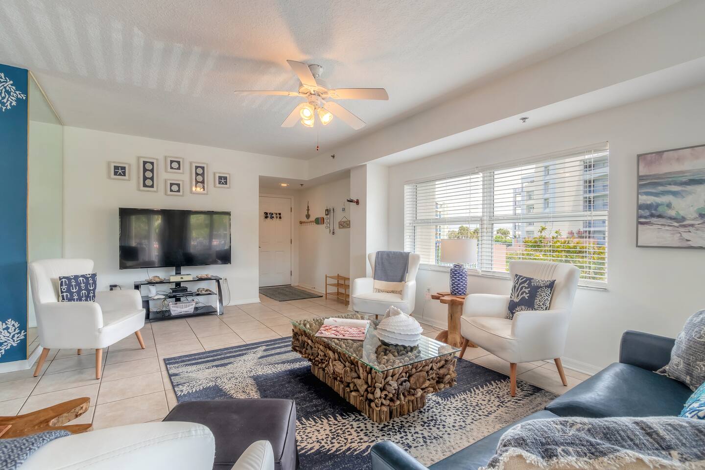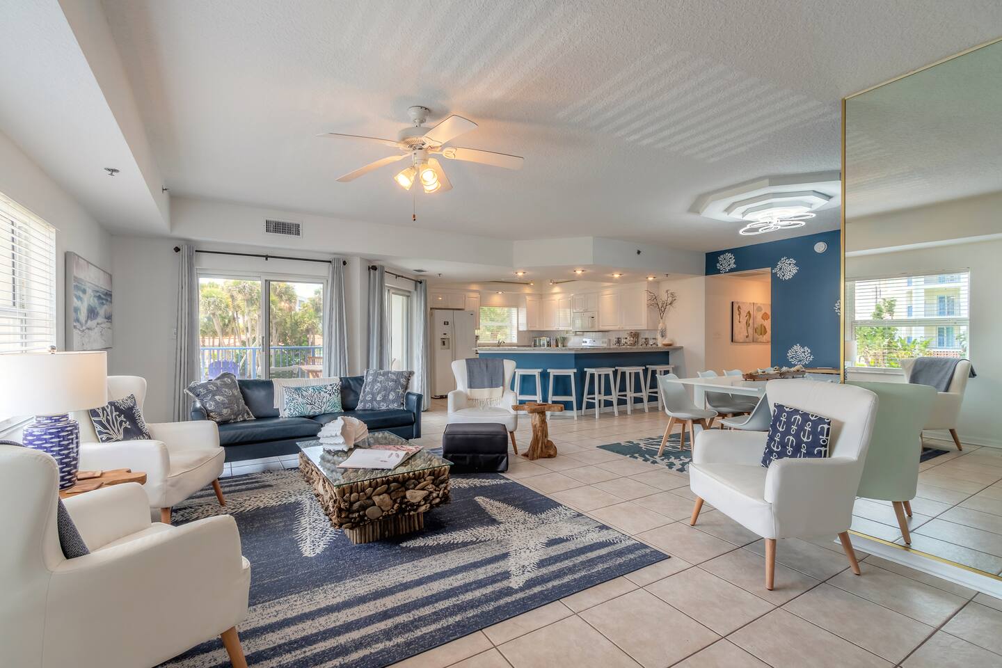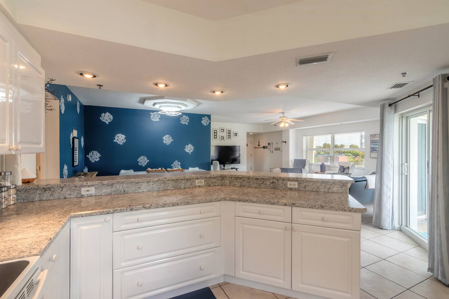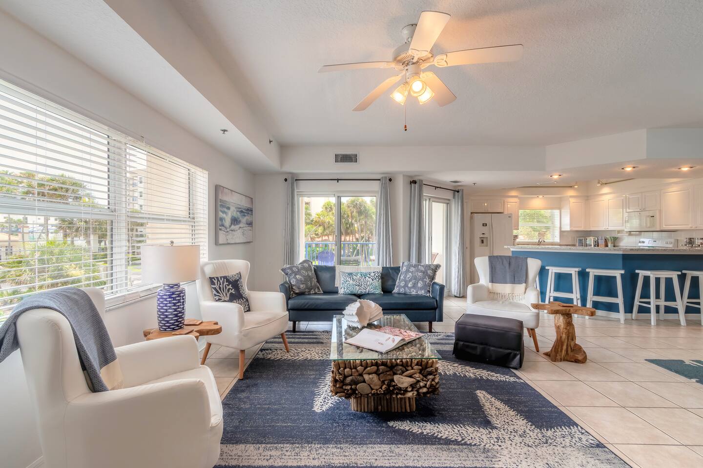 Welcome to your beach resort sanctuary! Nestled along the coastline, this spacious condo boasts 1800 sq ft of comfort and style, perfect for your next getaway. With its awesome beachy décor and design, you'll feel like you've stepped into a coastal paradise. Whether you're soaking in one of the heated pools or the blue ocean waters, your stresses will melt away. The pool is just steps away, and the beach is a resort access walk which takes less than 10 minutes to have your toes in the sand.