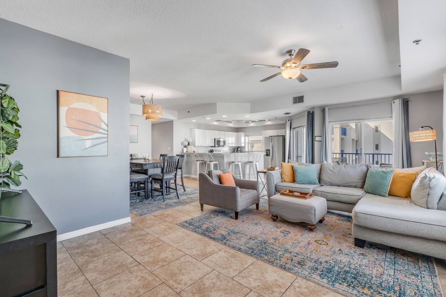 Welcome to your beachside retreat at Ocean Walk! This spacious 3-bedroom, 2-bath condo offers a perfect blend of comfort and resort living. The open floor plan features a bright living area, fully stocked kitchen, and a private balcony overlooking the lush coastal preserve — ideal for morning coffee or evening wine. The primary suite includes a king bed, walk-in closet, and ensuite bath with a soaking tub and separate shower. The guest rooms feature a queen bed and two twins, making it easy to accommodate families or groups. Guests enjoy full access to Ocean Walk’s incredible amenities — two resort-style pools and hot tubs, tennis and basketball courts, fitness center, clubhouse, and a private movie theater. The no-drive beach is just across the street, offering endless sun and surf without the crowds. Whether you’re here for a weekend getaway or an extended stay, Ocean Walk 5-507 is your peaceful home base to relax, recharge, and explore everything New Smyrna Beach has to offer. 🌴