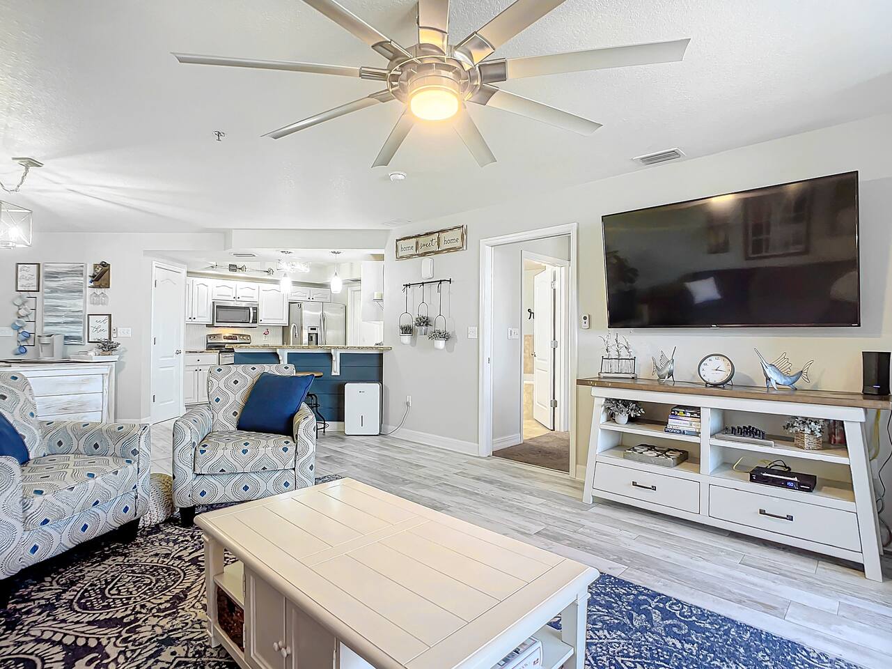🌊 Condo Features: 2 Spacious Bedrooms & 2 Full Bathrooms – Comfortably accommodates up to 5 guests. Open-Concept Living Space – Light and airy design, with modern beachy decor. Fully-Equipped Kitchen – All the essentials for home-cooked meals and snacks. Private Balcony – Perfect for morning coffee or evening cocktails with a view of the lush surroundings. High-Speed WiFi & Smart TV – Stay connected and entertained. 🏖️ Resort-Style Amenities: Two Heated Pools & Hot Tubs – Relax after a day at the beach. Private Beach Access – Just steps away from the sand and surf. Fitness Center & Sauna – Keep up with your fitness routine. Tennis Courts & Shuffleboard – Great for some friendly competition. Clubhouse & Movie Theater – Perfect for family fun or unwinding indoors. Outdoor BBQ Area – Ideal for a pool-side cookout with friends and family. 🌴 Location Highlights: Beach Access – Enjoy sunrise walks and sunset views. Nearby Flagler Ave – Discover charming shops, local restaurants, beach bars, and live music. Close to Outdoor Adventures – Go kayaking, paddleboarding, or take a scenic drive to Canaveral National Seashore. Whether you’re here for relaxation or adventure, our Ocean Walk condo has everything you need for an unforgettable beach escape. Book your stay today and experience the best of New Smyrna Beach!