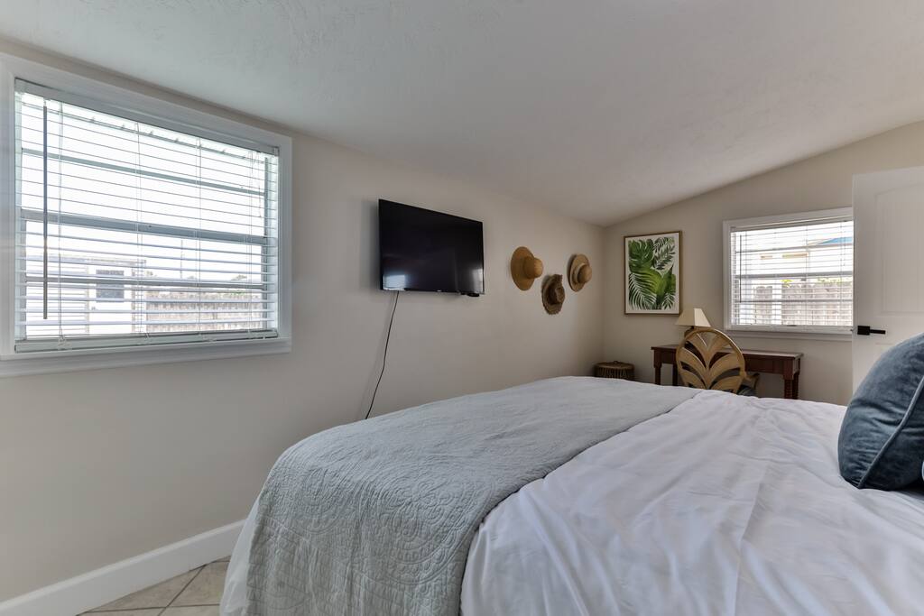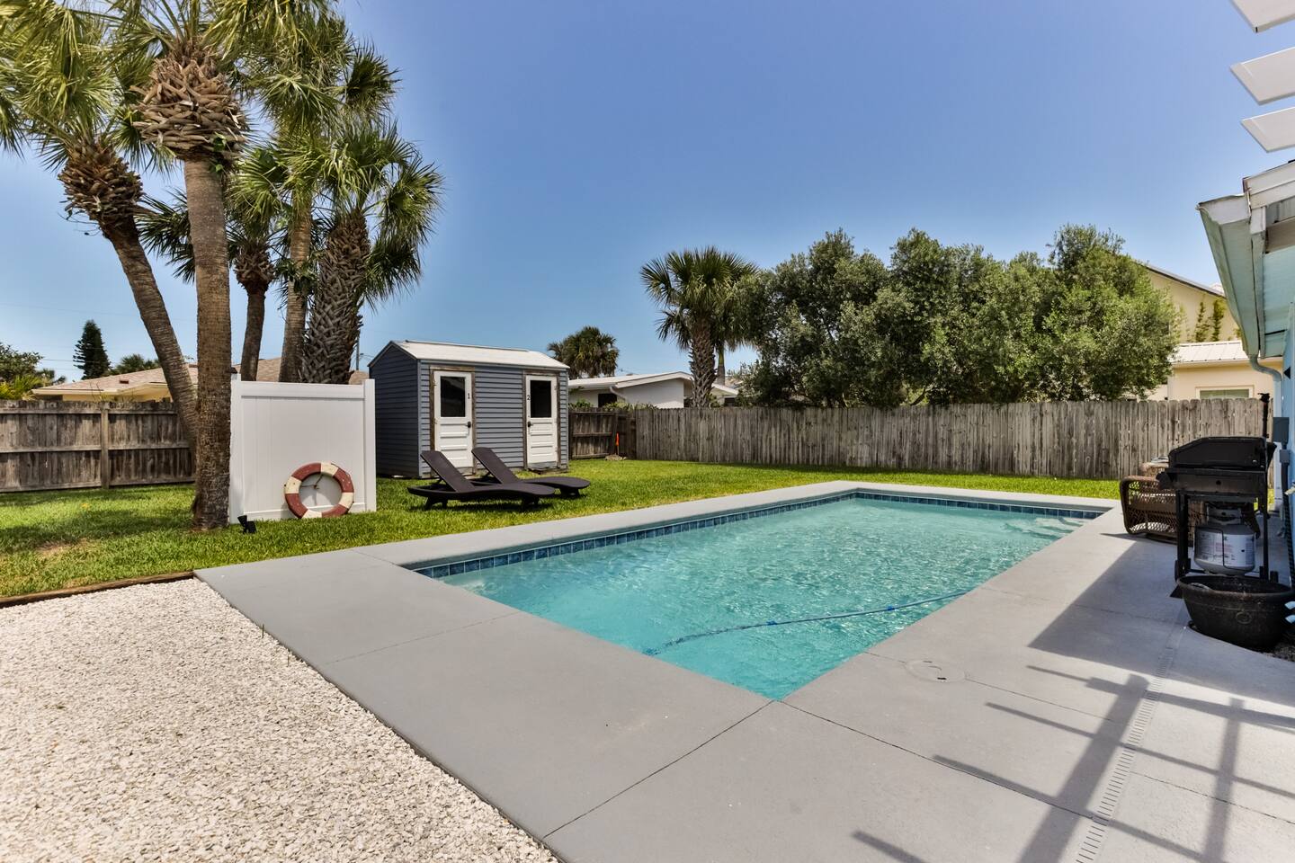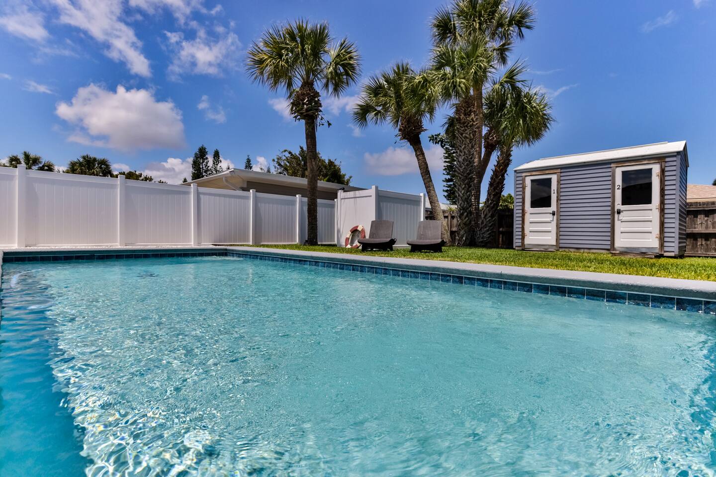 Stay just steps from the beach in this stylish 2BR duplex with a king bed, twin room, and shared heated pool in a lush backyard. Walk 5 minutes to the ocean, 14 minutes to Flagler Ave, and easily reach NSB’s best dining and nightlife. Perfect for families or couples looking to relax, explore, and enjoy everything New Smyrna has to offer. We’d love to host you at your beach home away from home!