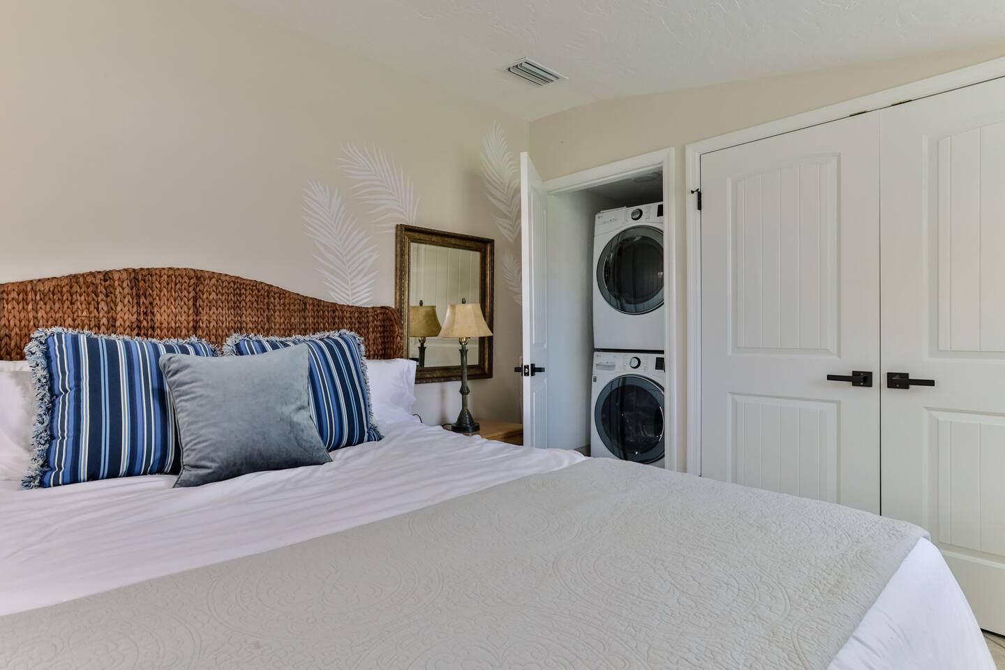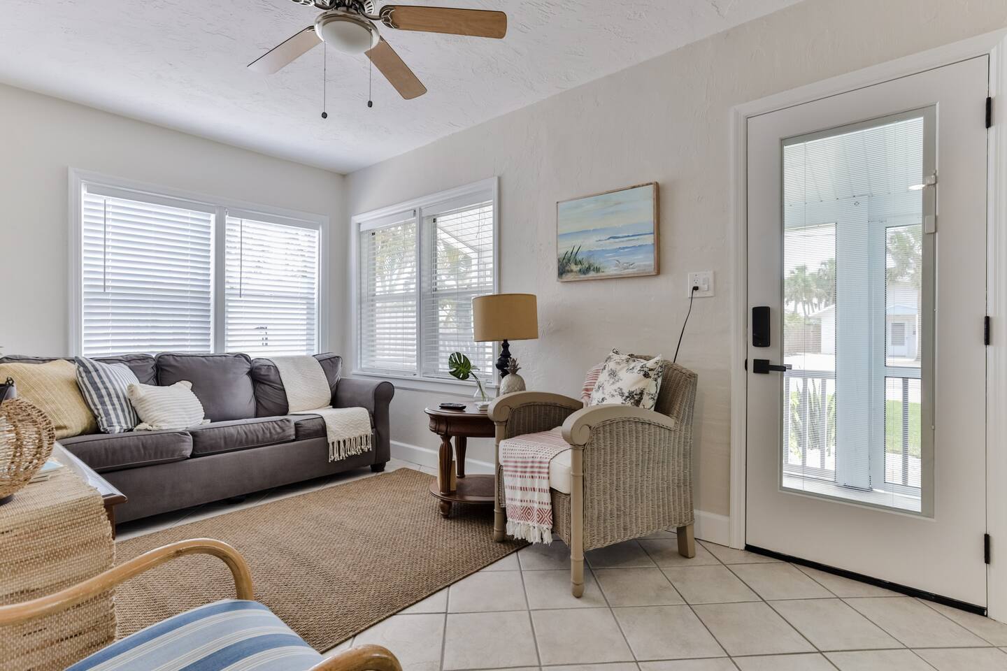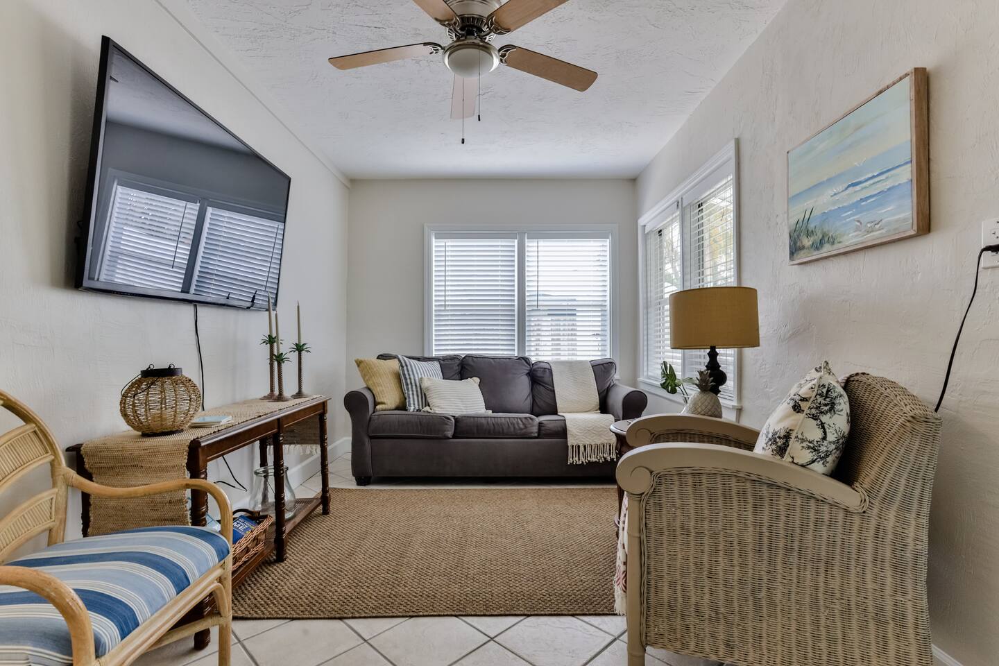 Stay just steps from the beach in this stylish 2BR duplex with a king bed, twin room, and shared heated pool in a lush backyard. Walk 5 minutes to the ocean, 14 minutes to Flagler Ave, and easily reach NSB’s best dining and nightlife. Perfect for families or couples looking to relax, explore, and enjoy everything New Smyrna has to offer. We’d love to host you at your beach home away from home!