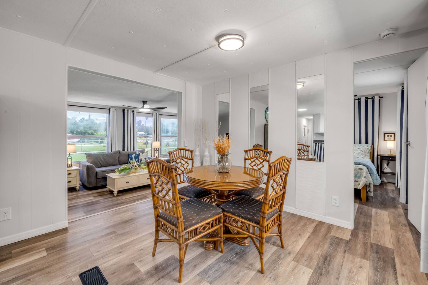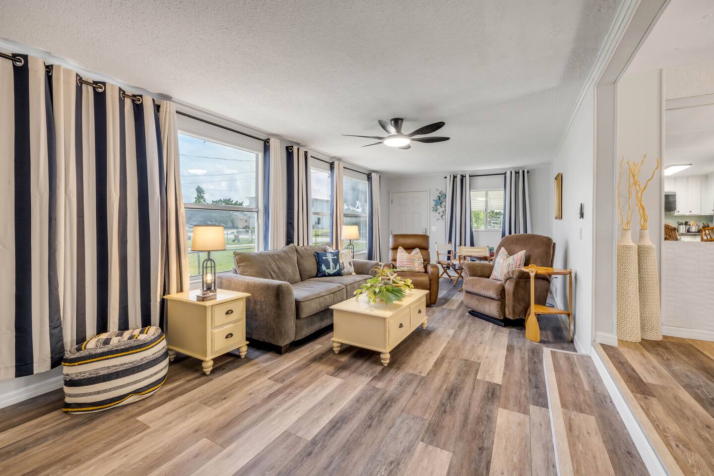 Fully remodeled canal-front home with deep-water access near Mosquito Lagoon! Features 2 bedrooms, 1.5 baths, a king bed, a queen bed, a queen sleeper sofa, Florida room, and private boat docking. Perfect for fishing, boating, or relaxing by the water. Less than a mile from River Breeze boat launch and a short drive to New Smyrna Beach! Make this home your fishing, boating, kayaking or relaxing "go-to" today!
