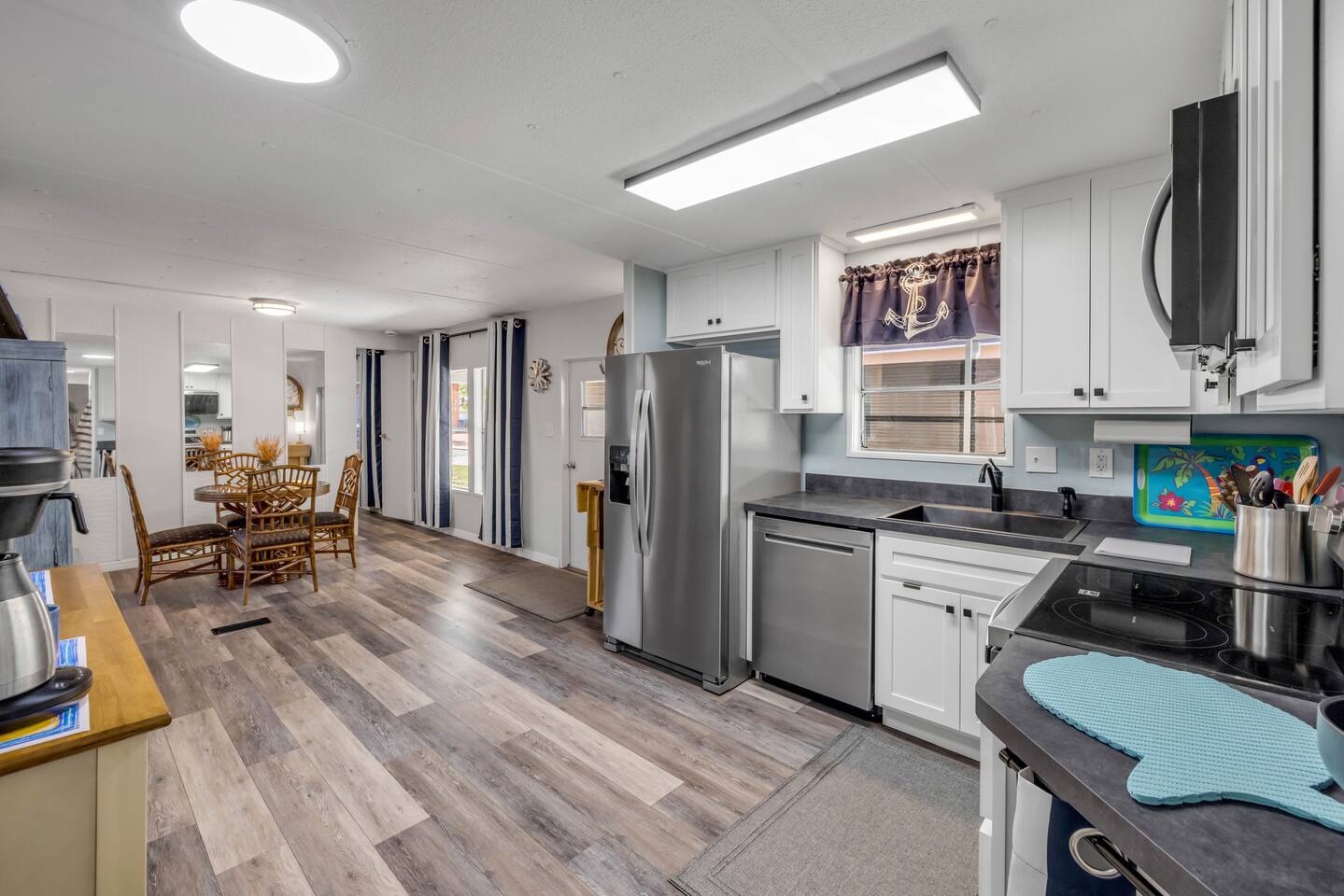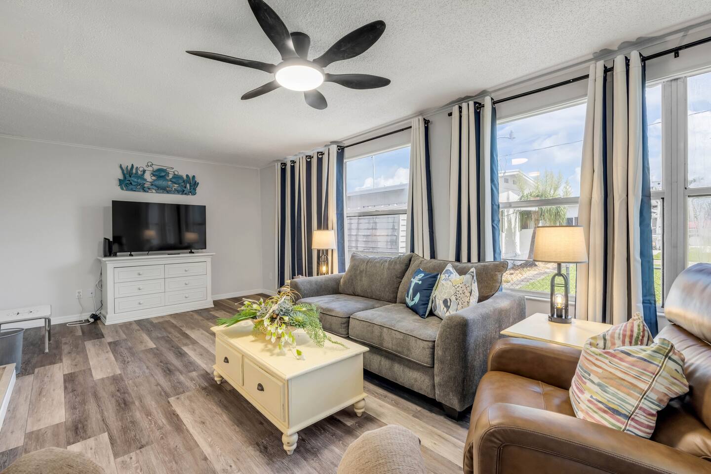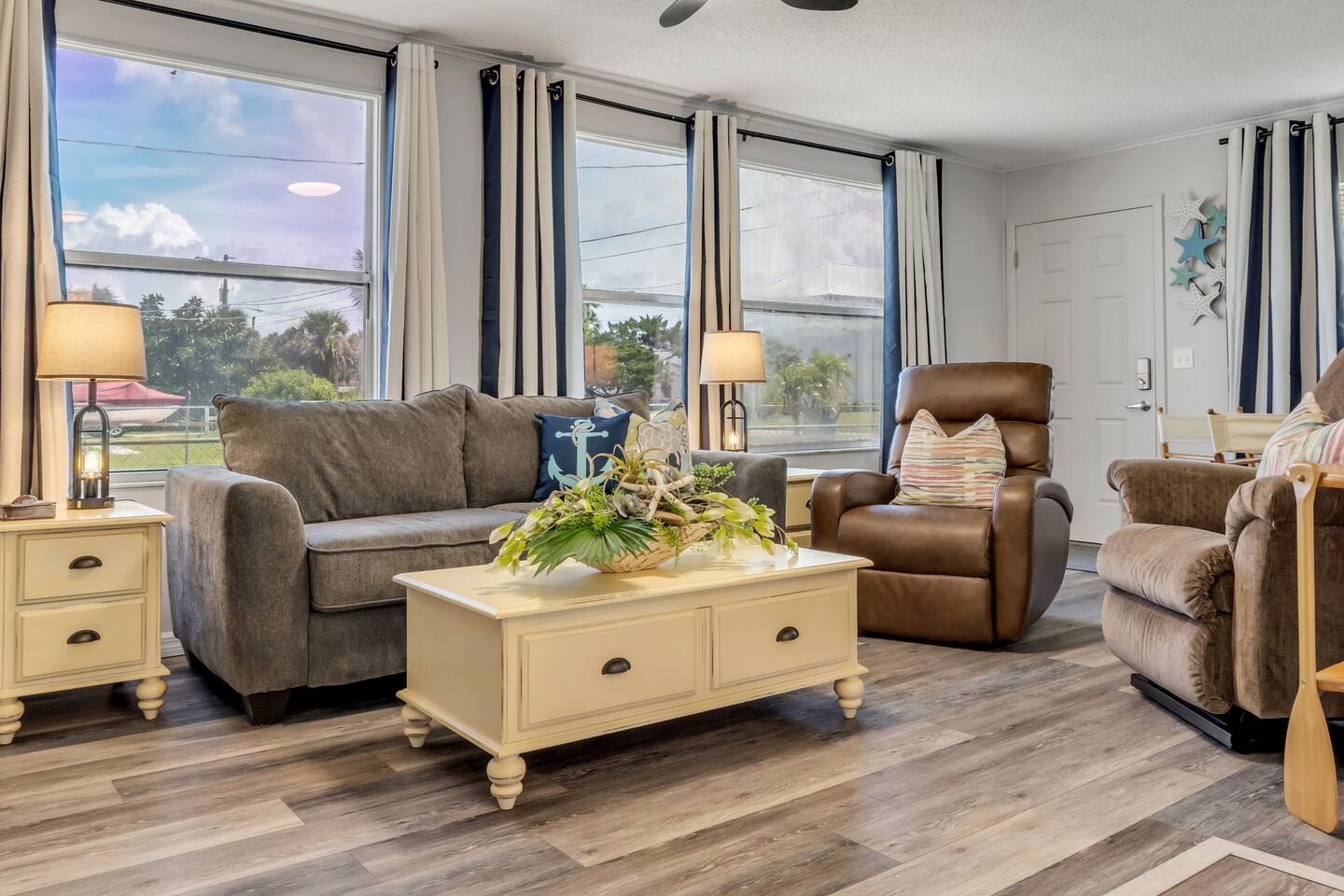 Welcome to your waterfront getaway! This beautifully refurbished Edgewater home offers modern comfort in a serene canal setting. The open layout includes a fully equipped kitchen, cozy living area, and a spacious Florida room overlooking the water. With two bedrooms, 1.5 baths, and a queen sleeper sofa, there’s room for family or friends. Dock your boat right outside or launch nearby to explore Mosquito Lagoon’s world-famous fishing and wildlife. Whether you’re here for boating, relaxing, or beach days in New Smyrna, this home is the perfect base for your coastal adventures.