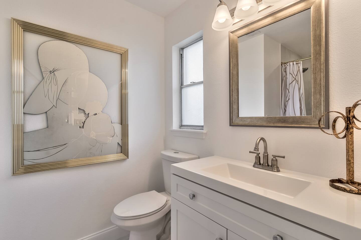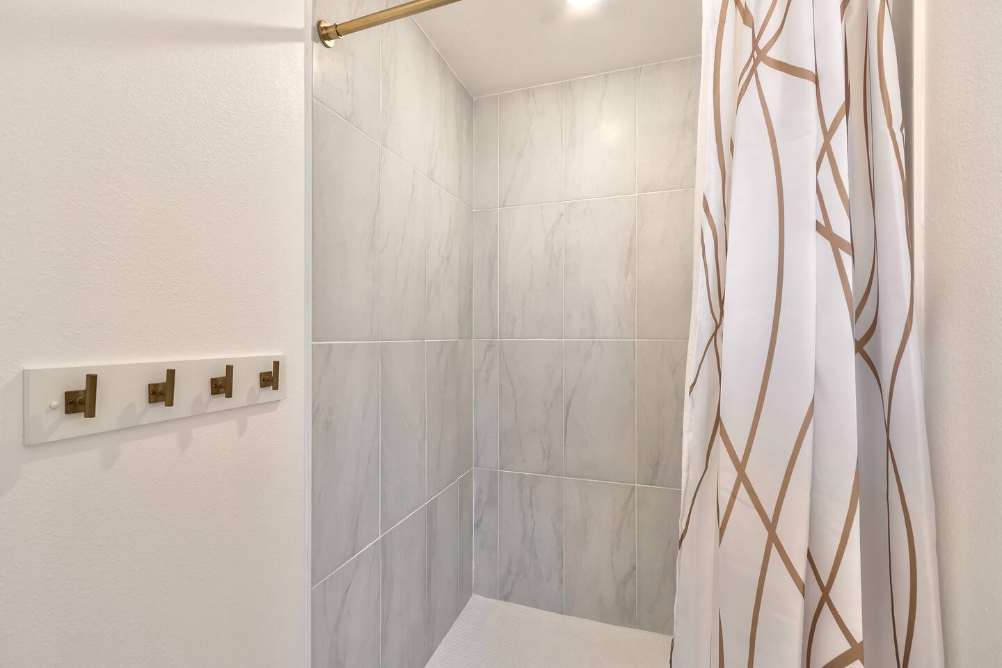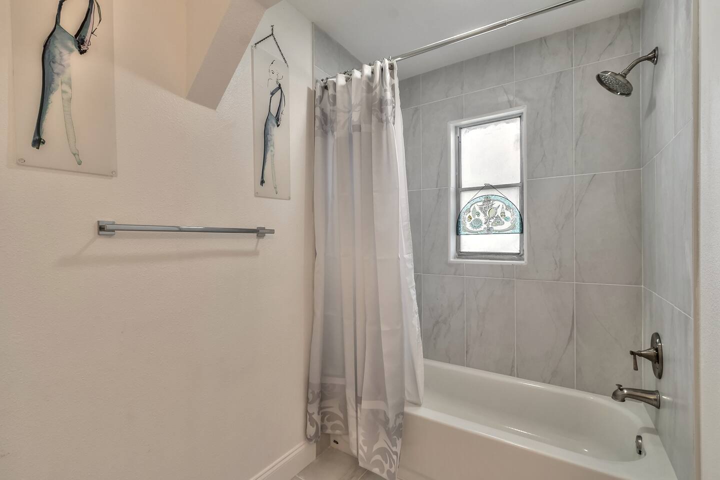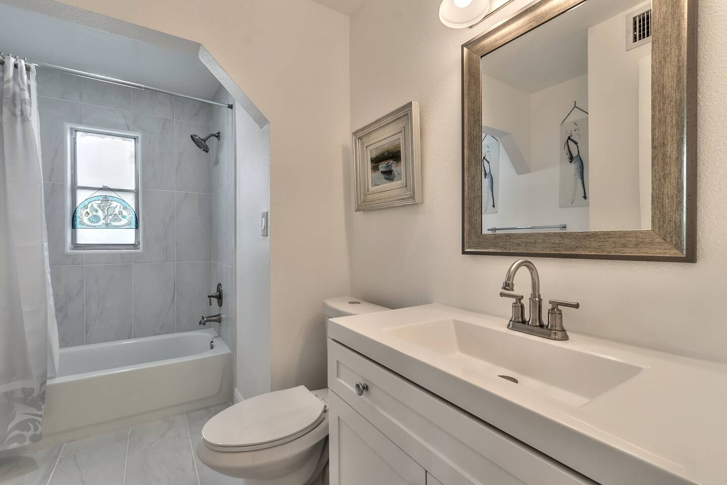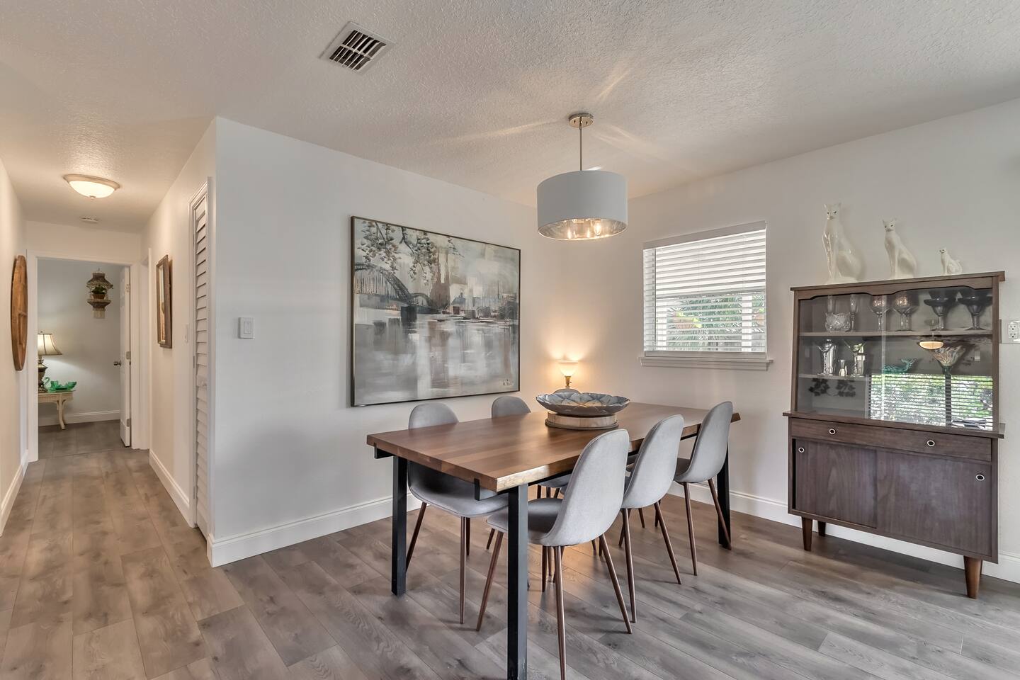 On this quiet street, your vacation home is 2 bed and 2 bath and completely remodeled. Everything is new, with the exception of some local antiques and original art. Our favorite attribute of this home is the true open concept in the common areas. The kitchen, dining room and living room are extremely spacious and connected without walls. Enjoy the 75" 4k TV while conversing with family in the kitchen and bar. Both the ensuite and guest baths are completely new with gray and white tile, plenty of light and high mounted shower heads. The guest bath also has a tub. The main bedroom features a new king size Green Tea mattress, 55" Roku TV and plenty of closet space. The guest/kid's room has full size bunk beds and a futon, a closet with games and books as well as its own 55" Roku TV. Outside, the back yard is fully fenced in for your pup to enjoy. There is a covered patio with furniture as well as a park style BBQ grill. The back yard is illuminated at night by five solar string lights. Parking is ample. There is room to park a small to medium size boat (up to 21ft), or a kayak, motorcycle or other trailer while still having parking for two cars. You will be close to grocery stores (Publix, Winn Dixie and Aldi), more restaurants than we can list here, not to mention banks, stores, etc. And, did we mention the drive-on beaches, canal district, dog beaches, dog parks, boat and kayak launches, public piers (within walking distance), Cape Canaveral, Kennedy Space Center, Daytona Beach, world renowned Mosquito Lagoon for fishing, one hour drive to Orlando, hour and a half to St Augustine, Manatee viewing at Merrit Island National Wildlife Refuge. Oh! And you can watch the space launches from the house! We can't list all of the amazing things to do and see here in this slice of Florida Coast Heaven.