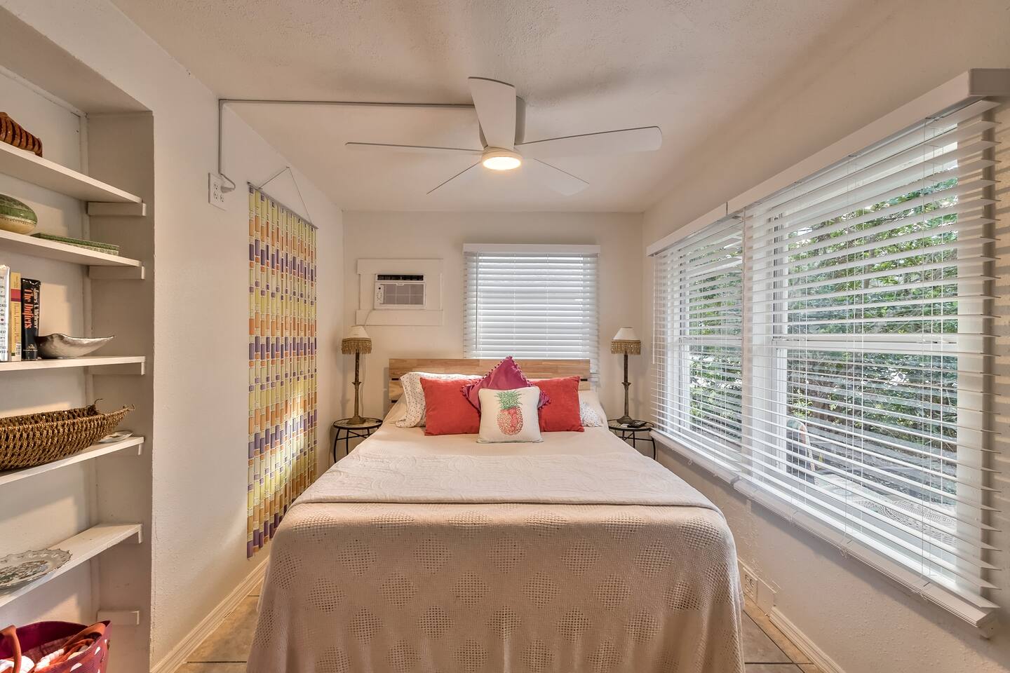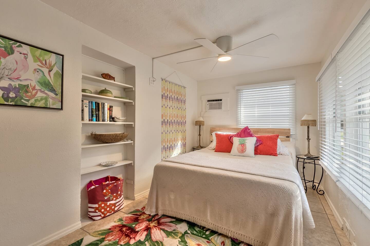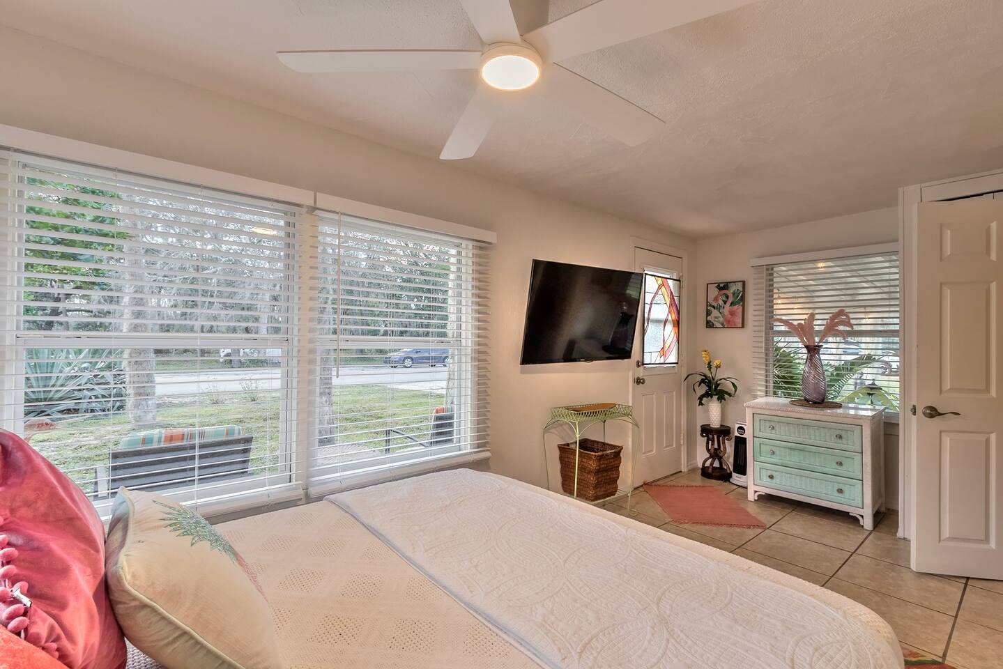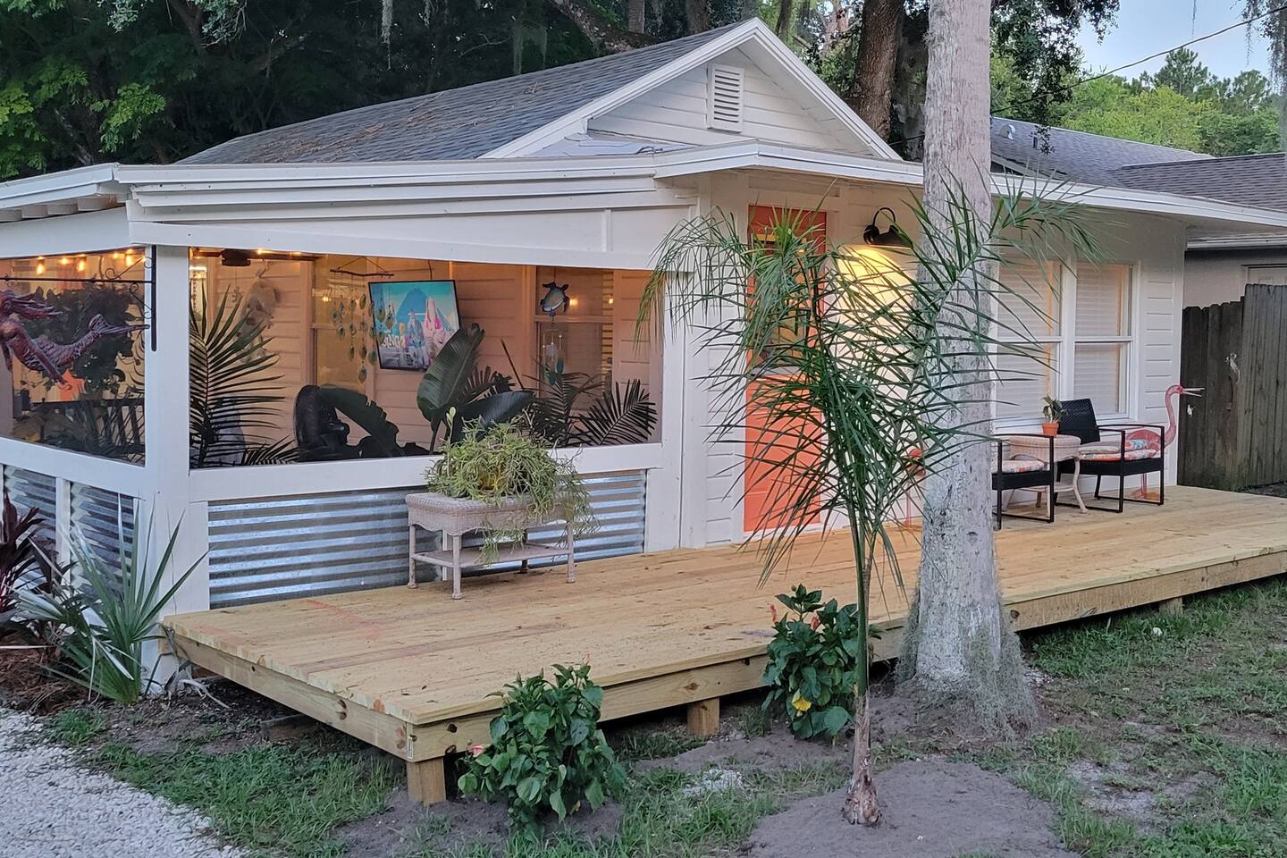 DBPR License: DWE7407122- This is a legal Airbnb The house is newly painted, has a new roof, new front deck, newer windows, and a remodeled porch. Also included are all new upper-scale kitchen appliances and a brand new Samsung washer and dryer combo. All furniture is either brand new, or sourced from the antique stores in the area. The two bedrooms are medium sized, and large flat screen TVs and brand new Green Tea memory foam mattresses (super comfy!) The house has three remote controlled A/C units- one in each bedroom, and one in the living room. They can turn the house into a meat locker on the hottest day if you wish! The living room and dining area are relatively small but very functional with a ceiling fan and another large flatscreen smart TV. The bathroom is a full bath with a tub, and all hot water is powered by a tankless heater for long showers.