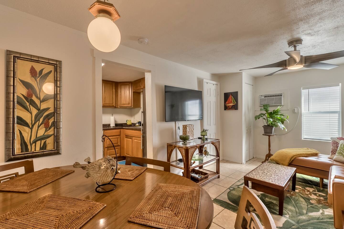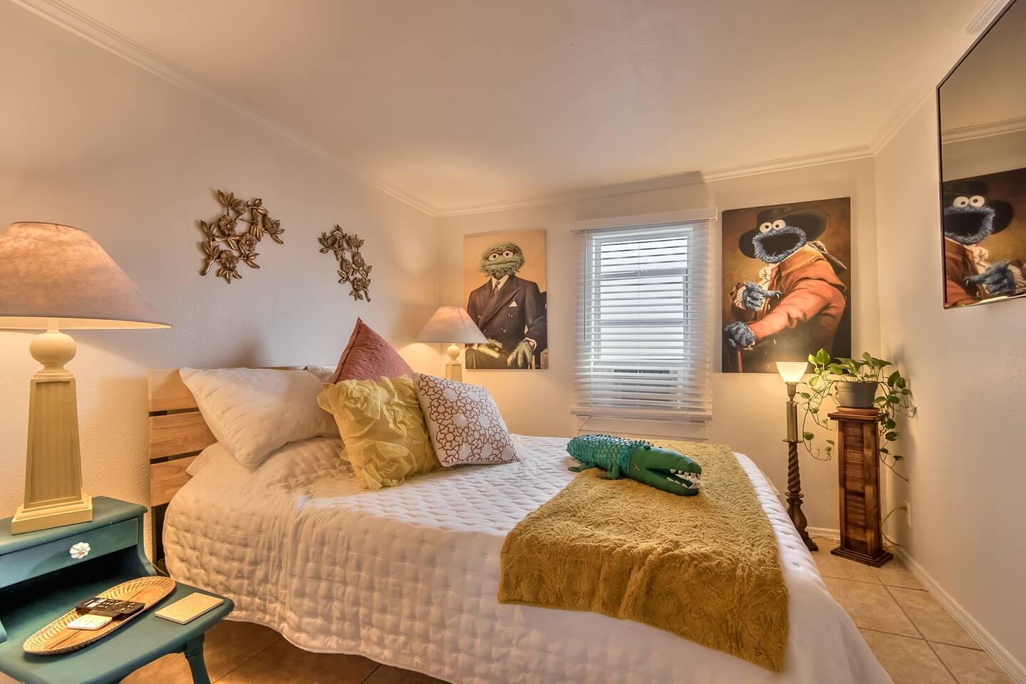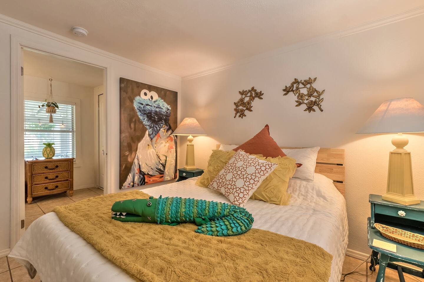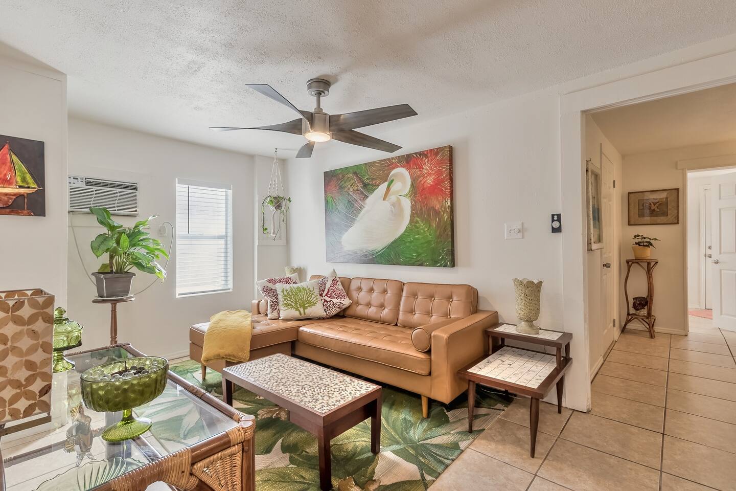 DBPR License: DWE7407122- This is a legal Airbnb The house is newly painted, has a new roof, new front deck, newer windows, and a remodeled porch. Also included are all new upper-scale kitchen appliances and a brand new Samsung washer and dryer combo. All furniture is either brand new, or sourced from the antique stores in the area. The two bedrooms are medium sized, and large flat screen TVs and brand new Green Tea memory foam mattresses (super comfy!) The house has three remote controlled A/C units- one in each bedroom, and one in the living room. They can turn the house into a meat locker on the hottest day if you wish! The living room and dining area are relatively small but very functional with a ceiling fan and another large flatscreen smart TV. The bathroom is a full bath with a tub, and all hot water is powered by a tankless heater for long showers.