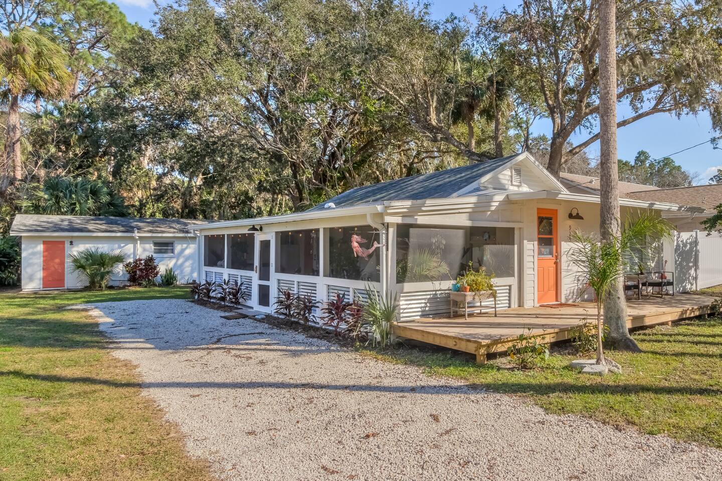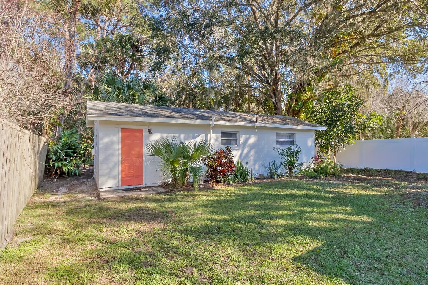 This "Old Florida" bungalow was once a farm house built in 1937 on a horse farm. The farm is gone now, but the style and feel of the house is still there. Close to everything and centrally located, this peaceful property is ideal for people looking for a relaxing home away from home. Enjoy the brand new appliances, new paint, roof and furniture. Sit in the 325 sq ft porch watching a 55inch TV, listening to the 4ft tall fountain surrounded by lush plants.