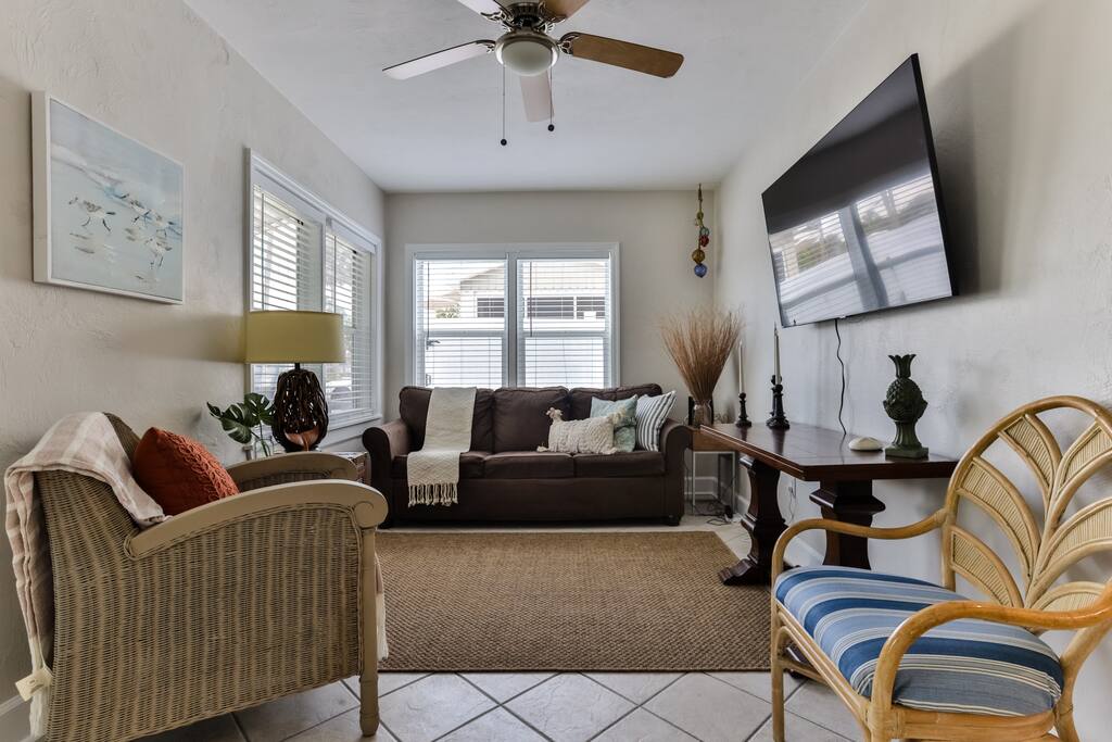Relax in this charming 1BR is part of a duplex, just a 5-minute walk to the beach and 14 minutes to lively Flagler Ave. Features a king bed, full bath, fully equipped kitchen, and shared heated pool with a tropical backyard. Perfect for couples or solo travelers looking to unwind and enjoy everything New Smyrna Beach has to offer!