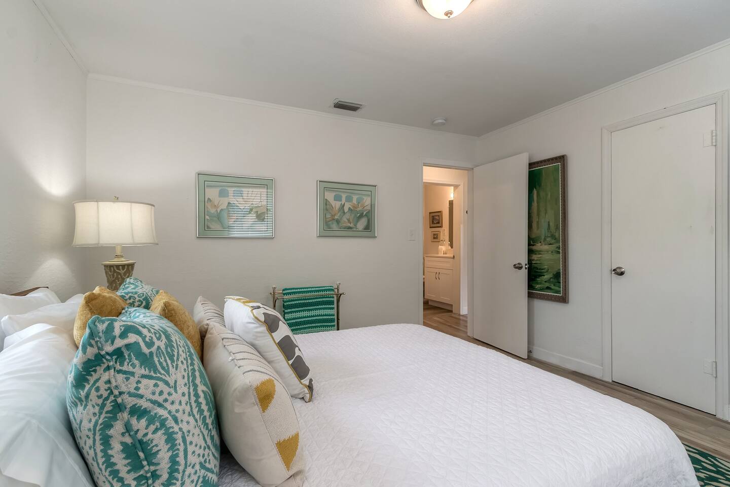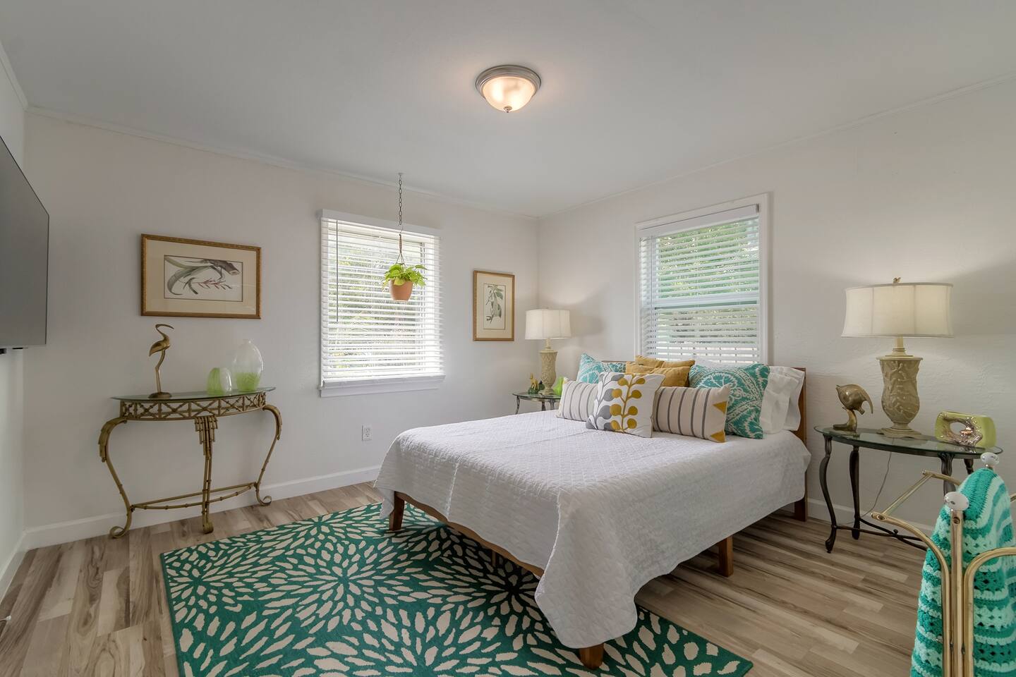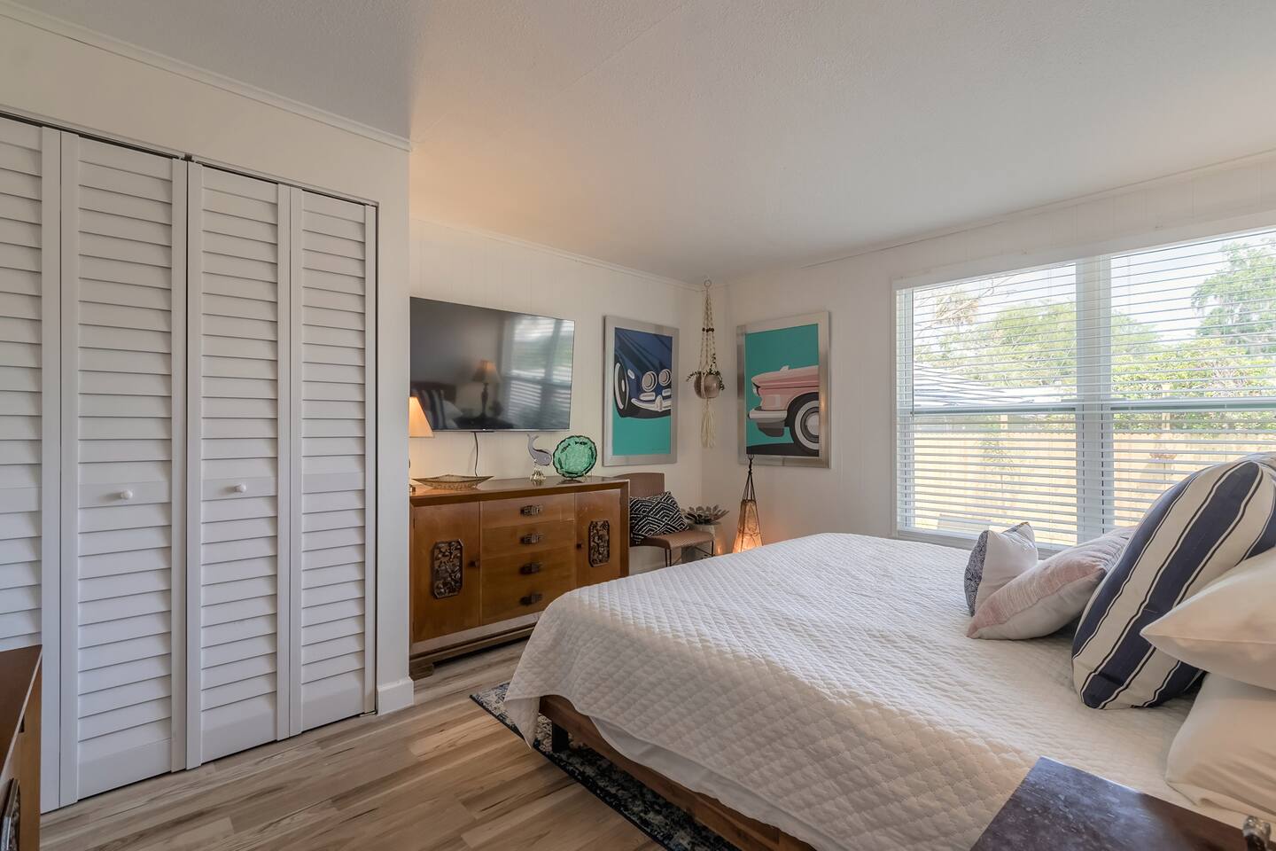 This 1600 Sq Ft home has three large bedrooms and on bath, plus a fully fenced in back yard. Two of the bedrooms have lots of room with King sized beds, and the third bedroom has a super comfy Queen. Every bedroom has a 55" TV and the living room has a 65"! The AC is new and the house stays cool. There is parking for boats and trailers too!