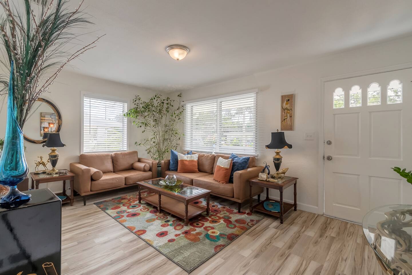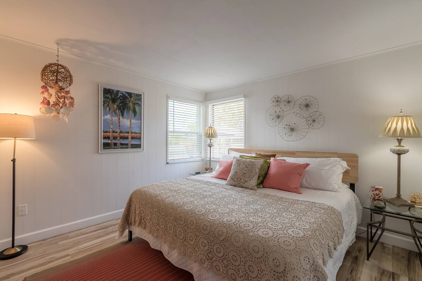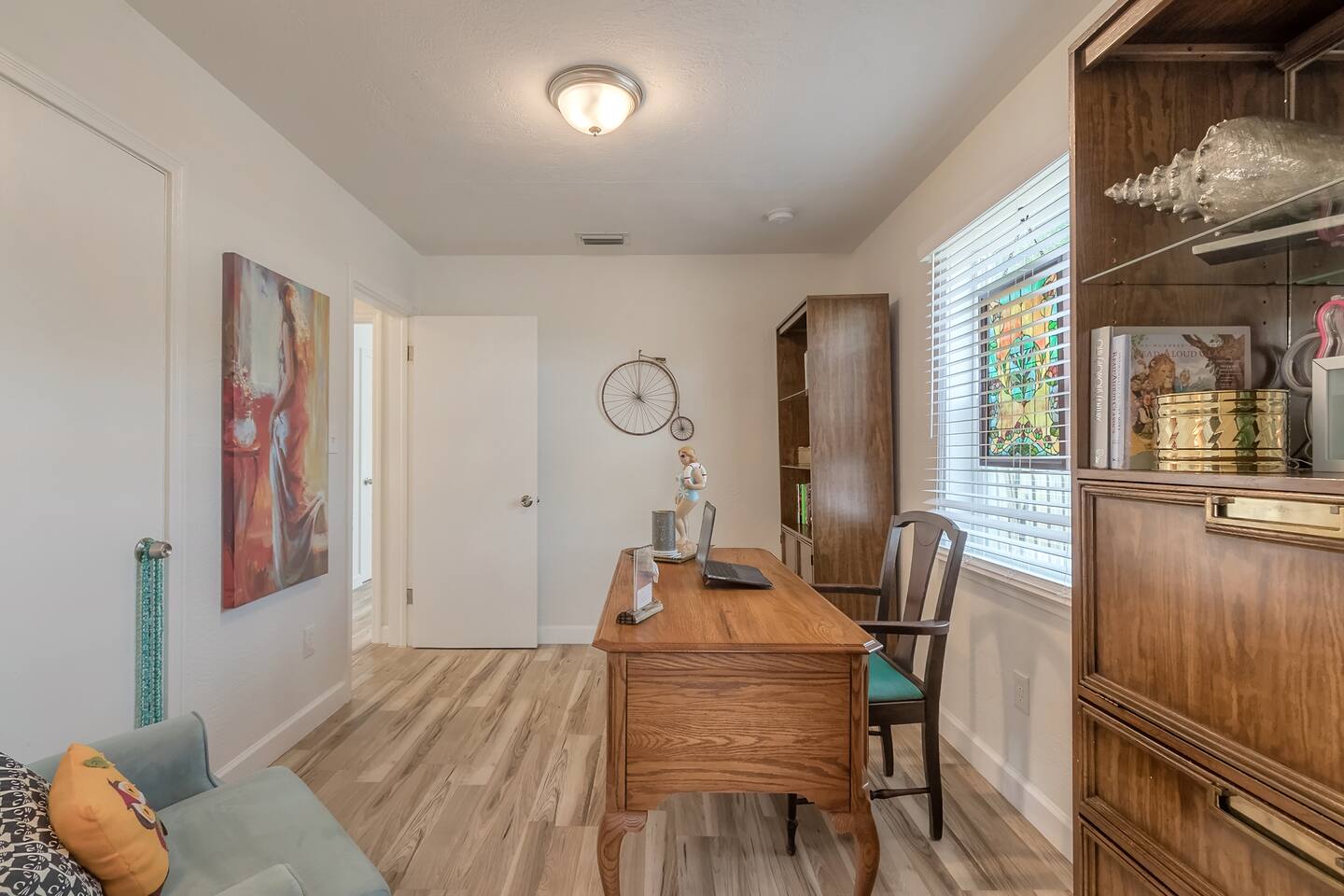 This 1600 Sq Ft home has three large bedrooms and on bath, plus a fully fenced in back yard. Two of the bedrooms have lots of room with King sized beds, and the third bedroom has a super comfy Queen. Every bedroom has a 55" TV and the living room has a 65"! The AC is new and the house stays cool. There is parking for boats and trailers too!
