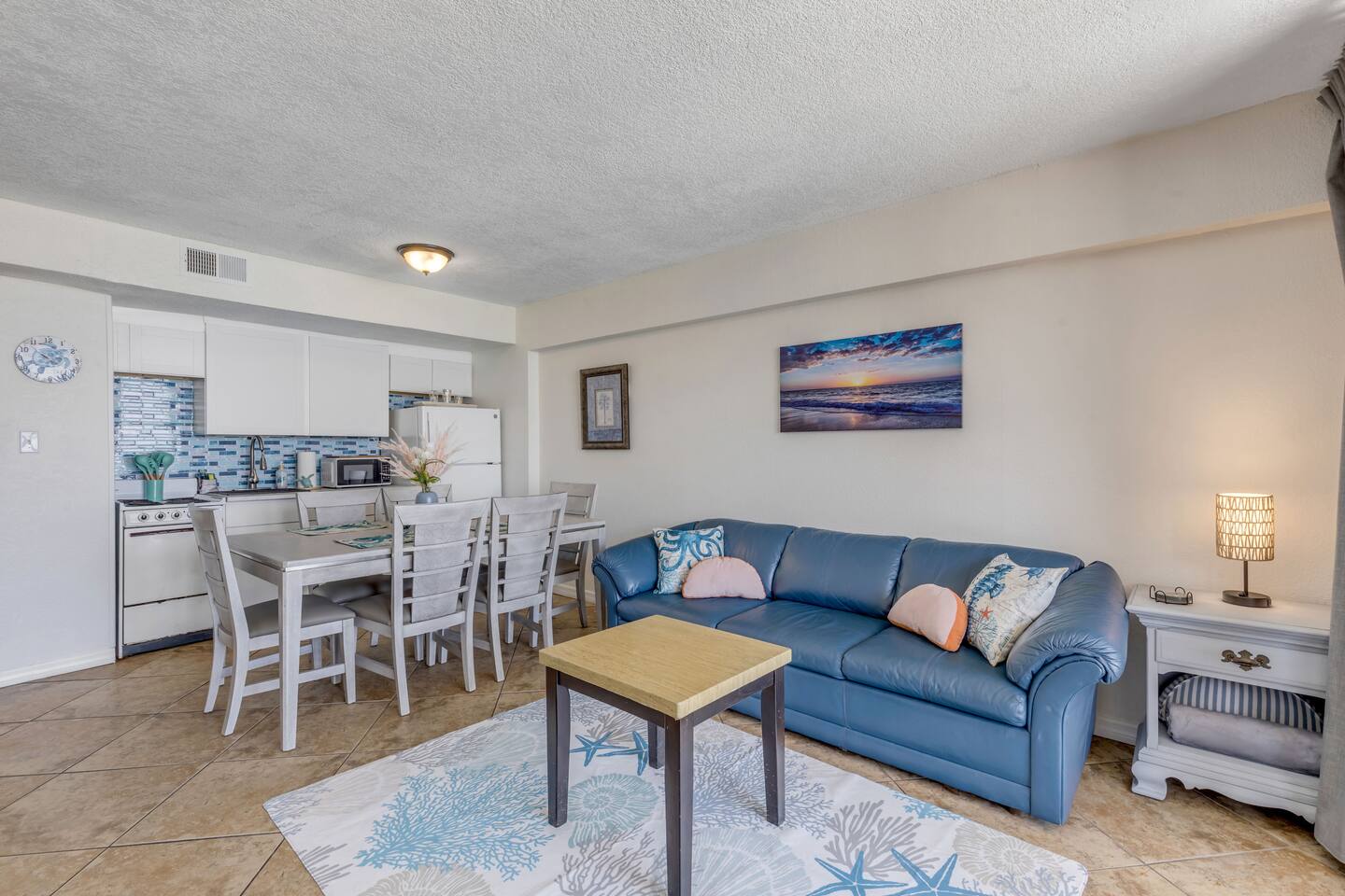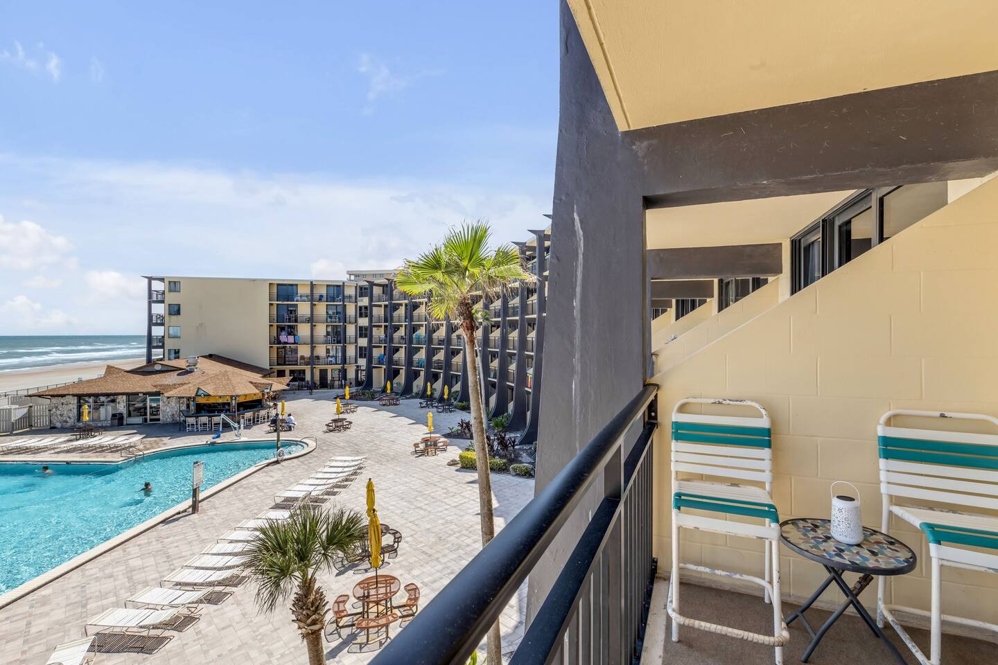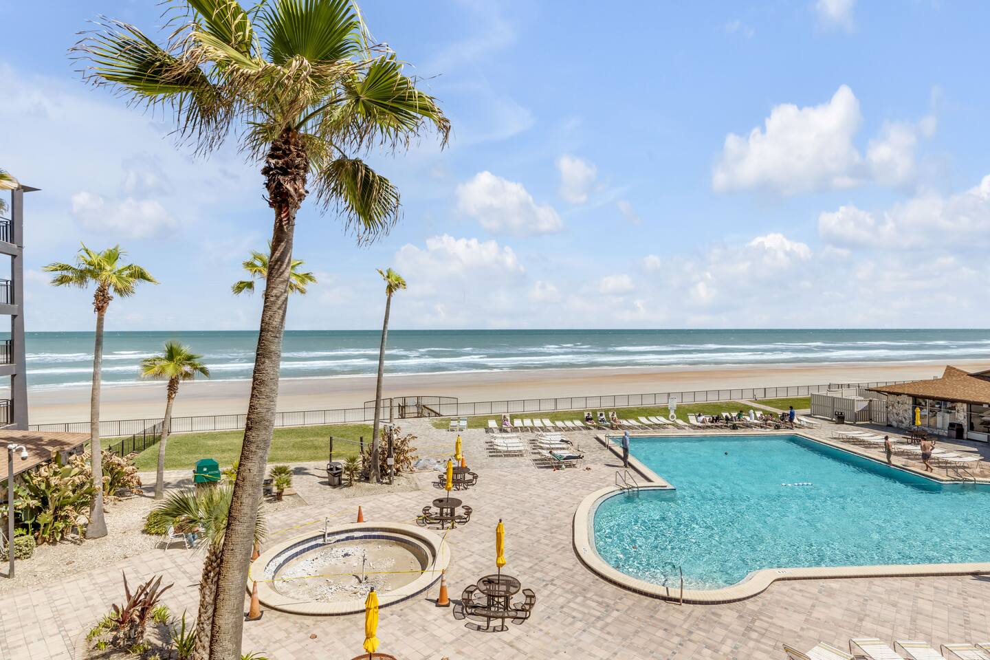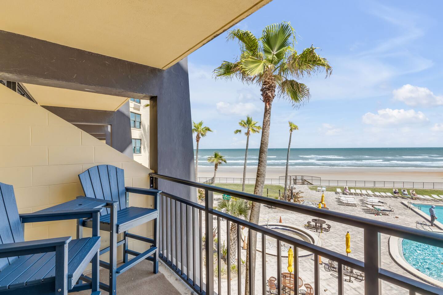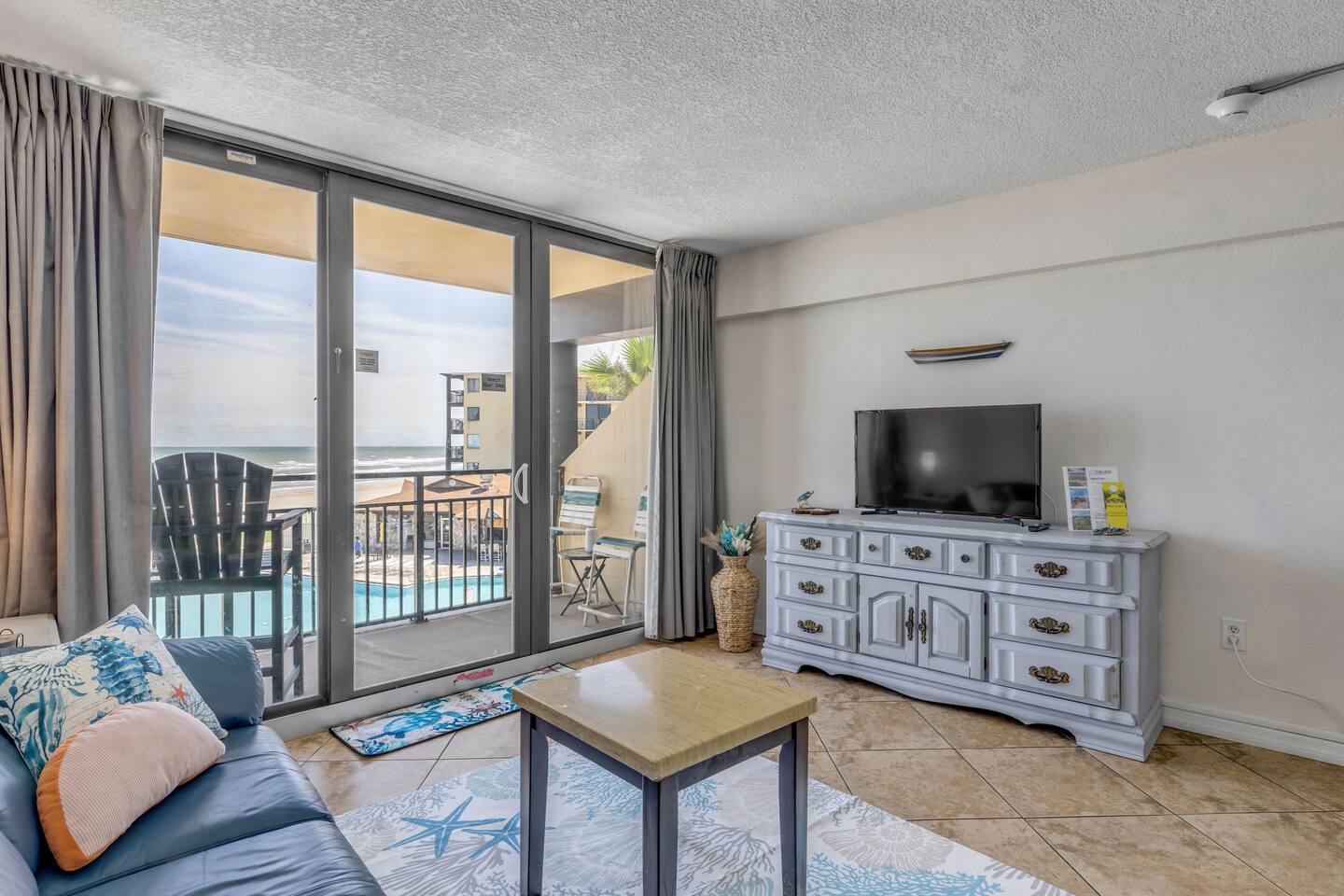 This 1BR/1BA oceanfront condo sleeps 4 and offers direct beach access. Enjoy a resort-style pool, indoor heated pool, and on-site tiki bar. Relax with coastal vibes, comfy living, and everything you need for the perfect beach getaway—sun, sand, and endless ocean views!