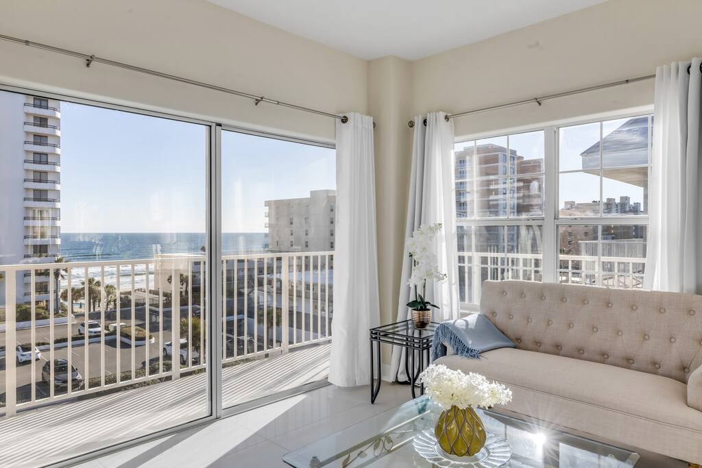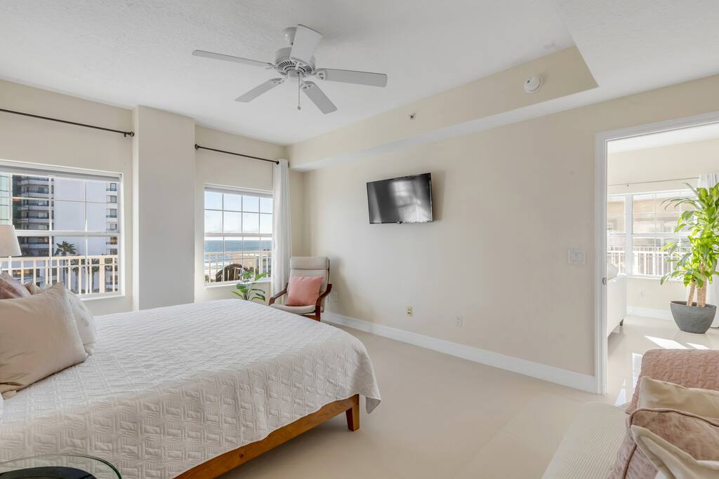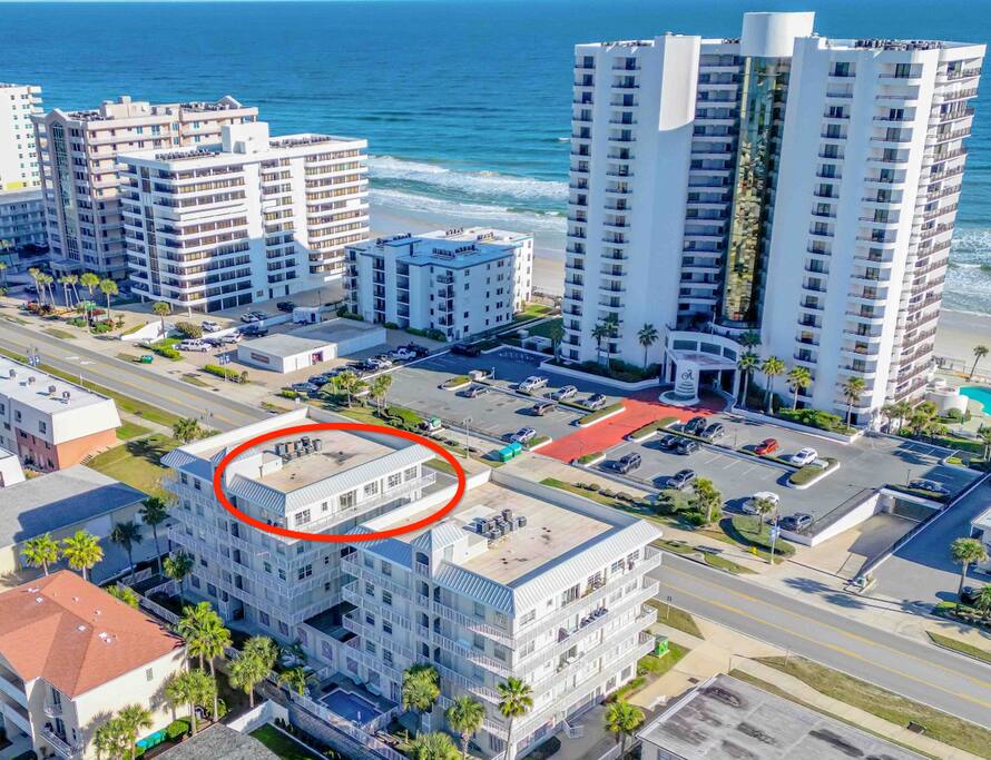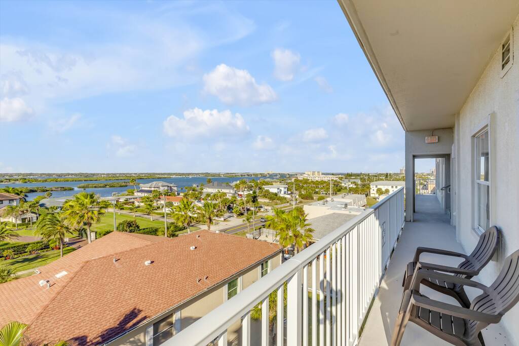 True penthouse living in Daytona Beach Shores. This rare top-floor, 2BR/2BA condo features a massive wraparound deck with panoramic ocean and Intracoastal Waterway views. Bright, airy, and very roomy, this condo is absolutely gorgeous. Enjoy sunrise over the Atlantic, sunset over the ICW, and unmatched privacy with no neighbors above. Bright, breezy, and perfectly located steps from the beach—this is a one-of-a-kind coastal escape! Book now and make great beach memories with friends & family.
