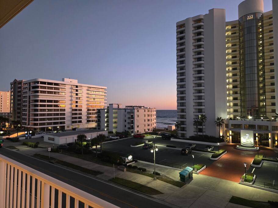 Welcome to a true penthouse experience in the heart of Daytona Beach Shores. This rare top-floor, half-floor corner condo (Unit 402) offers a level of privacy, space, and panoramic scenery that few beachfront properties can match. Spanning half of the entire top floor, this 2-bedroom, 2-bath residence is wrapped in glass and outdoor living space. The expansive wraparound deck delivers sweeping, unobstructed views of both the Atlantic Ocean and the Intracoastal Waterway, allowing you to enjoy spectacular sunrises in the morning and glowing sunsets in the evening — all from your own private retreat. Inside, the condo is bright, open, and breezy, with an inviting living and dining area designed to showcase the views. Large windows and sliding doors flood the space with natural light and bring the outdoors in. The fully equipped kitchen makes it easy to enjoy everything from casual breakfasts to relaxed dinners after a day at the beach. The primary bedroom features an ensuite bathroom and tranquil water views, while the guest bedroom offers comfortable accommodations ideal for family or friends. With no neighbors above and only one adjacent unit, this penthouse provides exceptional peace and privacy rarely found in beachfront condos. Located directly on S Atlantic Avenue, you’re just steps from the sand and minutes from local dining, shopping, golf, parks, and all that Daytona Beach Shores has to offer — while still enjoying a quieter, more upscale stretch of coastline. This is not just a condo — it’s a front-row seat to coastal living.