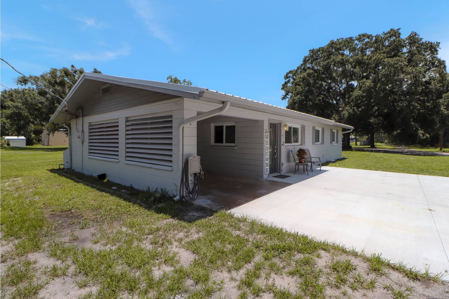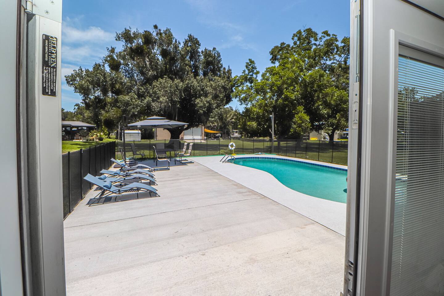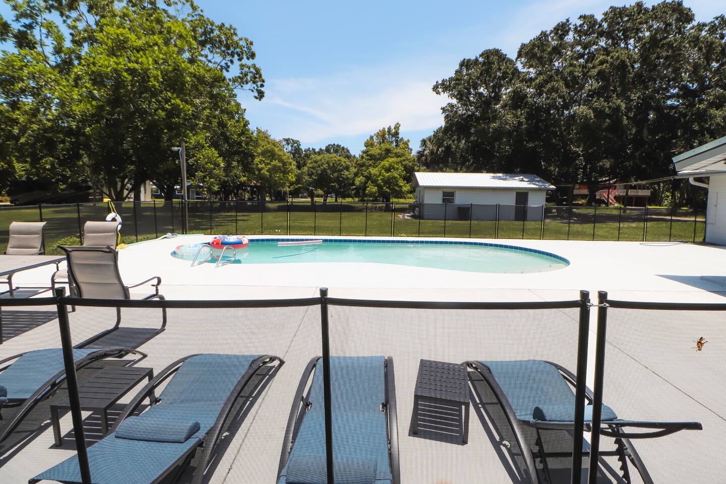 Inside, you'll find a fully equipped kitchen, comfortable bedrooms, and all the essentials to make your stay easy and enjoyable. The space: Pet Friendly Pond is shared with neighbors bur rarely used. 3 bedrooms, 2 full bathrooms—sleeps 6 Private pool with loungers & seating Beautiful stocked pond with pier and gazebo Fully equipped kitchen, washer/dryer, Wi-Fi RV-friendly: ample parking + carport This property is located just a short drive from River Breeze Park and boat ramp—bring your boat, kayaks, or paddleboards! Oak Hill is a quiet town but close to everything—20 minutes to New Smyrna Beach, and near Canaveral National Seashore.