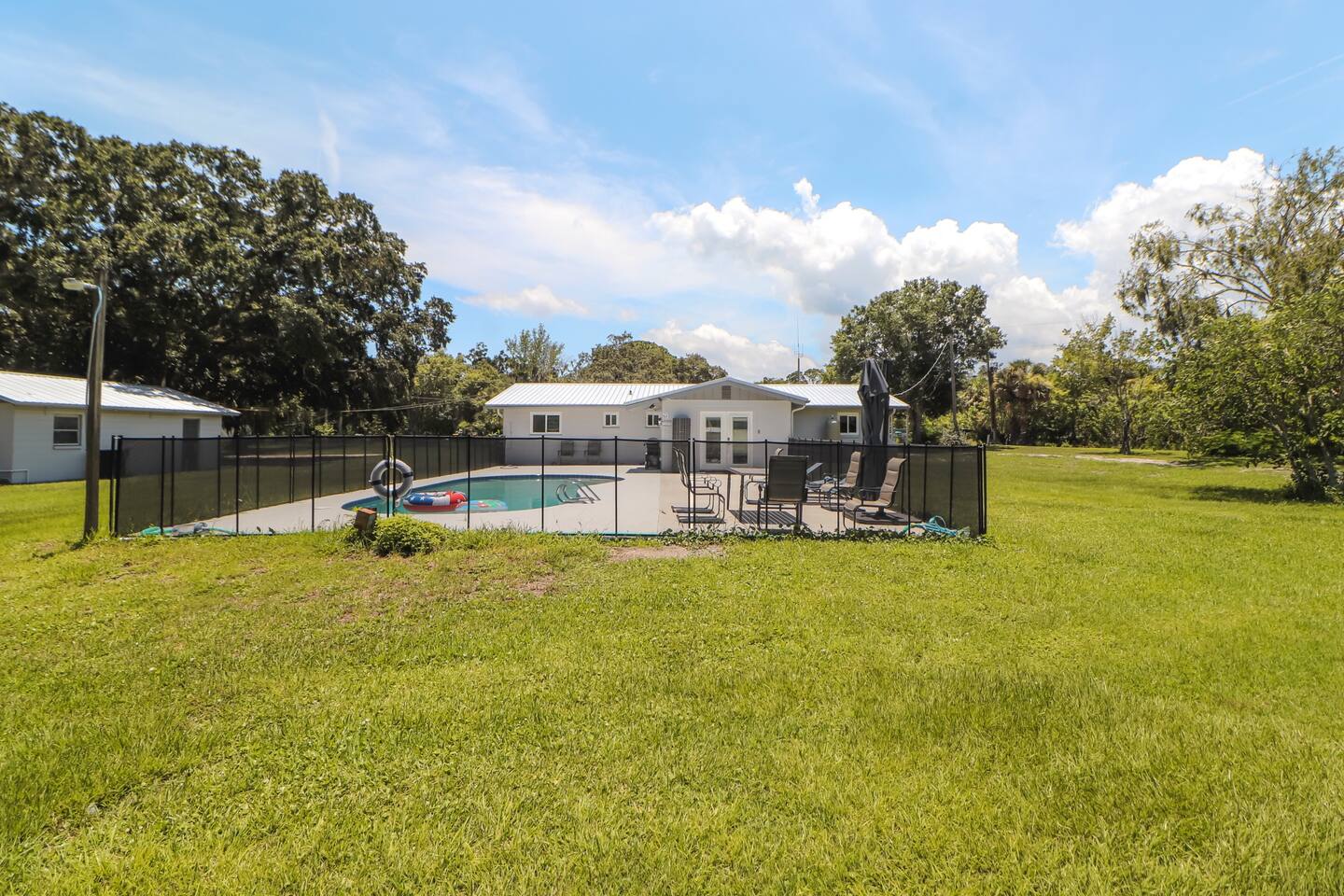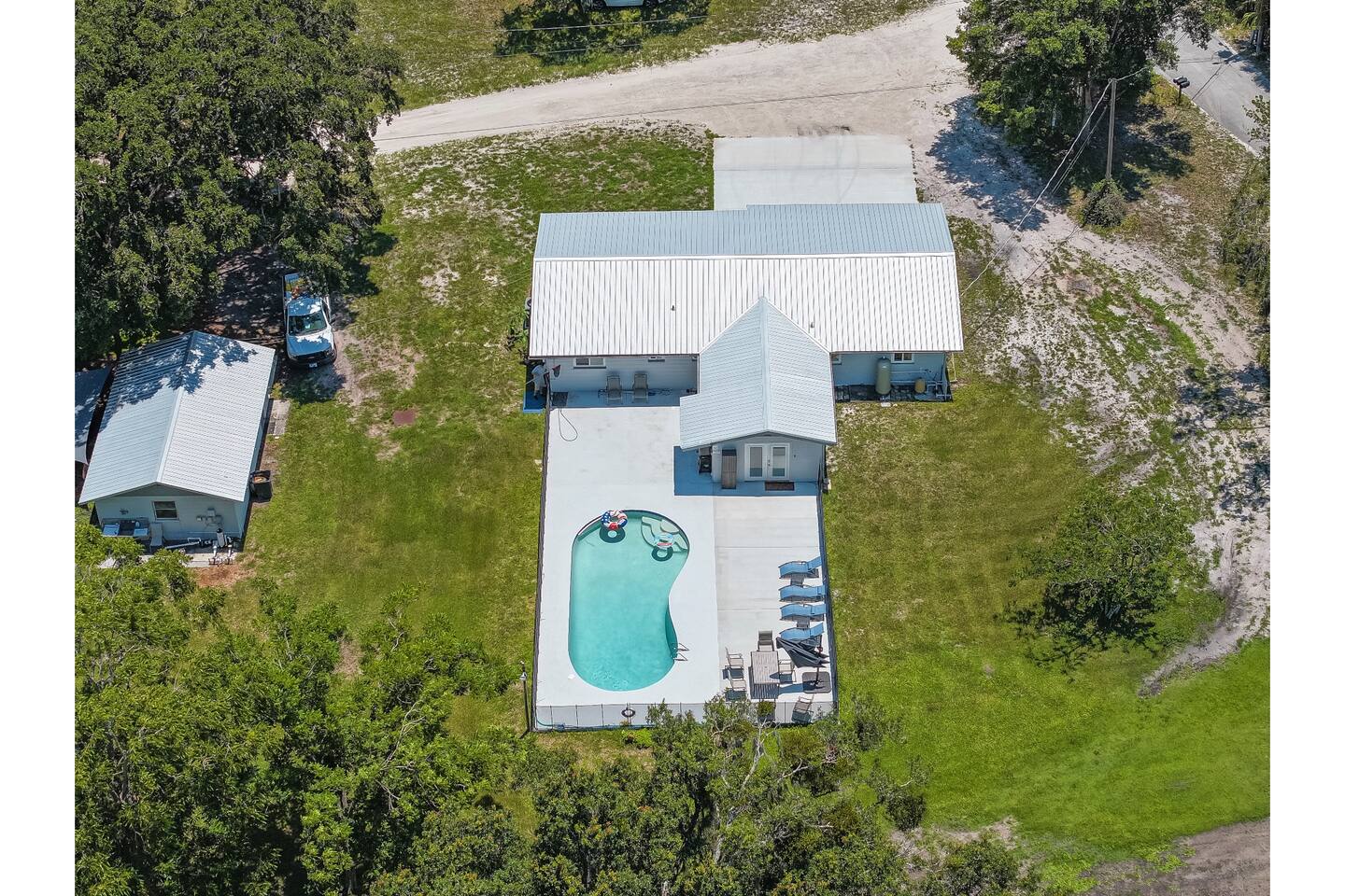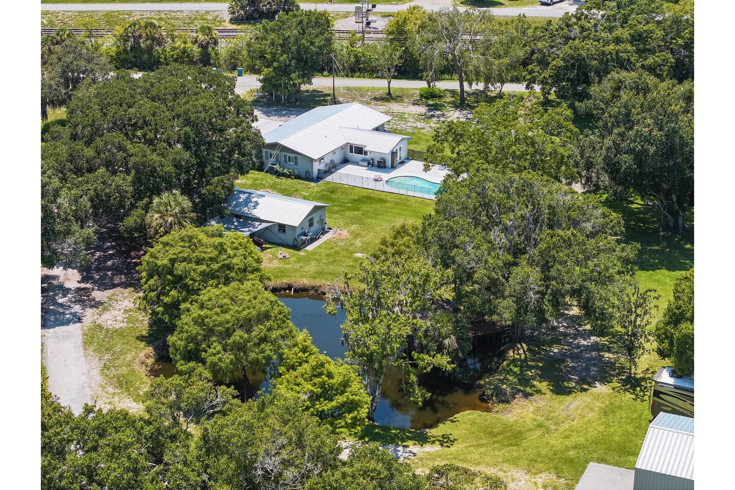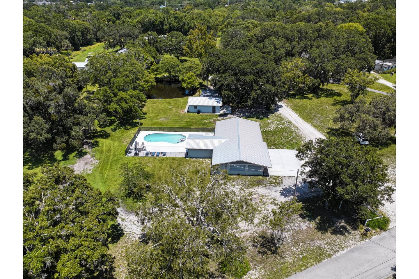 You’ll have full private access to the entire property, including the home, pool, pond, pier, gazebo, and all parking areas.