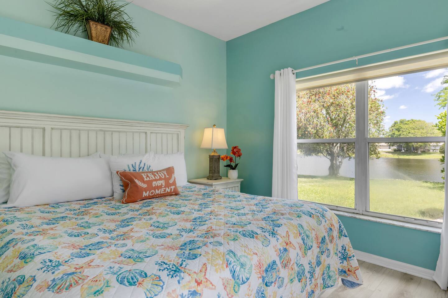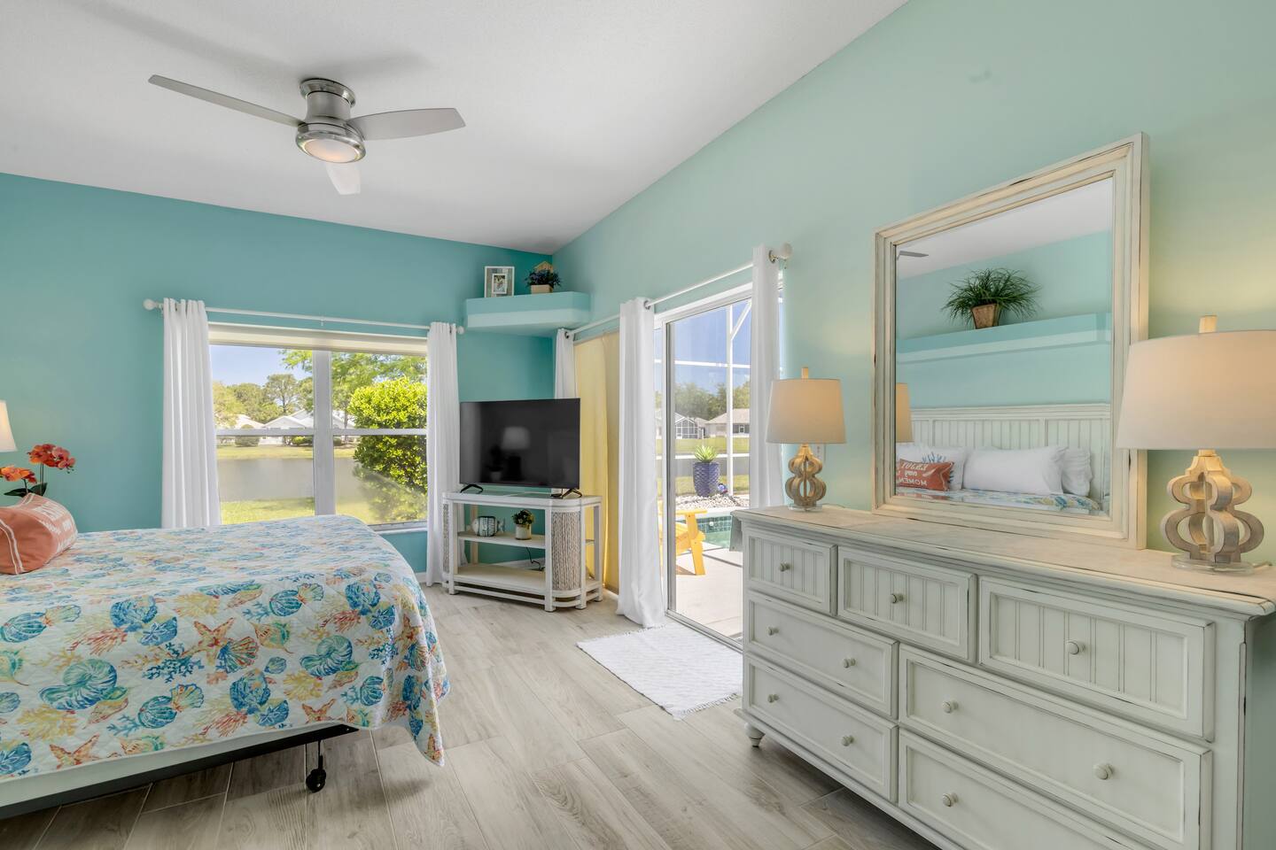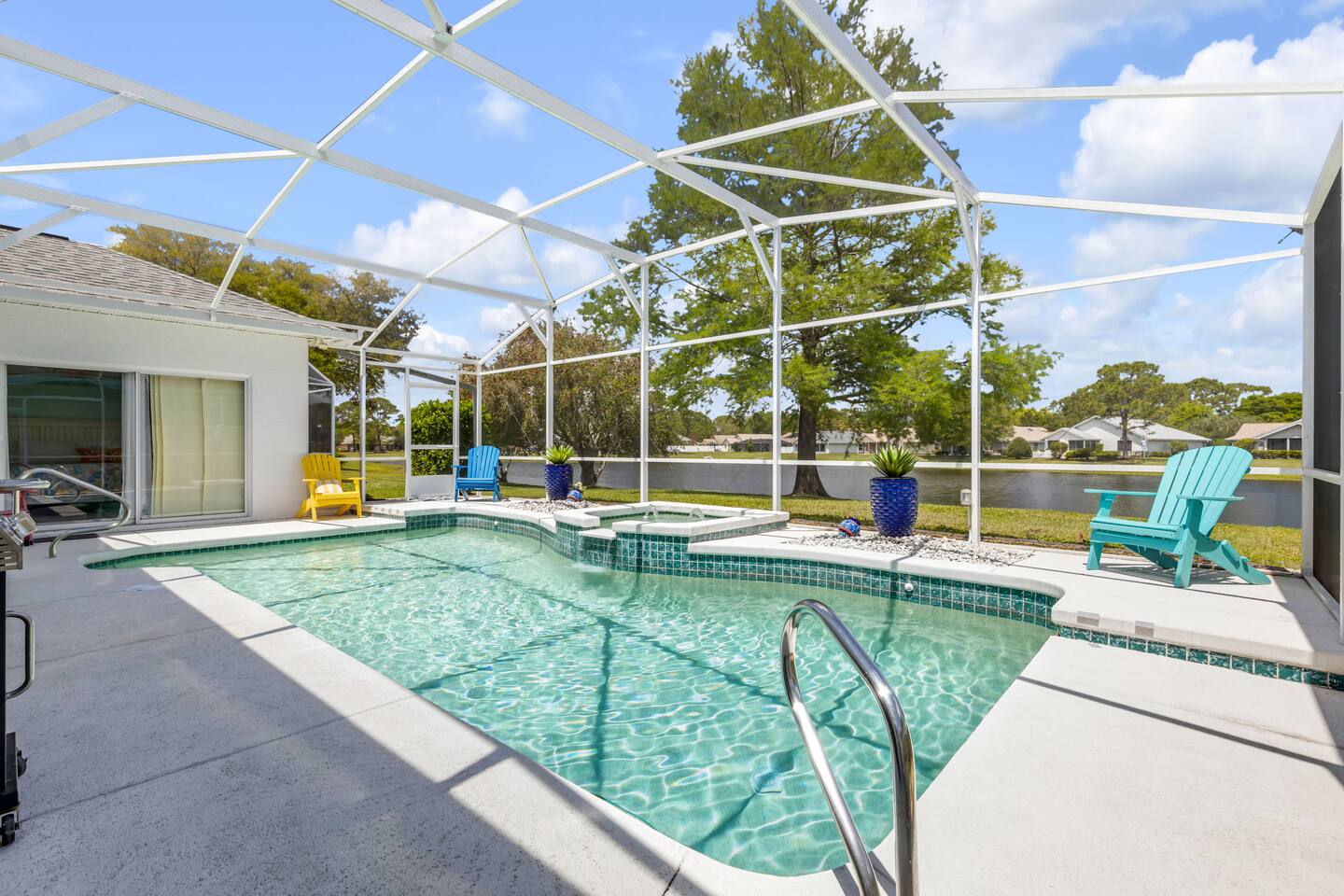 Family-friendly retreat with a heated pool, spacious outdoor living, and peaceful pond views. Enjoy grilling and relaxing in the private backyard. Sleeps 6 comfortably and is pet-friendly. Fully equipped kitchen makes meals easy. Perfect for a relaxing getaway just 20 minutes from the beach.