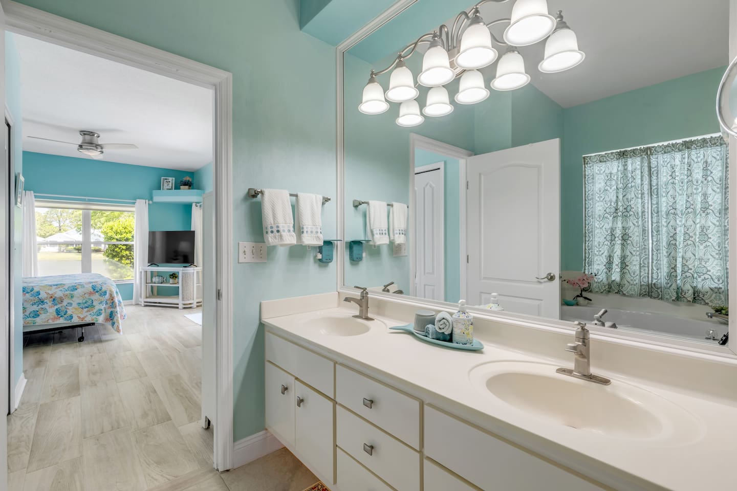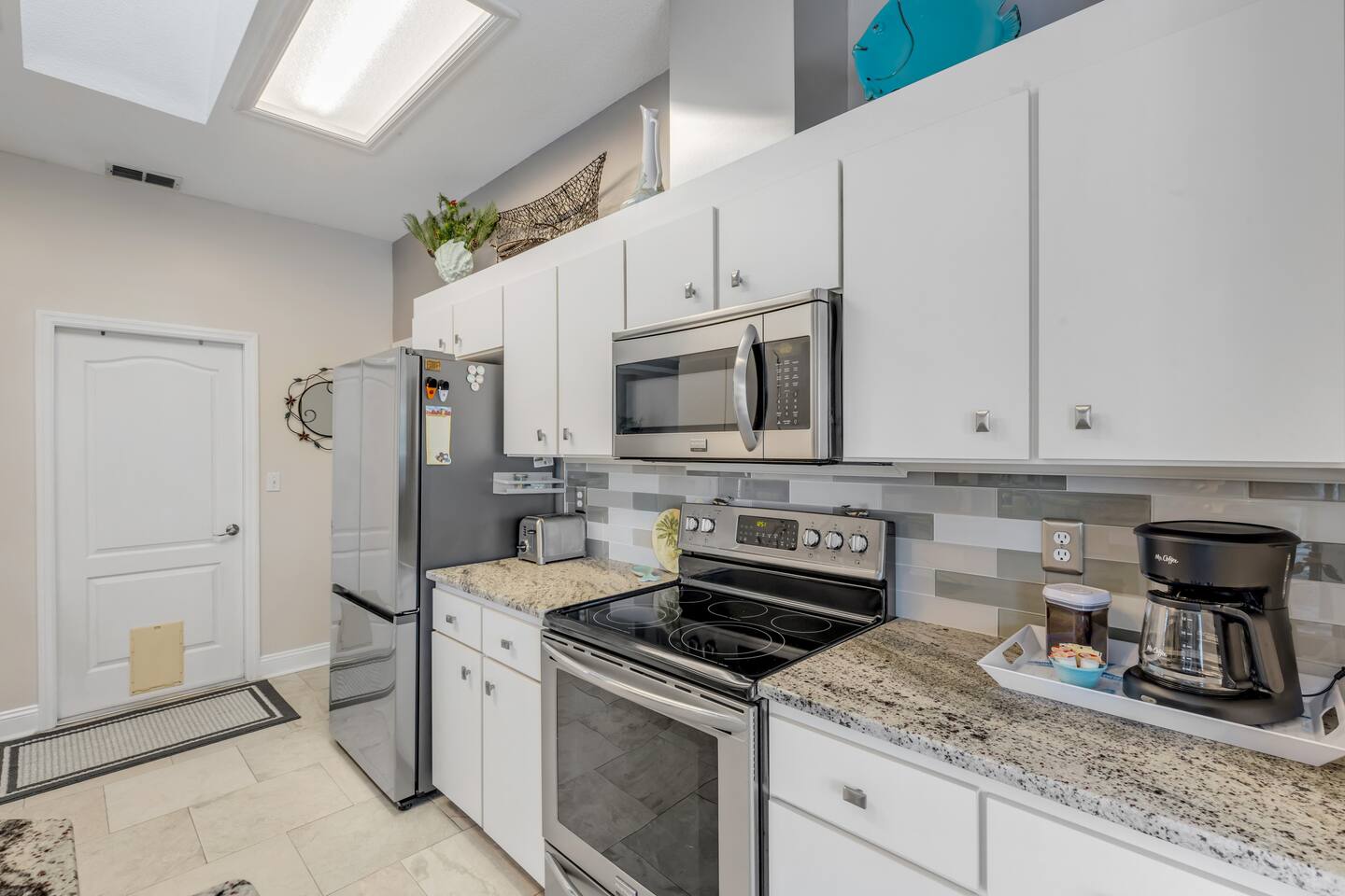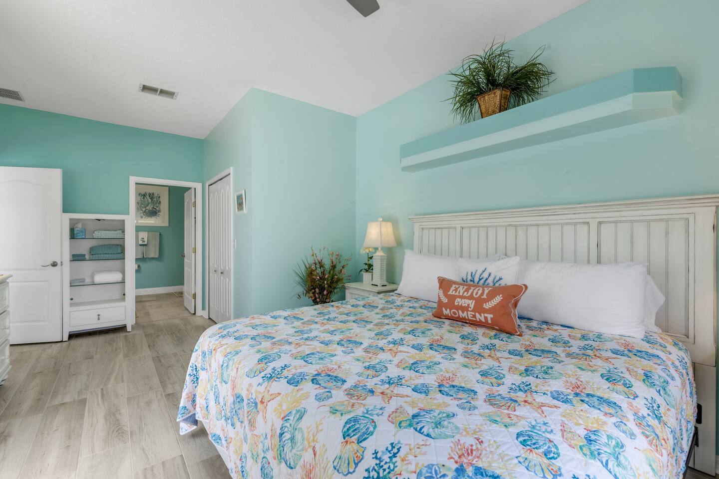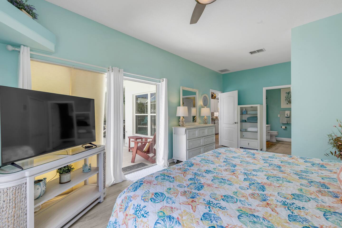 Family-friendly retreat with a heated pool, spacious outdoor living, and peaceful pond views. Enjoy grilling and relaxing in the private backyard. Sleeps 6 comfortably and is pet-friendly. Fully equipped kitchen makes meals easy. Perfect for a relaxing getaway just 20 minutes from the beach.