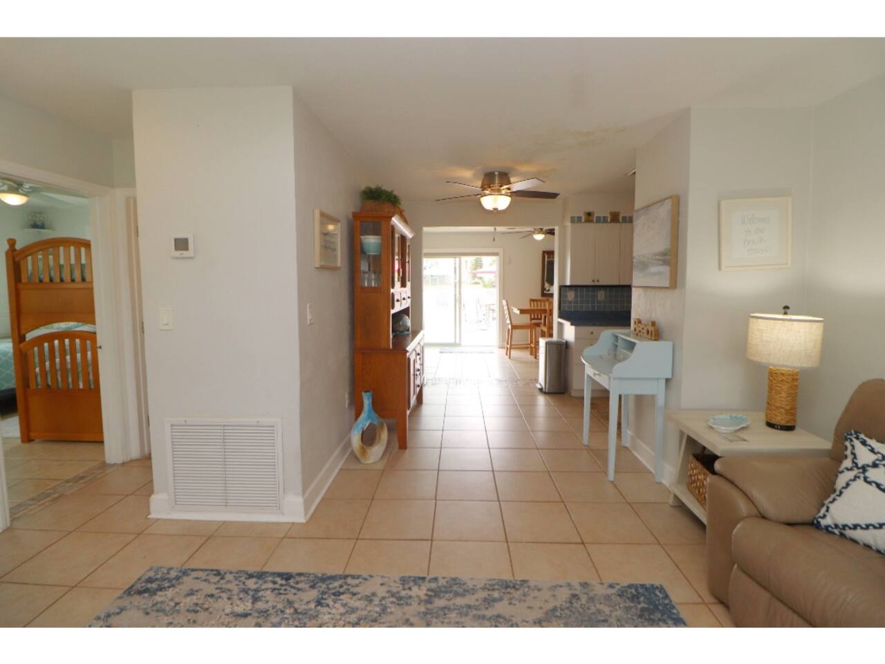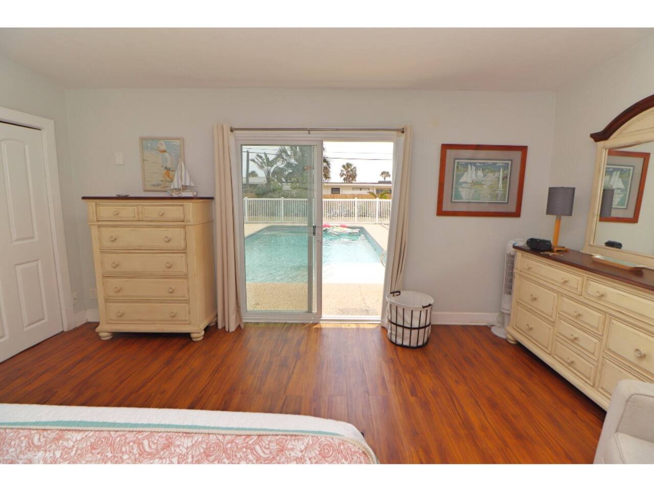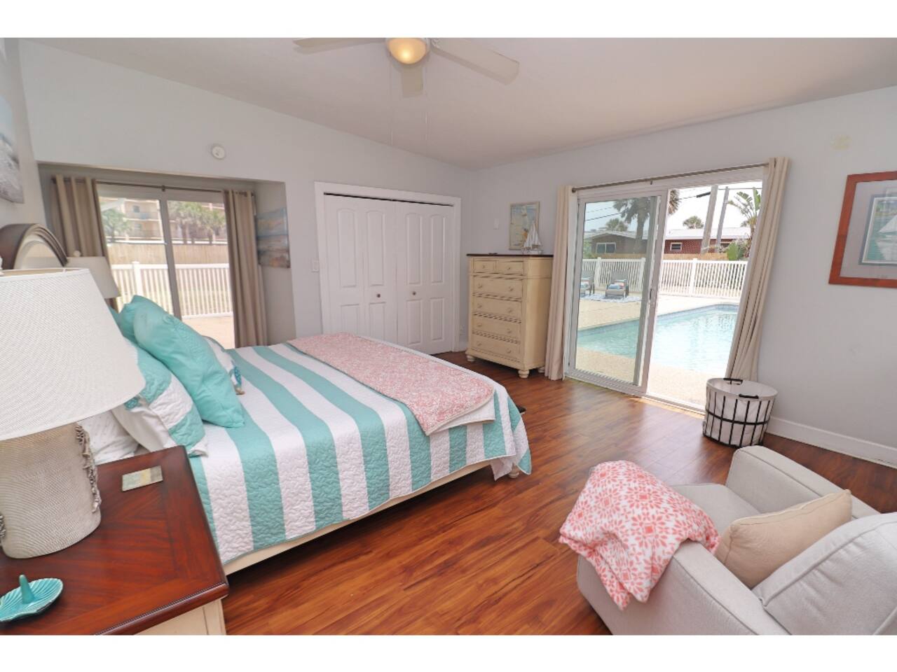 This comfortable beachside retreat is designed with families and groups in mind, offering plenty of room to relax and gather together. The home features 6 total beds: a king bed in the main bedroom with pool views through the sliding doors, plus five twin beds (including a bunk) spread across two guest rooms — perfect for kids or extra guests. The open layout includes multiple common areas for family time, a fully equipped kitchen for home-cooked meals, and a washer and dryer for added convenience. Fresh linens and essentials are provided to make your stay worry-free. Step outside to the fully fenced backyard oasis with a sparkling pool — ideal for swimming, grilling, or lounging in the Florida sunshine. When you’re ready for the sand and surf, it’s just a very short walk to the beach with public access. This home has everything you need for a relaxing, fun-filled Ormond Beach getaway!