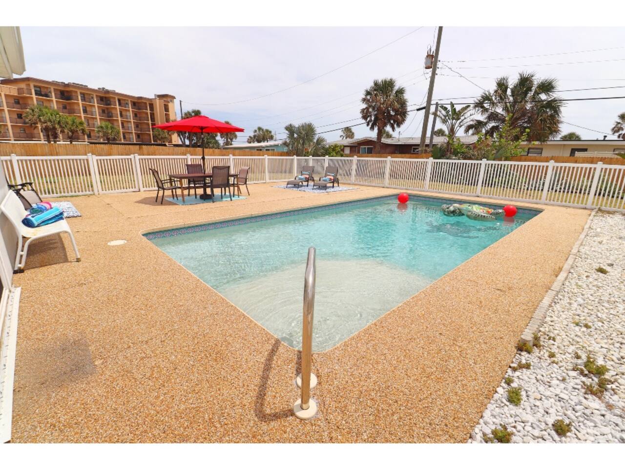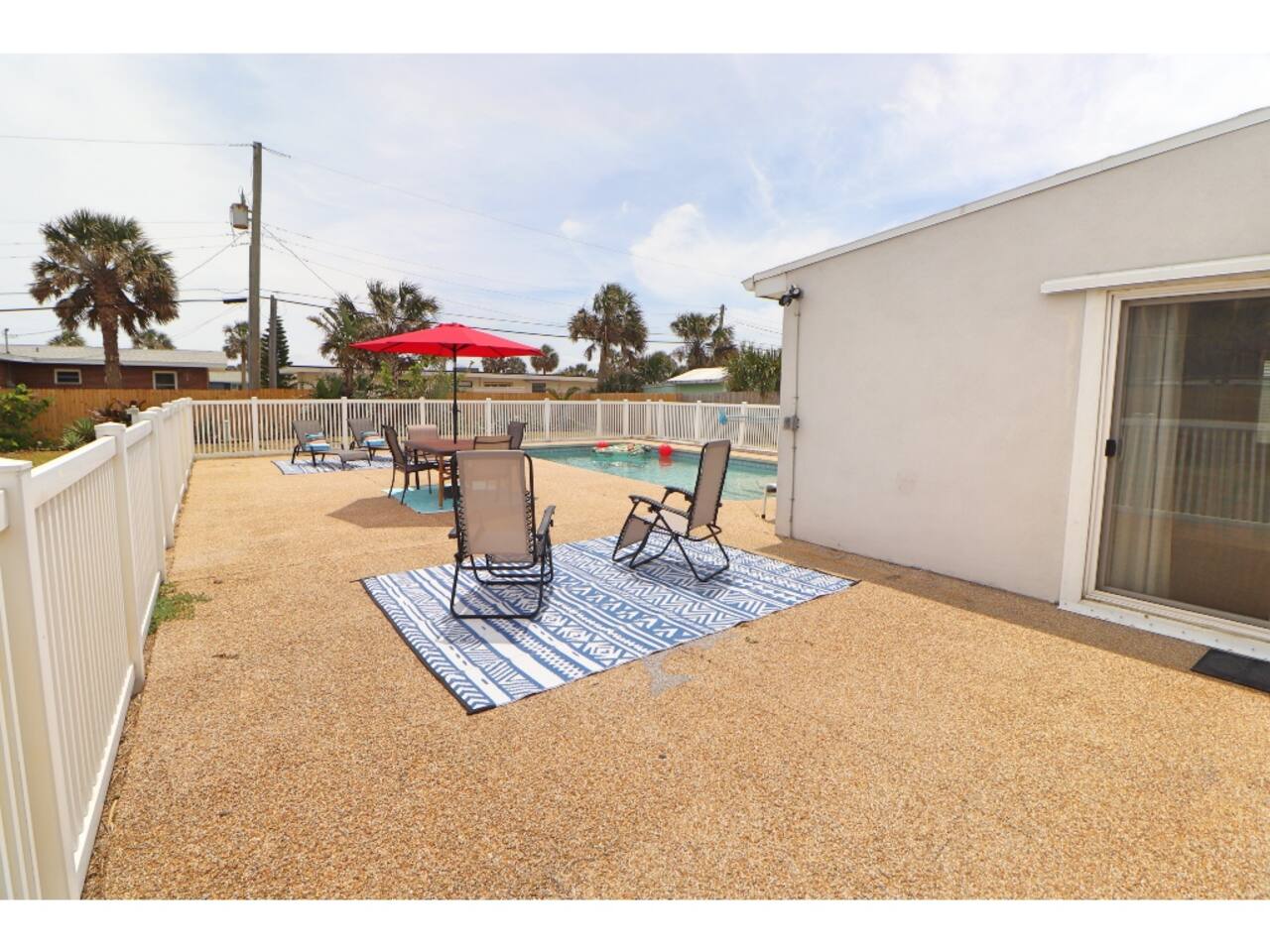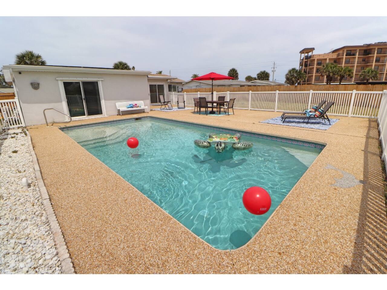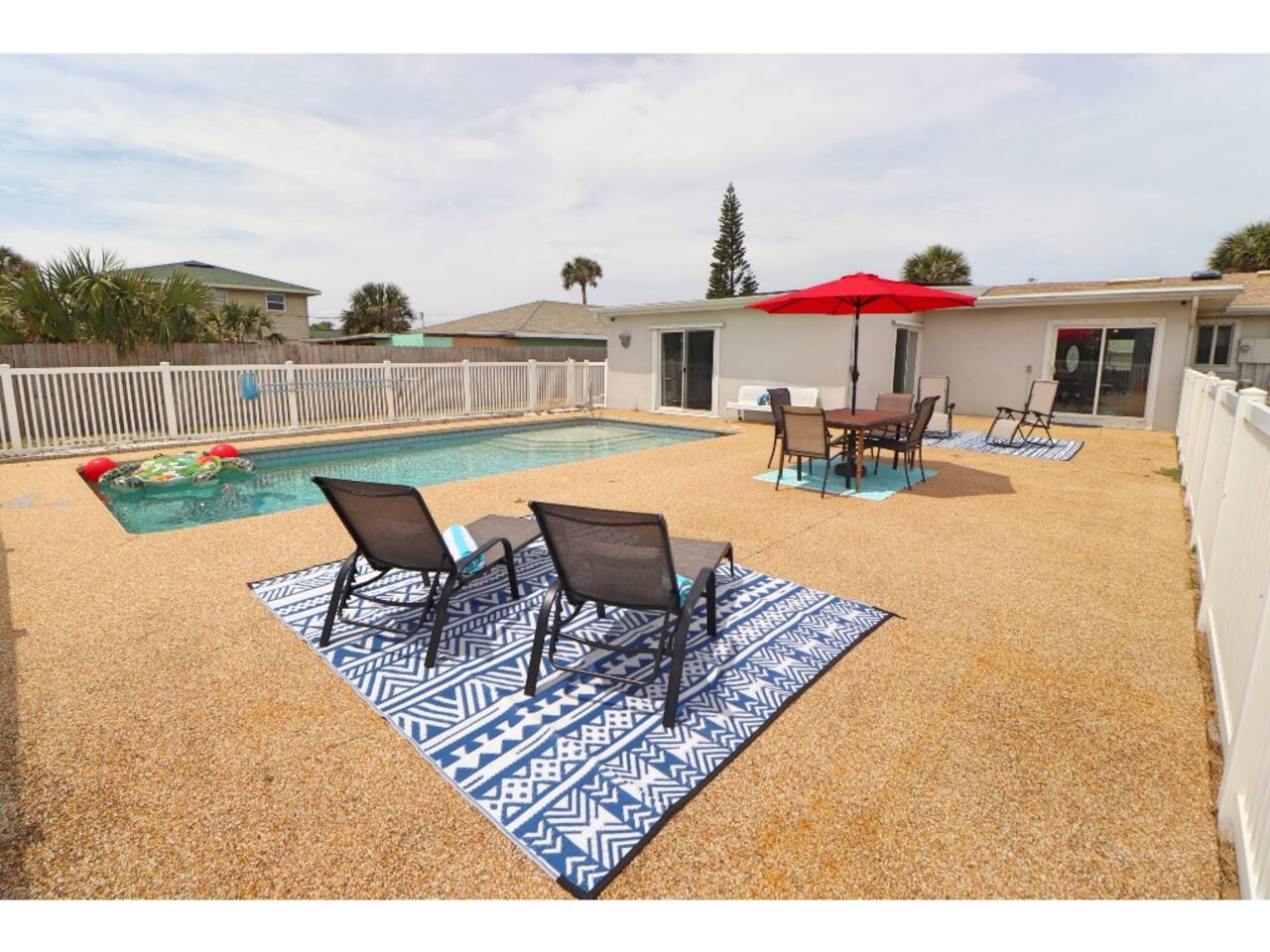 Beachside Pool Home – Walk to the Ocean! 3 bedrooms, 2 bathrooms – perfect for families & groups Private pool + fenced backyard oasis Fully stocked kitchen, smart TVs & fast Wi-Fi Grill & outdoor seating for BBQ nights Beach gear included: chairs, umbrella & more Driveway parking + easy walk to the beach Close to Ormond Beach restaurants, shops & scenic A1A