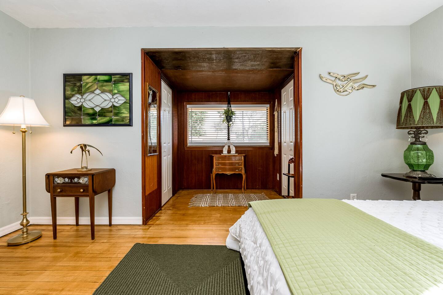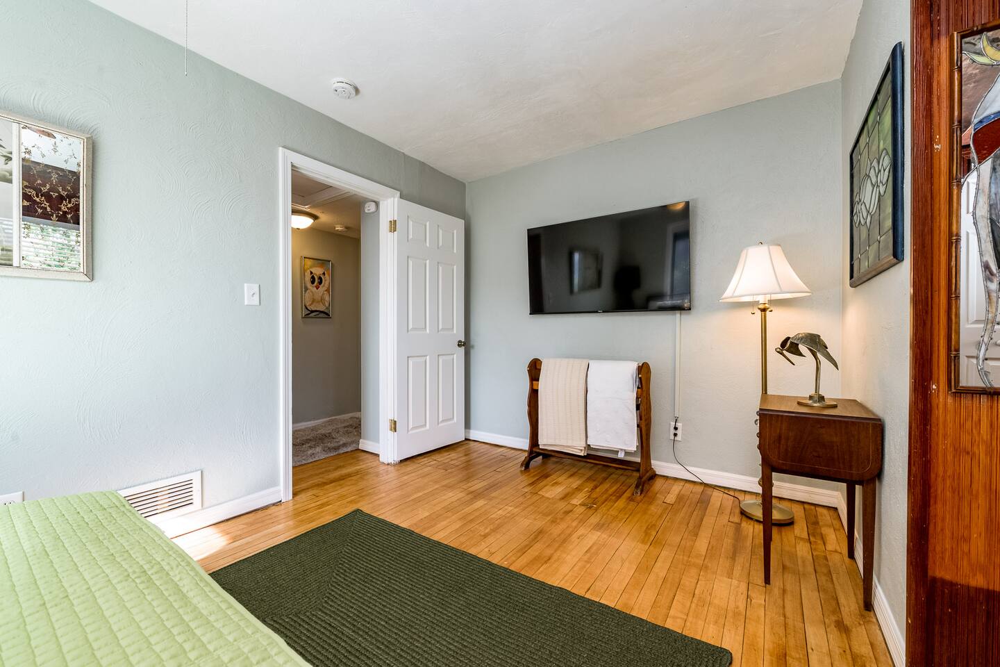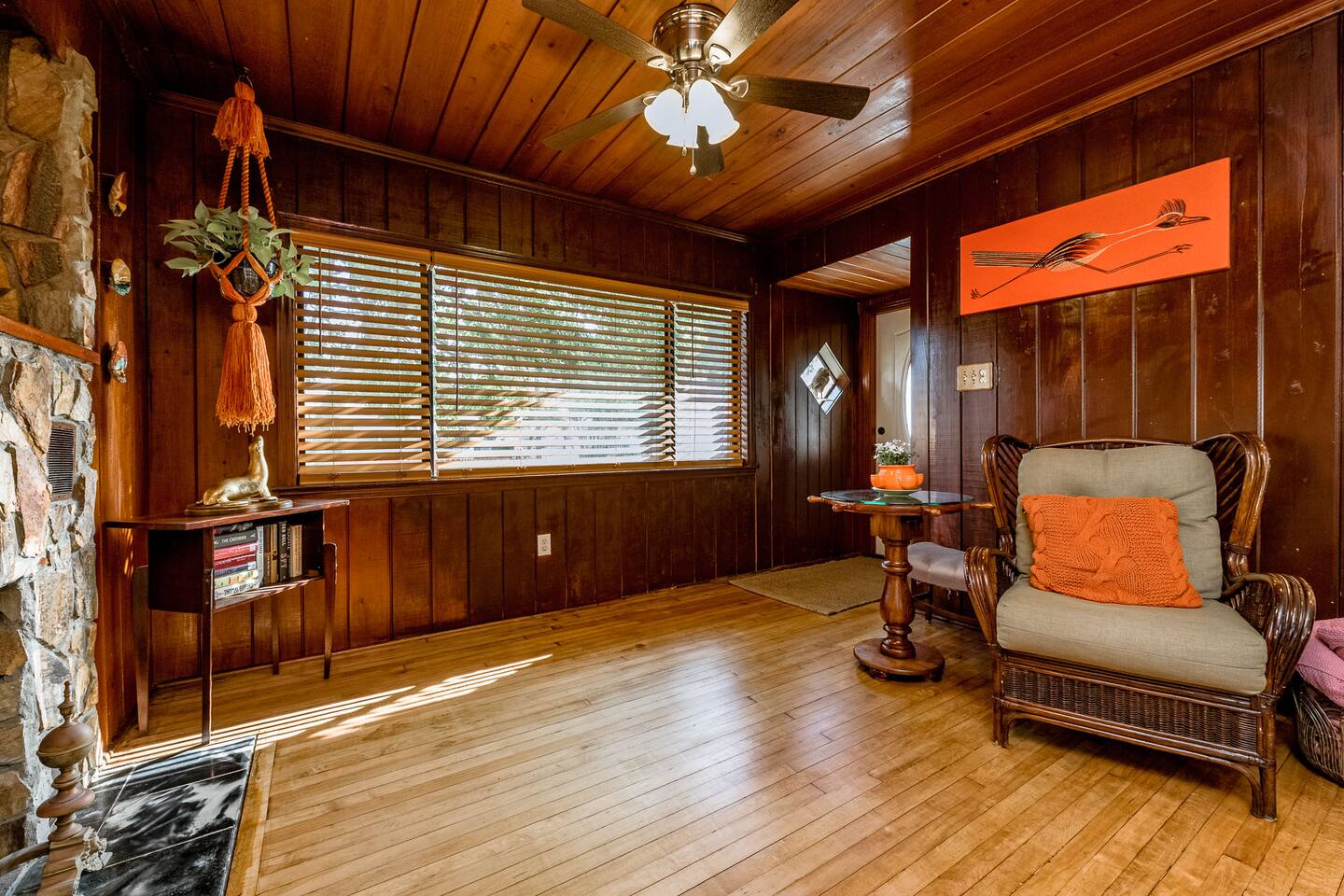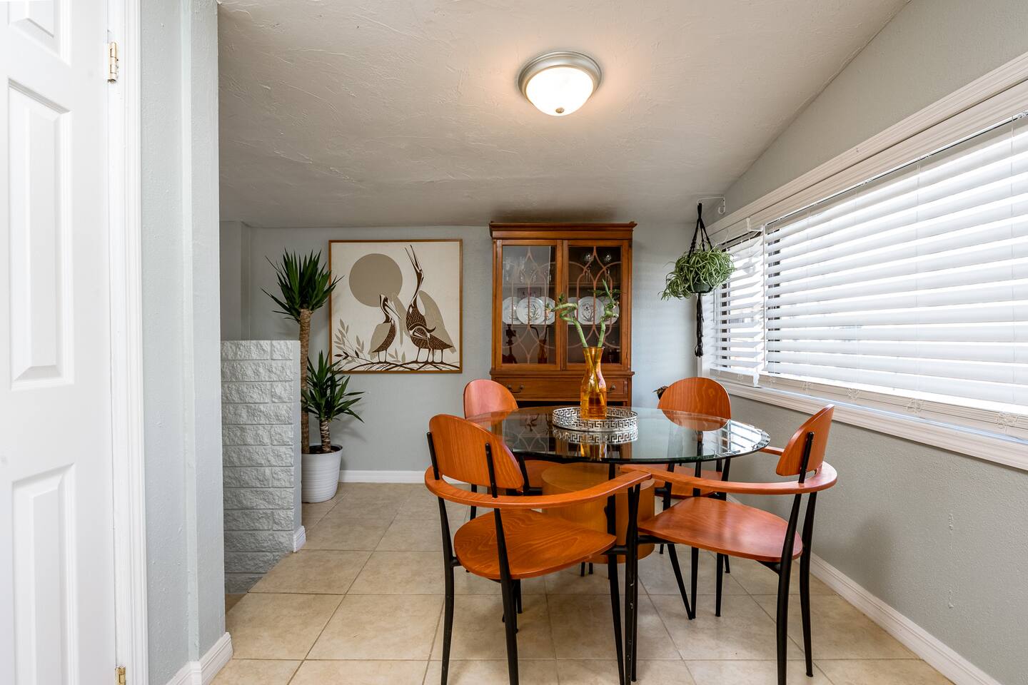 This charming home is a two bedroom, two living room one bath residential house located at the west end of the famous Seabreeze Bridge. There is a large lot that is completely fenced in with wide double gates to bring your car(s), boat, motorcycles, etc, through and park under a double carport. The house has been updated in 2021 and 2022 with new AC, a new HVAC handler, and a tankless water heater. The original hardwood floors were refurbished in 2022. We've decorated the house with many original Florida mid-century modern art and furniture pieces to try and pay homage to the house's age and design. The master bedroom has two closets (his and hers), a 55" TV and a new queen bed. The guest room has one closet, a new queen bed, and a 50" TV. There is both a formal living room and a family fun room. Both have 65" TVs! The kitchen has an attached dining area that seats four. Outside, there is a picnic table and a classic picnic/park charcoal grill all lit at night by beautiful string lights. Hi Speed WiFi from Spectrum allows you to watch all your streaming shows. Super fast internet, and we get 5G here.