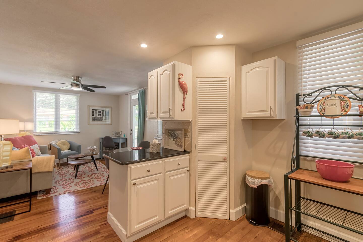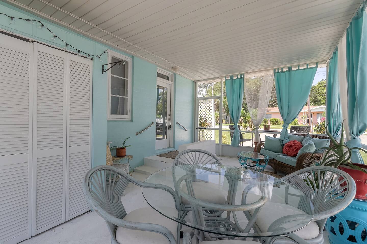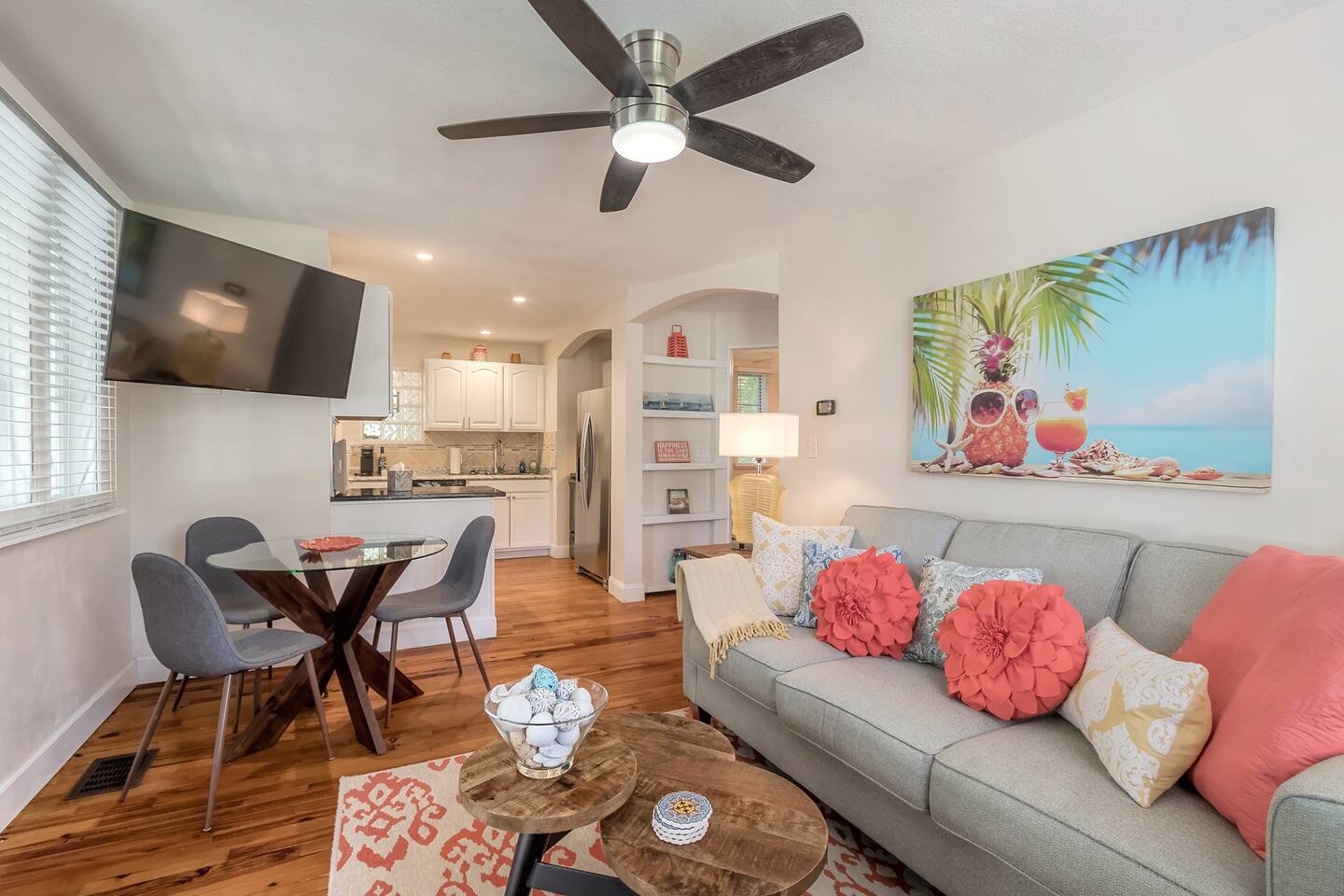 Charming bungalow featuring a delightful outdoor lanai, and fully fenced in yard! Kitchen amenities encompass essentials and a high-performance blender, dishwasher, Keurig, French press, coffee grinder, and milk frother. Also, find a wine opener, garlic press, and lime/lemon juicer. Abundant extras like coffee cream, olive oil, spices, and more!
