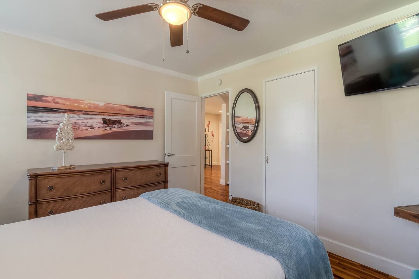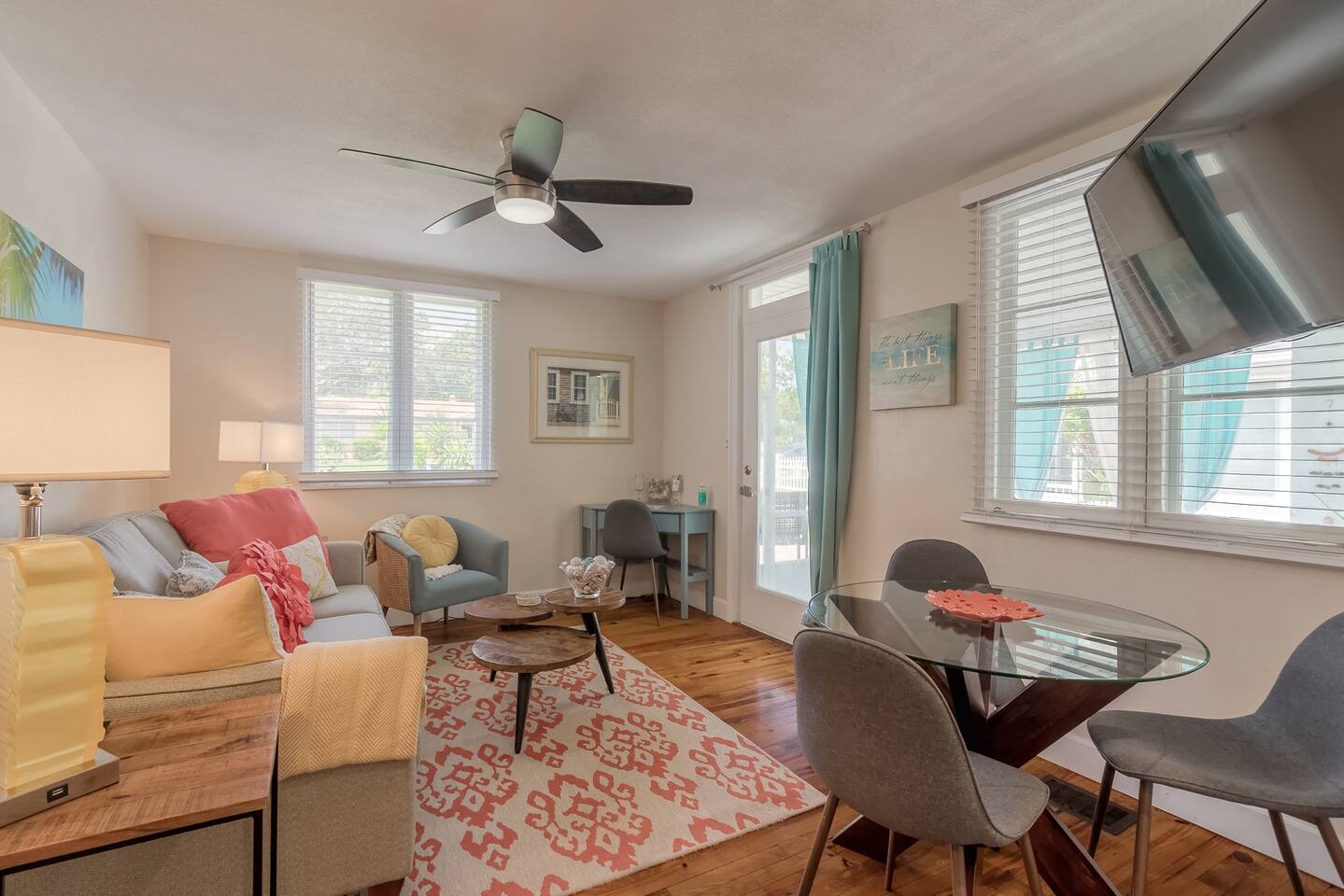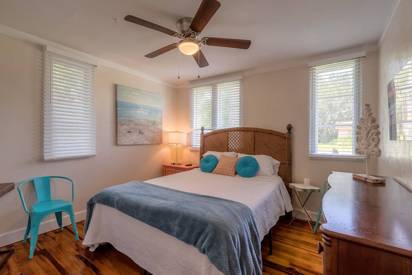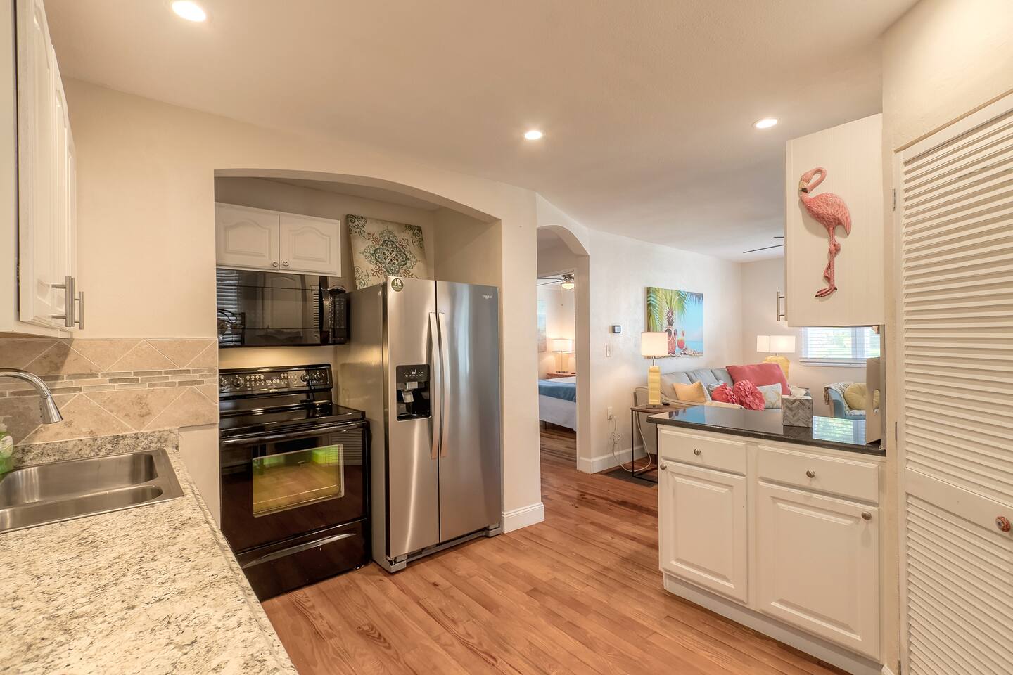 Charming bungalow featuring a delightful outdoor lanai, and fully fenced in yard! Kitchen amenities encompass essentials and a high-performance blender, dishwasher, Keurig, French press, coffee grinder, and milk frother. Also, find a wine opener, garlic press, and lime/lemon juicer. Abundant extras like coffee cream, olive oil, spices, and more!