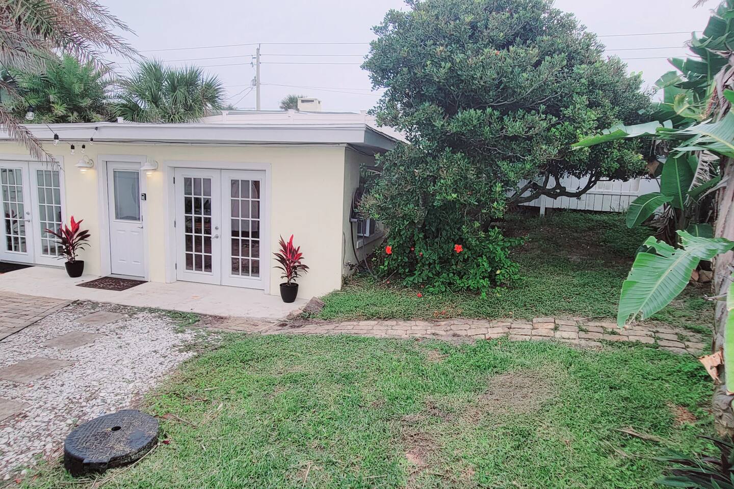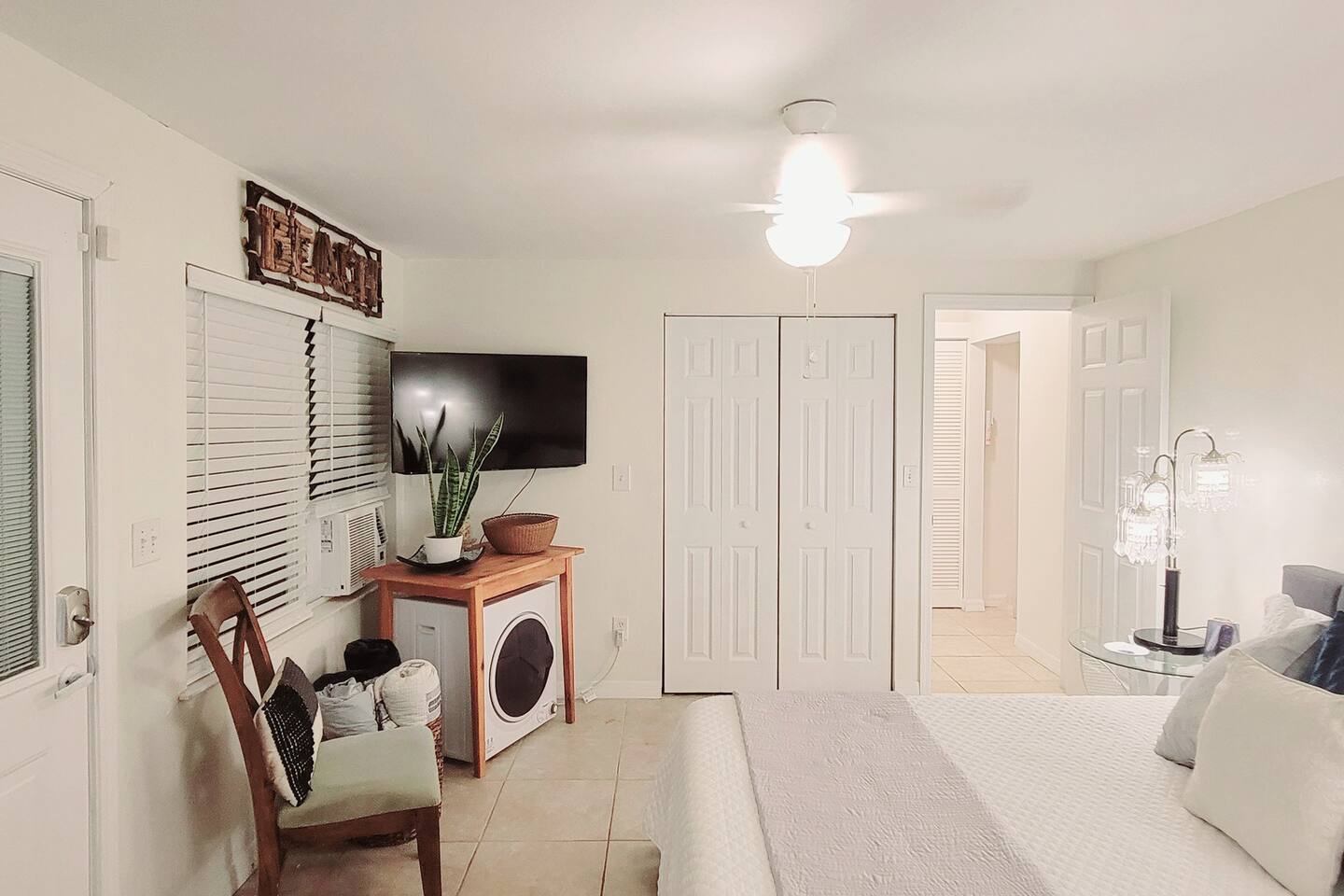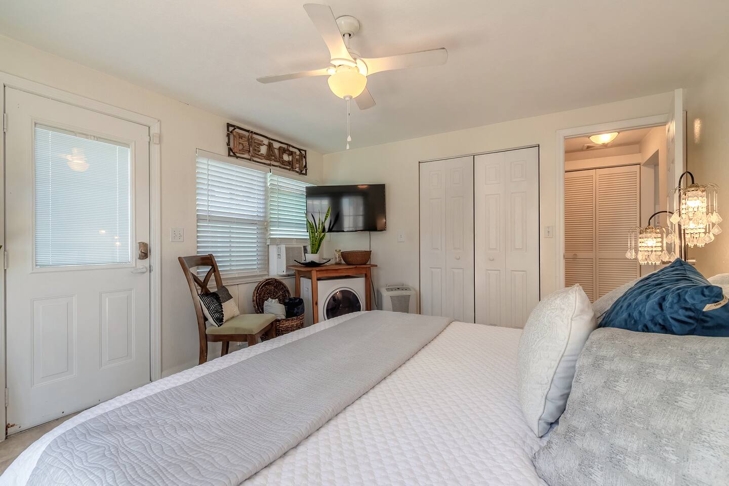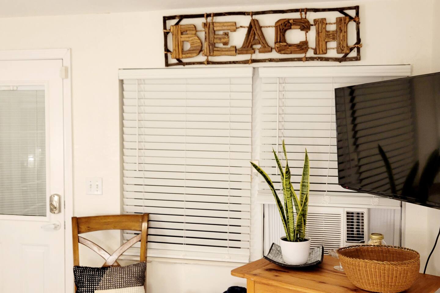 This roomy cottage will sleep two adults in the king sized bed. We can also provide a pack n play so you can bring the wee one. Your pup or meow meow is also welcome- fully fenced in private yard. We've converted this cottage into a great vacation rental with beach access. The space is very roomy and easy on the eyes with white walls and beautiful art by several local talents. This property is a separate unit from a main house with its own large yard featuring Hibiscus, palms, Giant Birds of Paradise and many other tropical delights. When you walk out of the driveway, there is an undeveloped (no hotels) beach just yards away. Feel free to use the beach wagon, folding chairs and beach towels during your visit. Pets are children are welcome. Please let us know what kind of pup you are bringing :). **Important to note- this little cottage has a small efficiency washing machine and no dryer. There is a retractable clothes line for drying your clothes though.