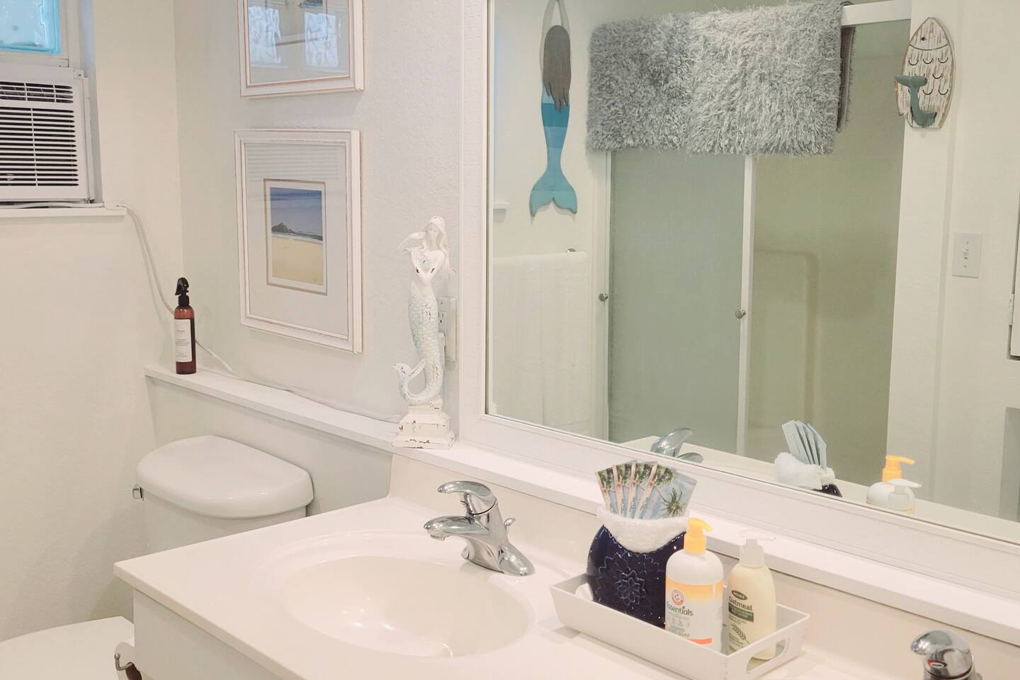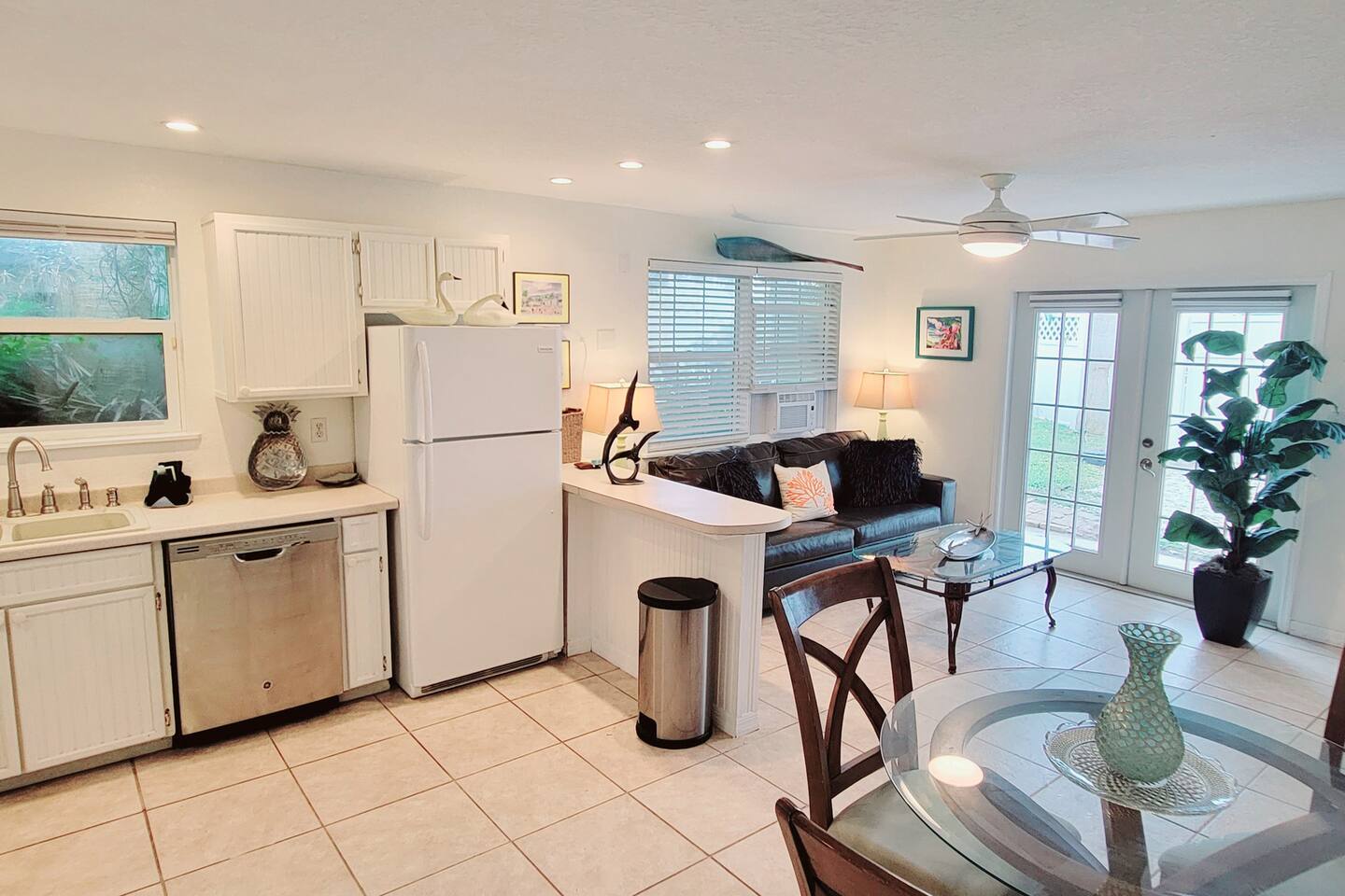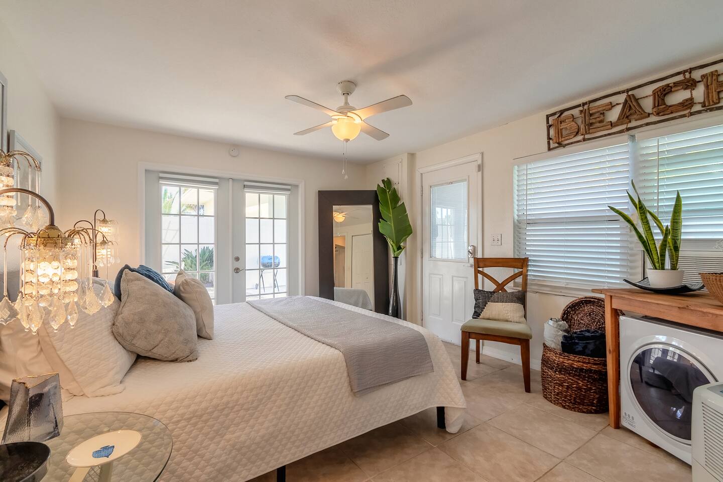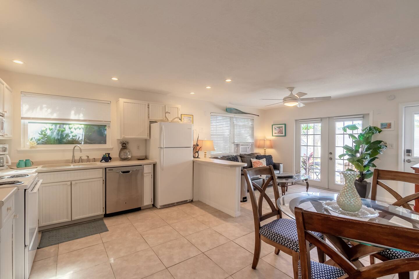This roomy cottage will sleep two adults in the king sized bed. We can also provide a pack n play so you can bring the wee one. Your pup or meow meow is also welcome- fully fenced in private yard. We've converted this cottage into a great vacation rental with beach access. The space is very roomy and easy on the eyes with white walls and beautiful art by several local talents. This property is a separate unit from a main house with its own large yard featuring Hibiscus, palms, Giant Birds of Paradise and many other tropical delights. When you walk out of the driveway, there is an undeveloped (no hotels) beach just yards away. Feel free to use the beach wagon, folding chairs and beach towels during your visit. Pets are children are welcome. Please let us know what kind of pup you are bringing :). **Important to note- this little cottage has a small efficiency washing machine and no dryer. There is a retractable clothes line for drying your clothes though.