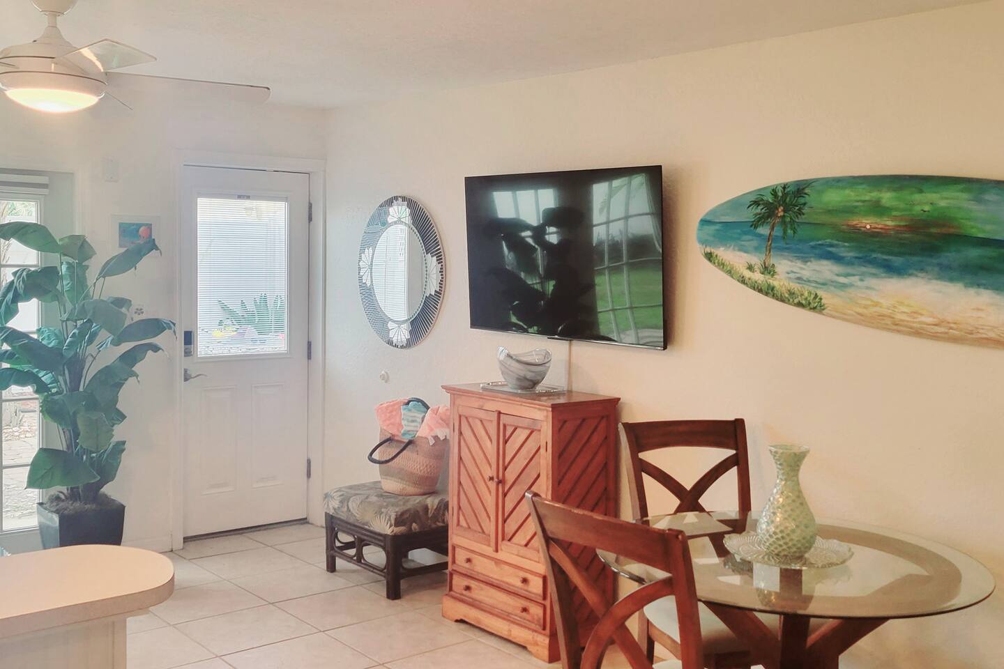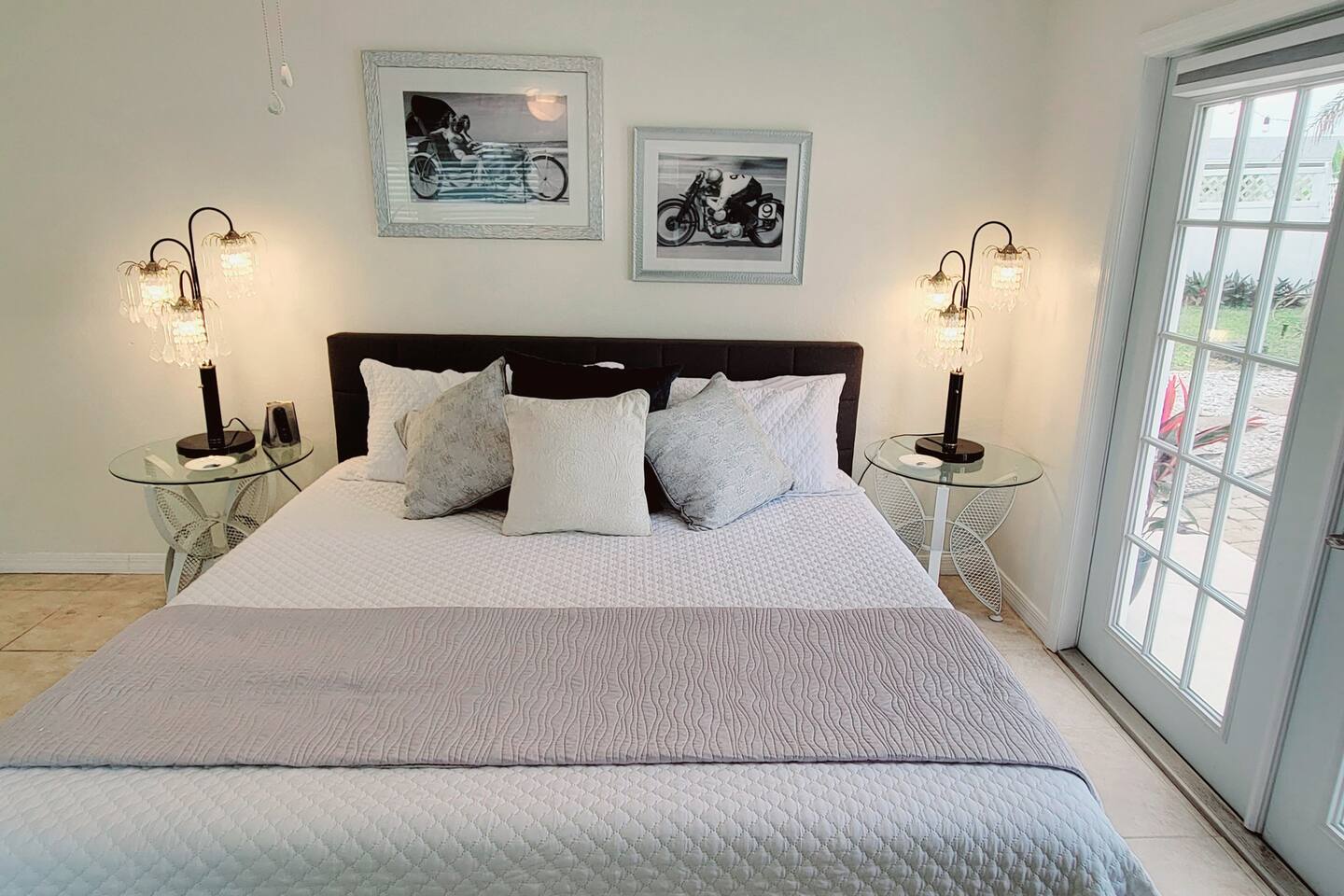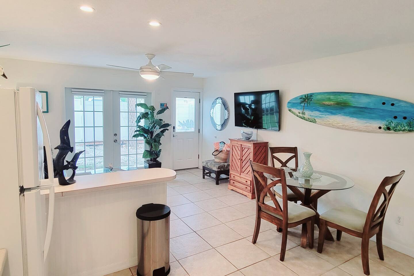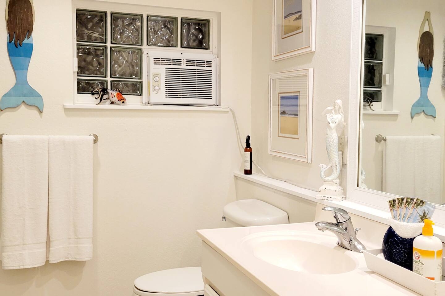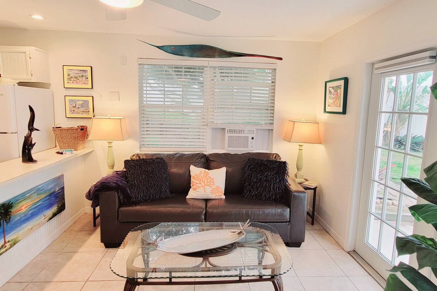 This roomy cottage will sleep two adults in the king sized bed. We can also provide a pack n play so you can bring the wee one. Your pup or meow meow is also welcome- fully fenced in private yard. We've converted this cottage into a great vacation rental with beach access. The space is very roomy and easy on the eyes with white walls and beautiful art by several local talents. This property is a separate unit from a main house with its own large yard featuring Hibiscus, palms, Giant Birds of Paradise and many other tropical delights. When you walk out of the driveway, there is an undeveloped (no hotels) beach just yards away. Feel free to use the beach wagon, folding chairs and beach towels during your visit. Pets are children are welcome. Please let us know what kind of pup you are bringing :). **Important to note- this little cottage has a small efficiency washing machine and no dryer. There is a retractable clothes line for drying your clothes though.