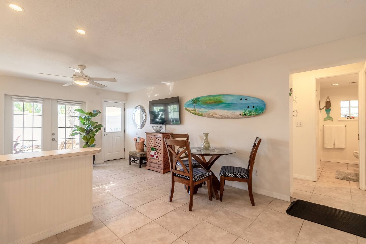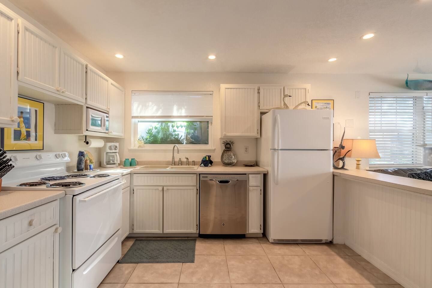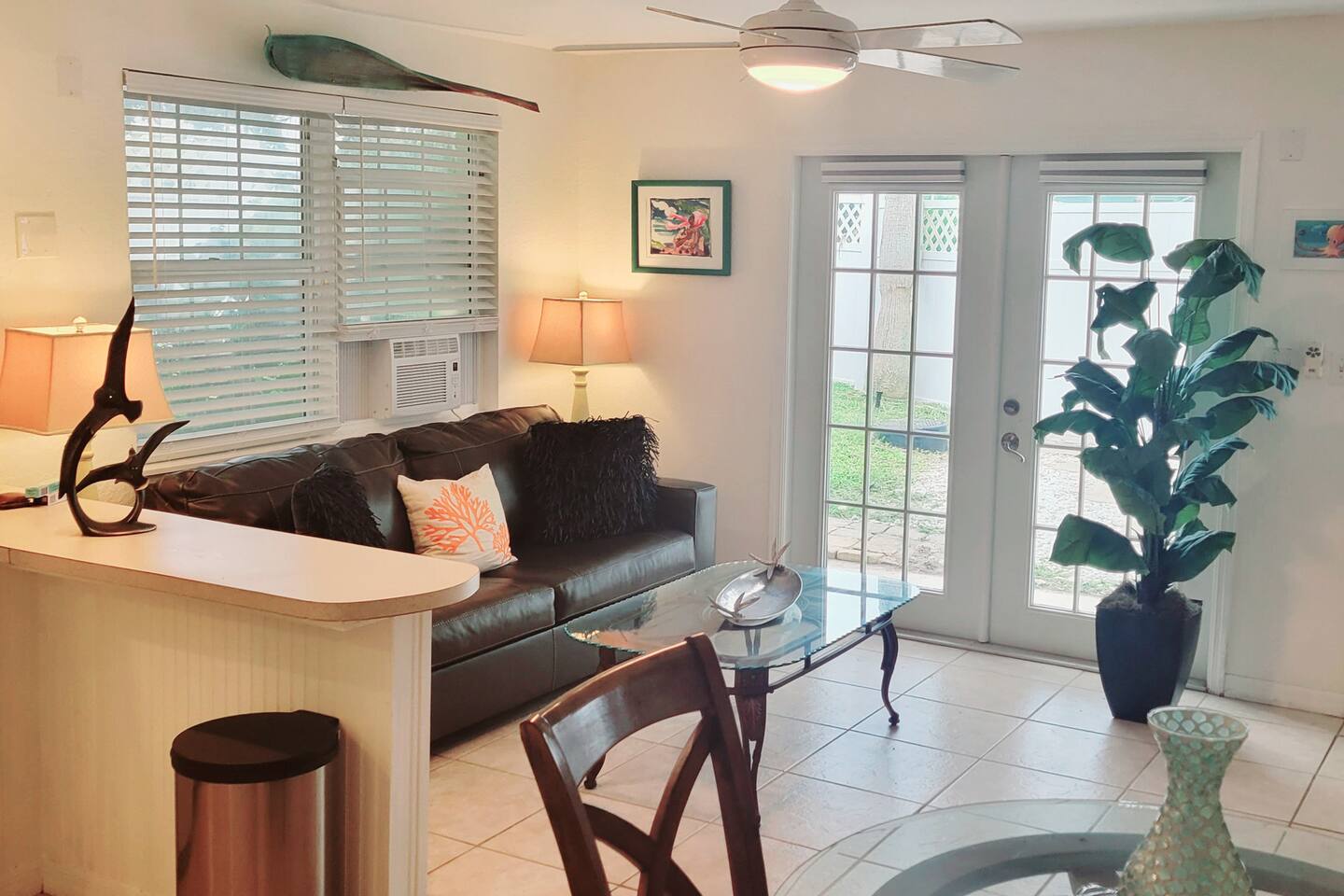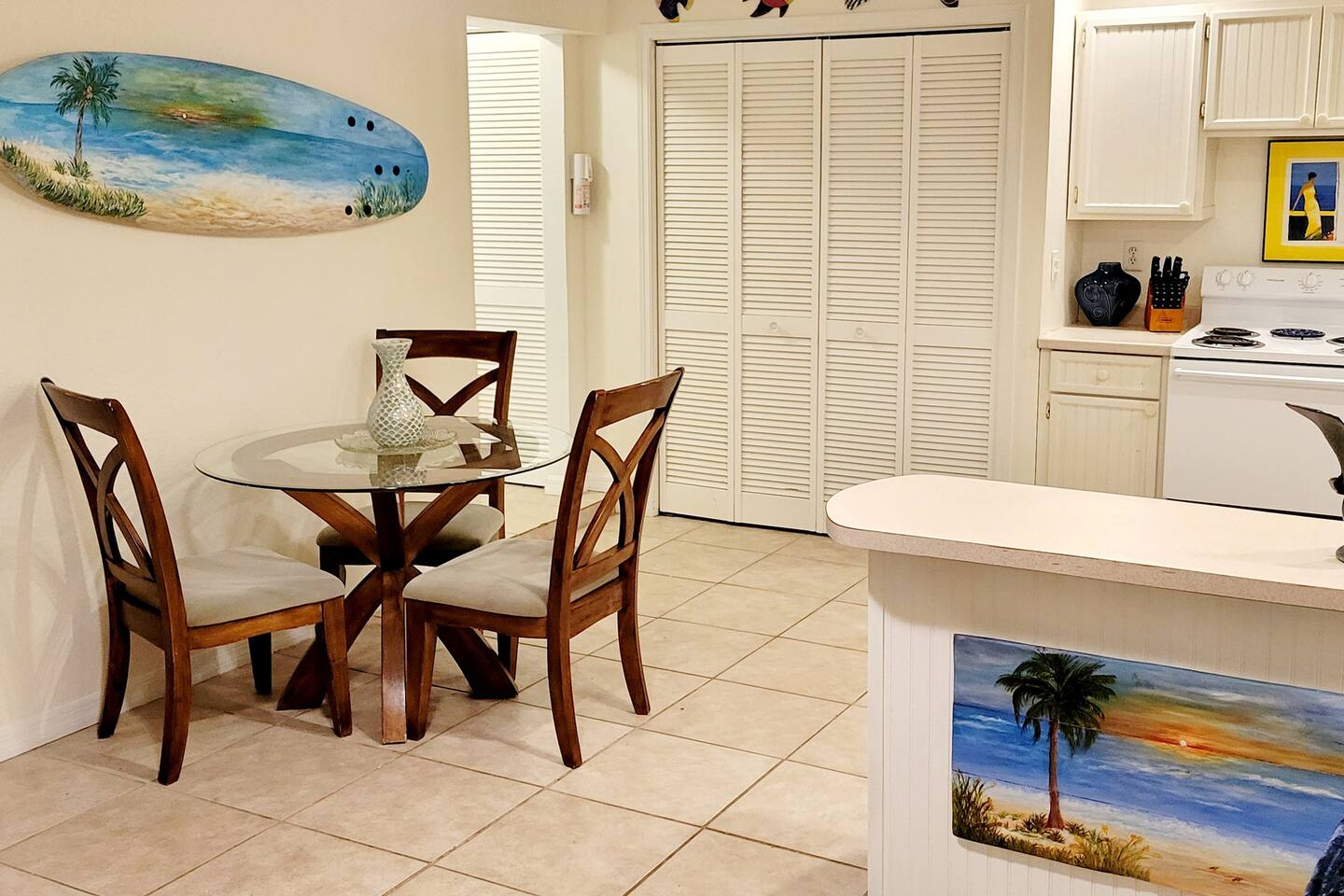This roomy cottage will sleep two adults in the king sized bed. We can also provide a pack n play so you can bring the wee one. Your pup or meow meow is also welcome- fully fenced in private yard. We've converted this cottage into a great vacation rental with beach access. The space is very roomy and easy on the eyes with white walls and beautiful art by several local talents. This property is a separate unit from a main house with its own large yard featuring Hibiscus, palms, Giant Birds of Paradise and many other tropical delights. When you walk out of the driveway, there is an undeveloped (no hotels) beach just yards away. Feel free to use the beach wagon, folding chairs and beach towels during your visit. Pets are children are welcome. Please let us know what kind of pup you are bringing :). **Important to note- this little cottage has a small efficiency washing machine and no dryer. There is a retractable clothes line for drying your clothes though.