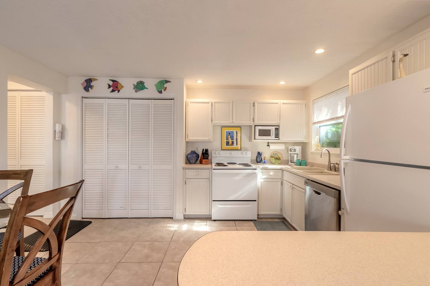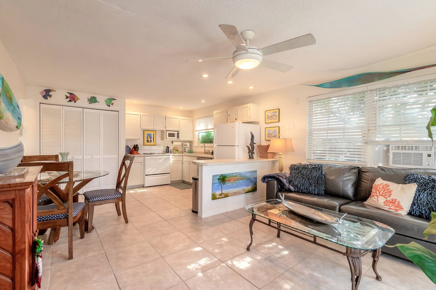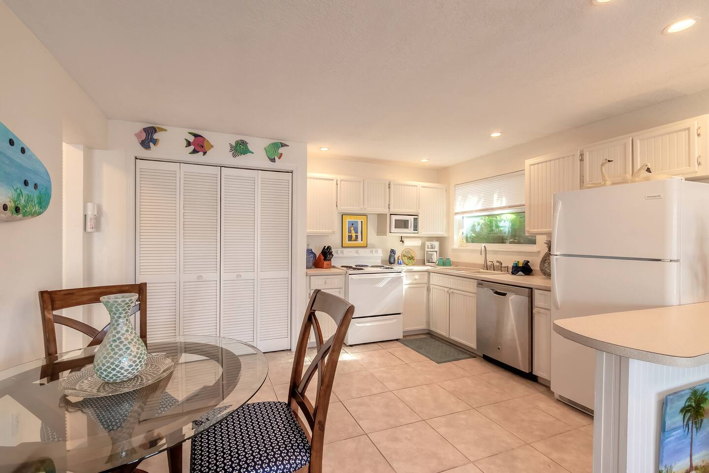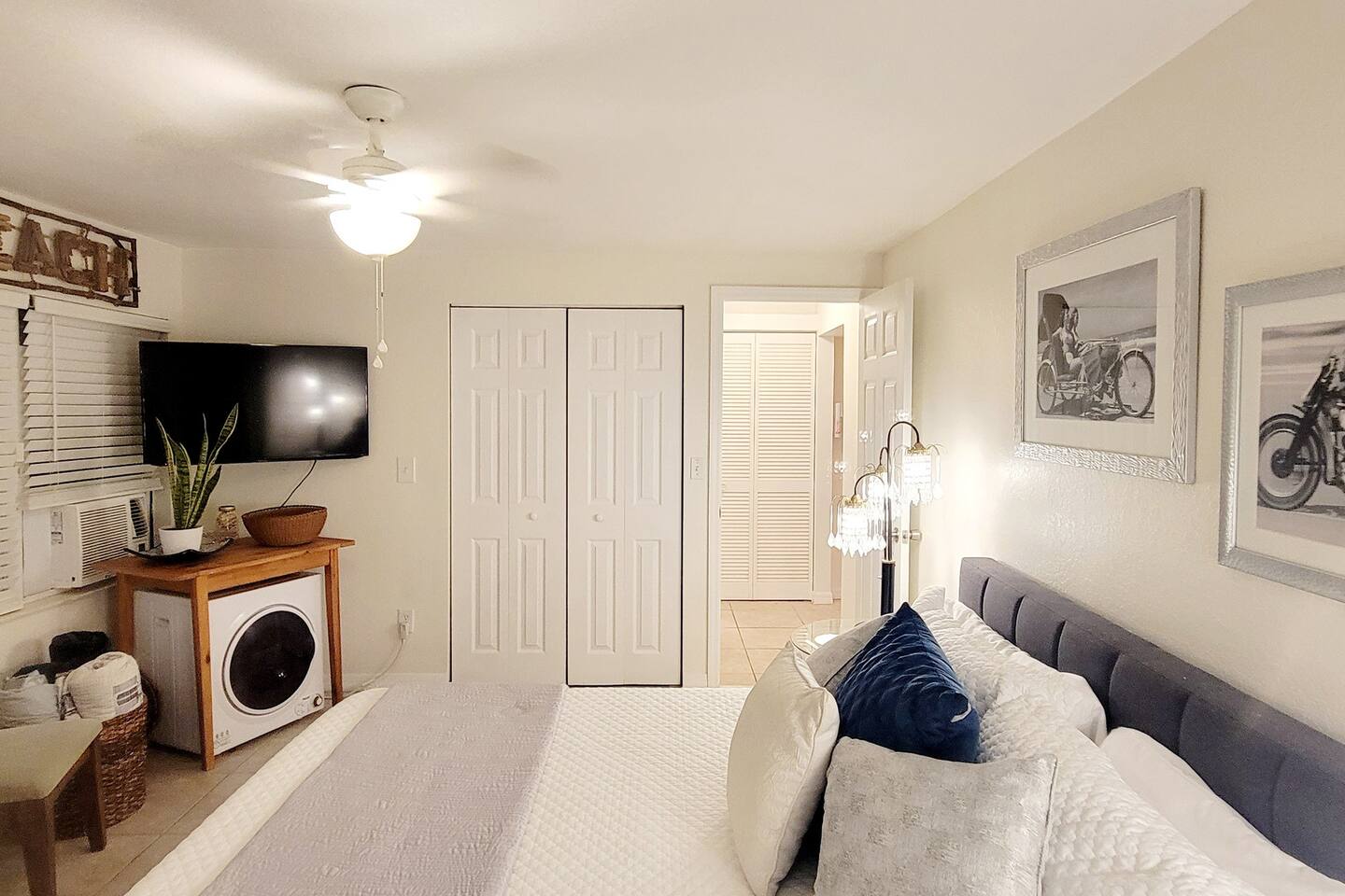 This roomy cottage will sleep two adults in the king sized bed. We can also provide a pack n play so you can bring the wee one. Your pup or meow meow is also welcome- fully fenced in private yard. We've converted this cottage into a great vacation rental with beach access. The space is very roomy and easy on the eyes with white walls and beautiful art by several local talents. This property is a separate unit from a main house with its own large yard featuring Hibiscus, palms, Giant Birds of Paradise and many other tropical delights. When you walk out of the driveway, there is an undeveloped (no hotels) beach just yards away. Feel free to use the beach wagon, folding chairs and beach towels during your visit. Pets are children are welcome. Please let us know what kind of pup you are bringing :). **Important to note- this little cottage has a small efficiency washing machine and no dryer. There is a retractable clothes line for drying your clothes though.