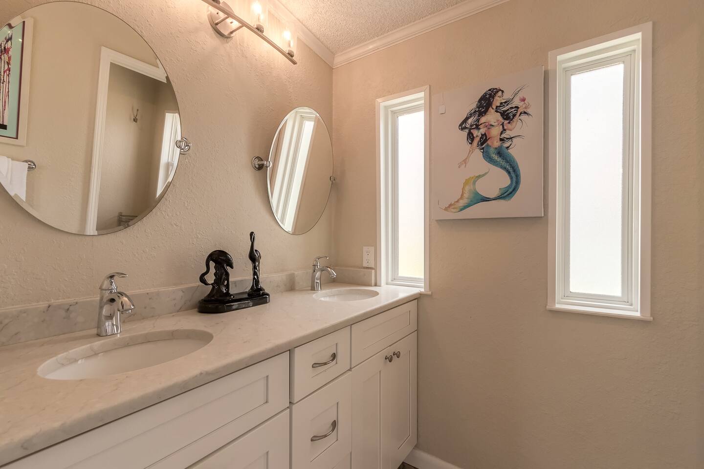 Welcome to the Dancing Dolphin Retreat, where relaxation meets the breezy Intracoastal Waterway. Prepare to be enchanted by the playful parade of dolphins that grace this stunning location. This exceptional property offers you the ultimate waterfront experience. With on property access to a kayak/jet ski lift, as well as a boat lift and dock parking, you have all the amenities necessary to fully embrace the waterway. Explore its tranquil beauty at your leisure and create unforgettable memories.