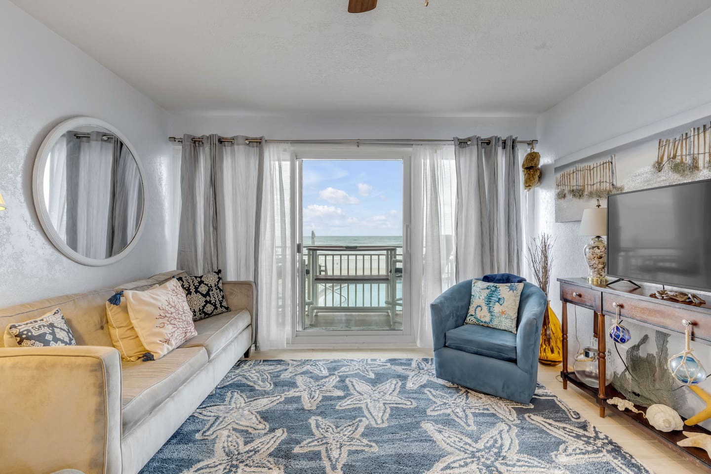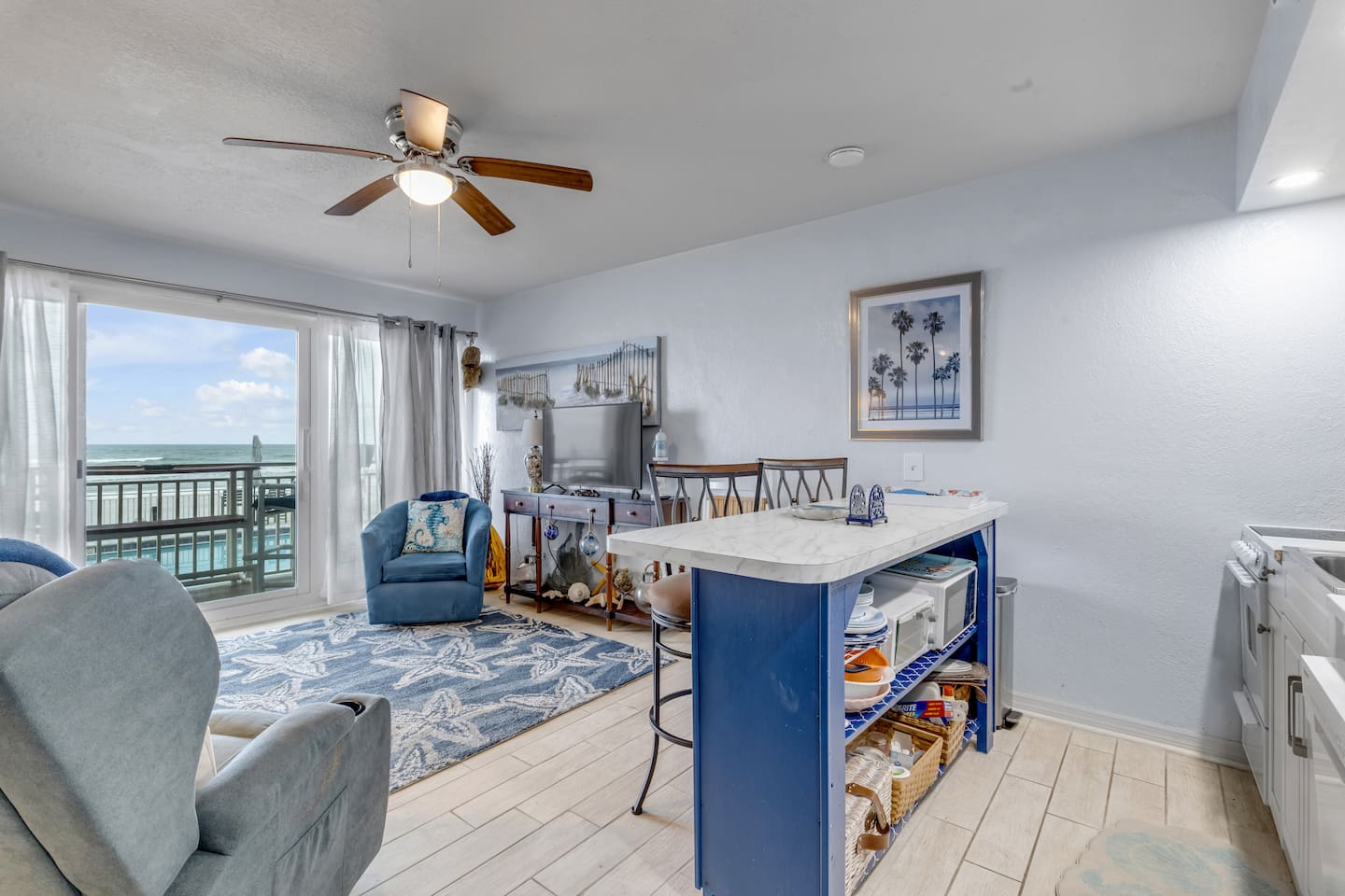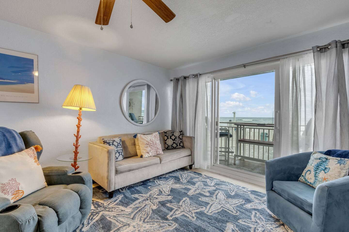 Oceanfront 1-bedroom condo with stunning ocean views • Queen bed + full size pull-out sofa, sleeps 2 comfortably • Fully stocked kitchen with everything you need for beach meals • Steps from the beach, boardwalk, and popular restaurants & bars • Oceanfront pool for relaxing after a day in the sun