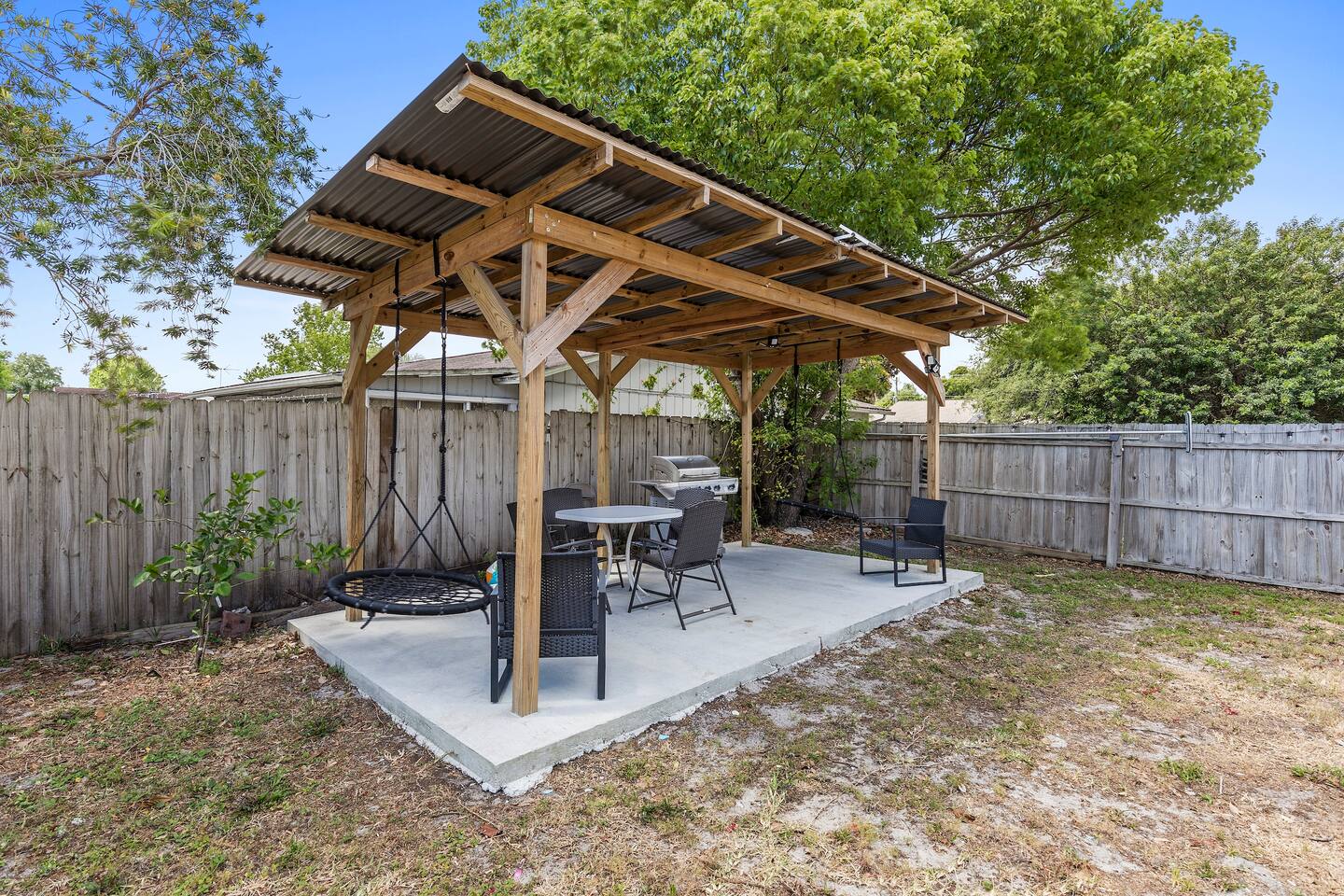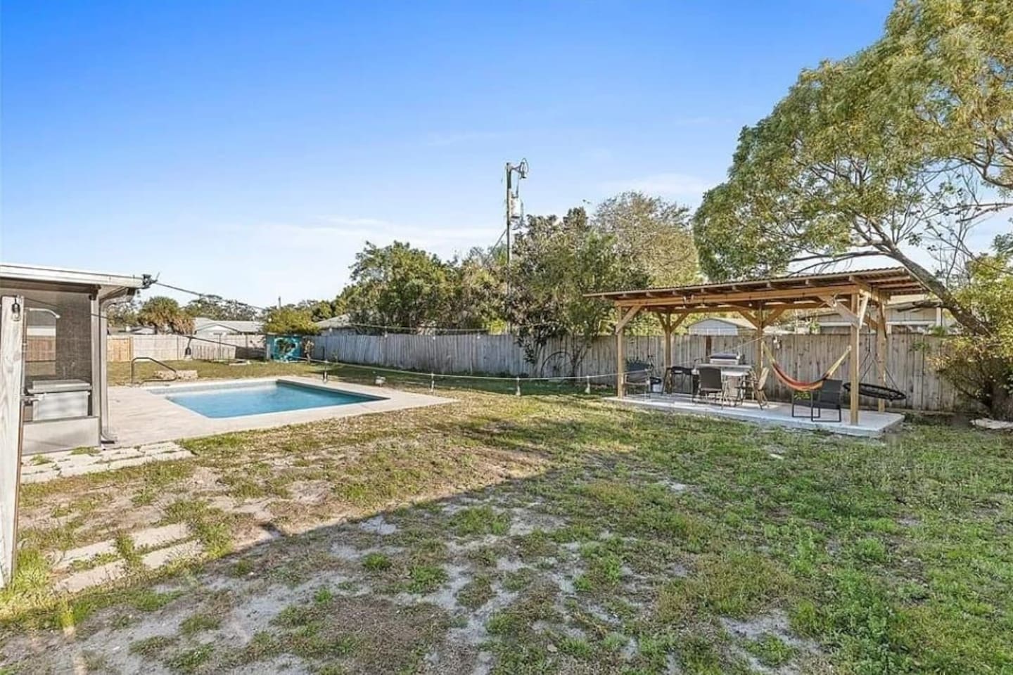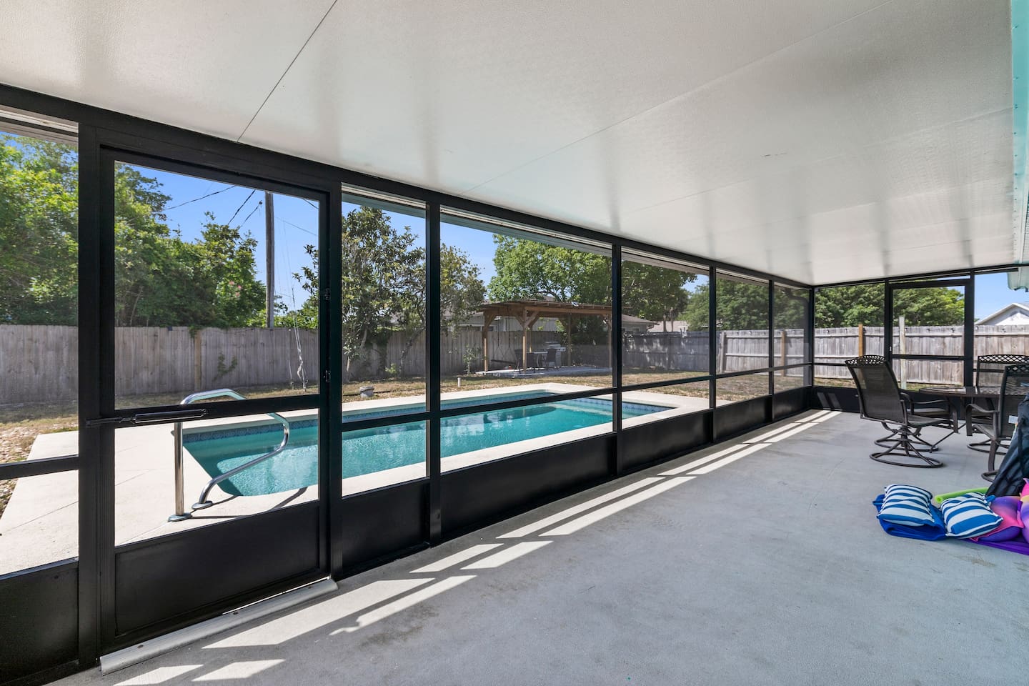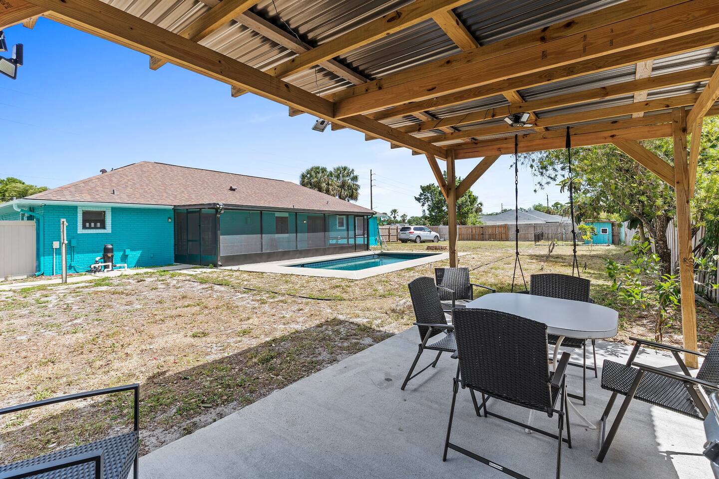 🏡 Inside the Home Primary Suite: King bed + private ensuite bathroom Bedroom 2: King bed Bedroom 3: Full bed + Twin bed (perfect for kids) Bright, open living space with large Smart TV Starlink high-speed Wi-Fi — excellent for remote work Fully equipped kitchen for family meals Washer & dryer included Note- Garage is inaccessible to guests. 🌴 Outdoor Living (Guest Favorite) Private, open-sun pool (no sharing) Pool floats provided In-ground wood-burning firepit Propane grill + outdoor dining table Screened-in porch with additional seating & dining Fully fenced 6-ft privacy yard — great for dogs & kids 🚤 Location Highlights 5 minutes to free Intracoastal boat launch Plenty of parking for boats & trailers 15 minutes to the beach 11 minutes to Historic New Smyrna Beach 15 minutes to Flagler Avenue dining, shopping & nightlife Enjoy the quiet of a residential neighborhood with quick access to beaches, fishing, boating, and local favorites. 🐶 Family & Pet Friendly Pets welcome Fully fenced yard for safe outdoor play Easy self check-in with keypad Plenty of parking space ⭐ Why Guests Love This Home ✔ Private unheated pool & outdoor space ✔ Fast Wi-Fi + Smart TVs ✔ Ideal for families & pet travelers ✔ Close to beach, boating & Flagler Ave ✔ Private, no HOA hassle Book now and enjoy a relaxed Florida stay with space to unwind — indoors and out.