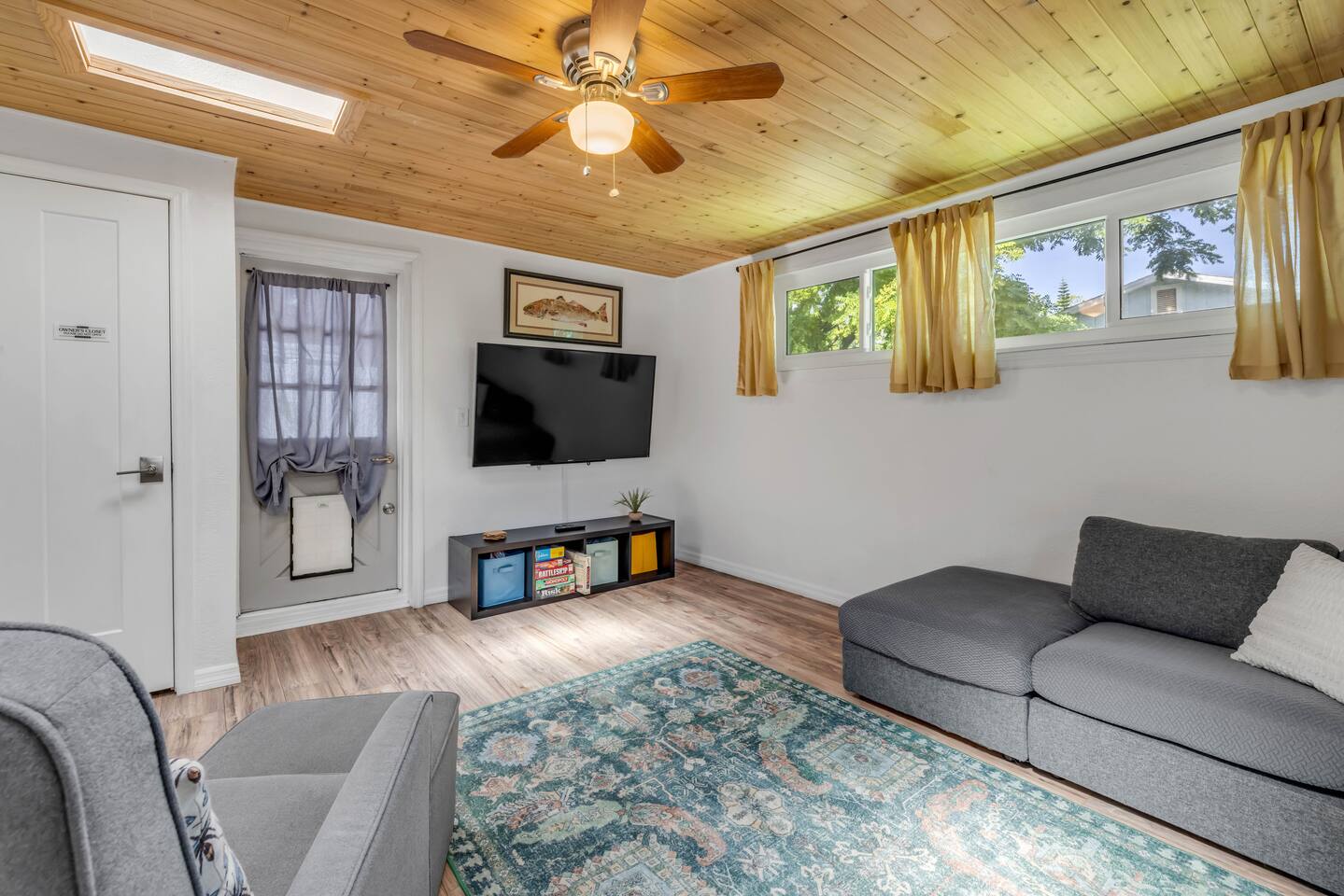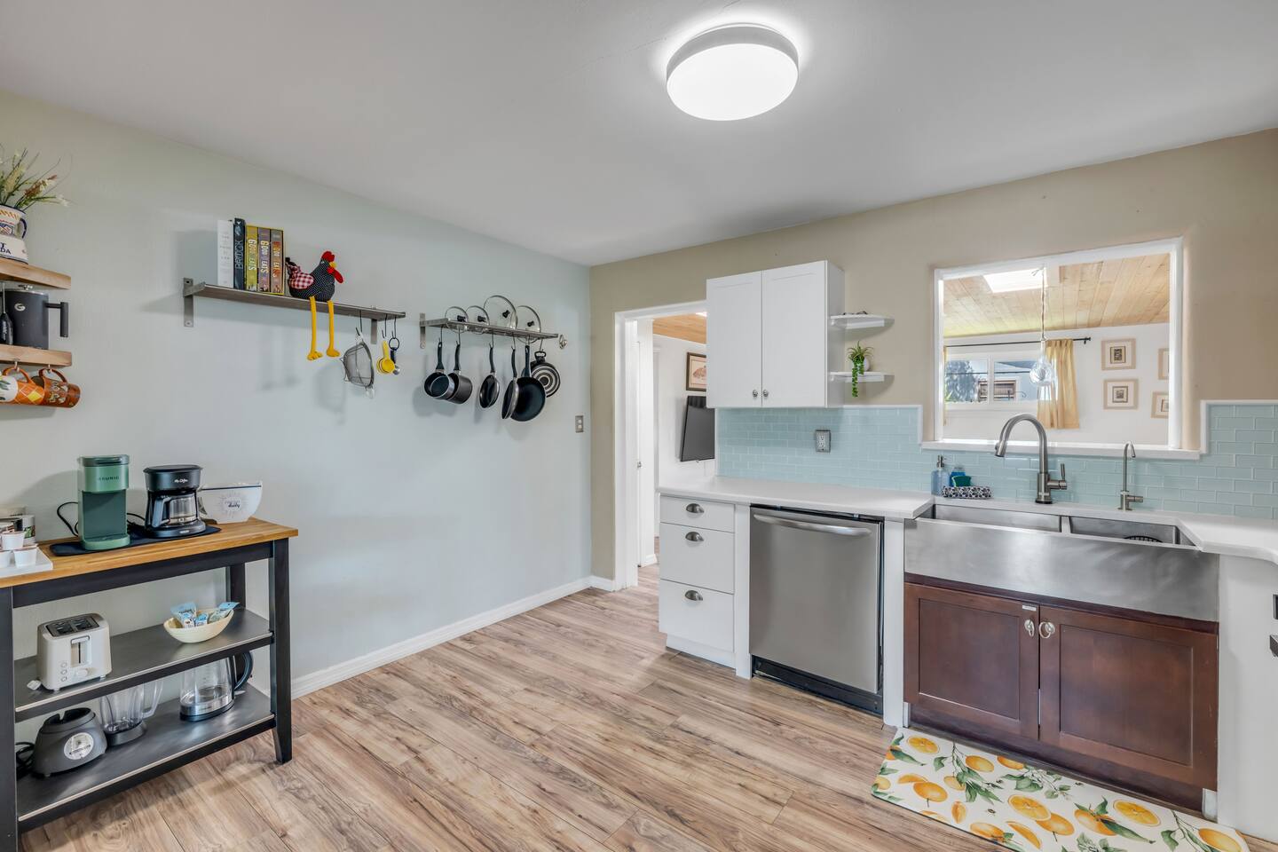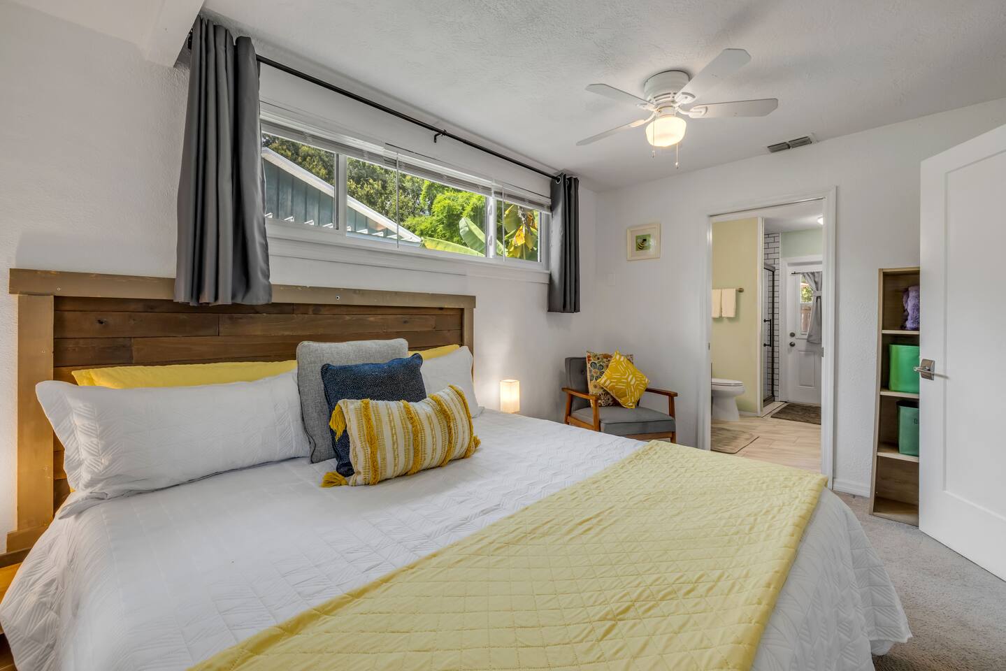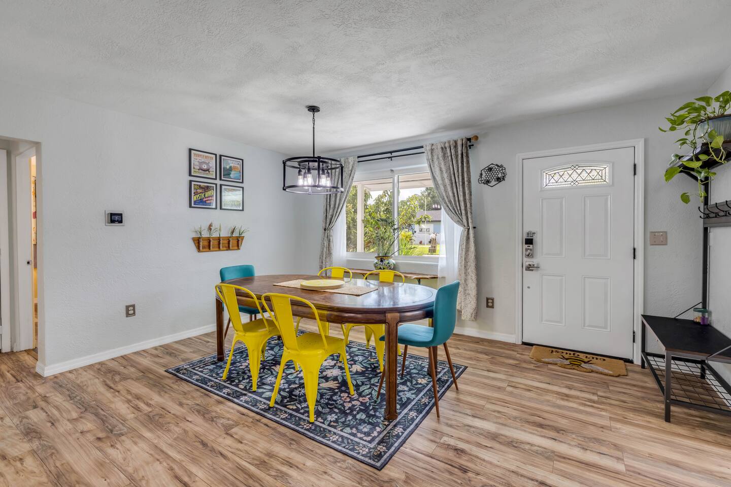 Welcome to your home away from home! This charming retreat is designed for comfort and convenience, offering everything you need for a relaxing stay. Located just 10 minutes from the beach and close to the vibrant dining, shopping, and nightlife of Flagler Avenue and Canal Street, you’ll be right in the heart of it all. Inside, the home sleeps six guests comfortably with three bedrooms and two bathrooms. The primary bedroom features a king bed, another offers two twin beds, and the third includes a pull-out couch along with a private office space—perfect for remote work or a quiet reading nook. The fully equipped kitchen comes with updated stainless steel appliances, while the bright, open living areas are filled with natural light, creating a warm and welcoming atmosphere. Step outside to your own private fenced backyard, complete with lush astro turf, plenty of room to relax or play, and an outdoor shower to rinse off after a day on the water or at the beach. Boaters will love the secure backyard parking, just one block from the Indian River Lagoon. With its comfortable layout, great amenities, and unbeatable location, this home is the perfect spot for families, groups, or anyone looking to experience the best of New Smyrna Beach.