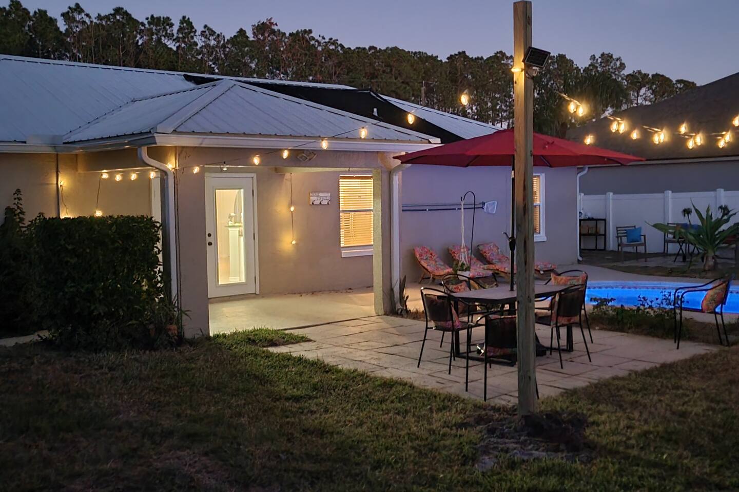 Sunny Escape in Palm Coast 🌴 Your perfect retreat for families, couples & friends! Private Solar-Heated Pool – Swim & lounge all day Spacious & Comfortable – Open concept + new furniture Rest Easy – Comfy king beds in every room Pet-Friendly – Large fenced yard + dog door Close to the Beach – Just 15 mins to Flagler Relax, recharge, and make memories at this Palm Coast getaway!