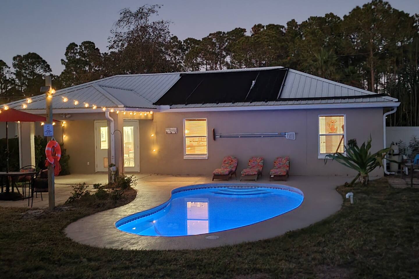 Why You’ll Love It: 🌴 Private Solar-Heated Pool: Take a refreshing dip in the pool and soak up the Florida sunshine, no matter the season! *Solar Heated Pools add about 10 degrees to what the water temp would be. 🏖️ Close to the Beach: Just a quick 15-minute drive to pristine beaches, perfect for sunbathing, swimming, or surfing. *Flagler Beach, with dog-friendly beaches. 🛌 Room for Everyone: With three cozy bedrooms, including a master suite, there’s plenty of space for up to 6 guests. *Two king beds, and bunk beds in the kid's room. 🍽️ Fully Equipped Kitchen: Cook up your favorite meals or enjoy takeout from local restaurants in the dining area. 🌟 Outdoor Living: Relax around the pool—ideal for morning coffee or evening cocktails. A charcoal grill is there for you to use as well. 📍 Prime Location: Nestled in a quiet neighborhood, yet close to shopping, dining, parks, golf courses and the beach. Extras to Make Your Stay Special: *Fast Wi-Fi and streaming services *Washer and dryer *Free parking for multiple vehicles *Family-friendly with beach towels and a pack-n-play available upon request Whether you're planning a fun-filled beach day, an adventurous trip to nearby parks, or just a lazy day by the pool, our Palm Coast home is the perfect base for your Florida escape. Book now for your slice of paradise! 🌞
